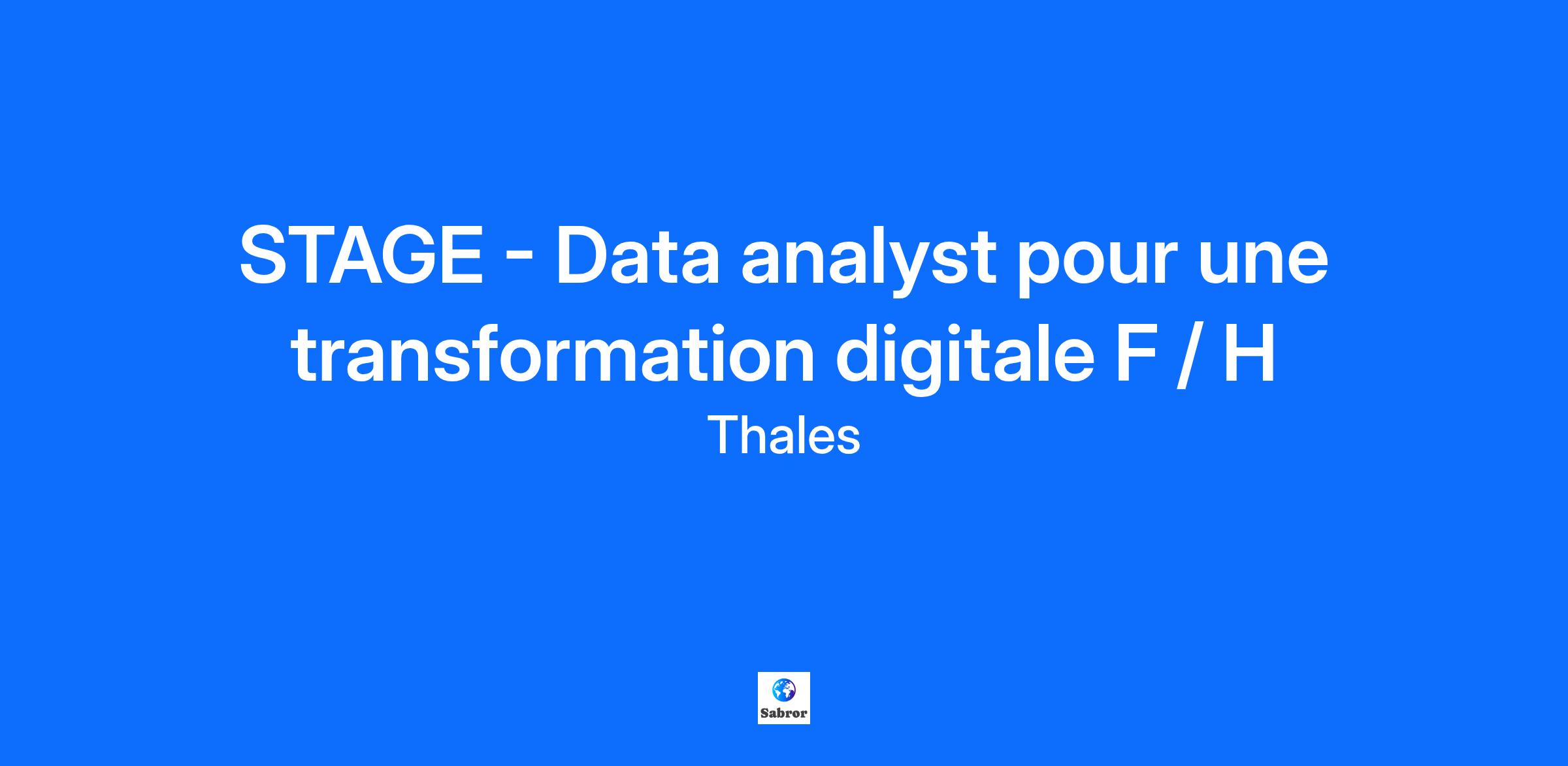 Lieu : Moirans, France Construisons ensemble un avenir de confiance Thales est un leader mondial des hautes technologies spécialisé dans trois secteurs d’activité : Défense & Sécurité, Aéronautique & Spatial, et Cyber & Digital. Il développe des produits et solutions qui contribuent à un monde plus sûr, plus respectueux de l’environnement et plus inclusif. Le Groupe investit près de 4 milliards d’euros par an en Recherche & Développement, notamment dans des domaines clés de l’innovation tels que l’IA, la cybersécurité, le quantique, les technologies du cloud et la 6G. Thales compte près de 81 000 collaborateurs dans 68 pays. Nos engagements, vos avantages Notre savoir-faire technologique Notre attention portée à l’équilibre des collaborateurs Un environnement inclusif et bienveillant Un engagement sociétal et environnemental reconnu (Thales Solidarity, indice CAC 40 ESG…) Votre quotidien Venez découvrir le site de Moirans, Un site à taille humaine avec un très bel environnement. Venir travailler à Moirans c'est : une ambiance conviviale et chaleureuse, des projets intéressants en ingénierie, les montagnes à proximité. CONTEXTE : Dans un contexte de transformation numérique rapide, de renouvellement de nos processus et de modernisation de nos outils, et dans une démarche d'amélioration de l'efficience du traitement des données au sein des différents systèmes d'information, vous intégrerez l'équipe IT et gestion des données techniques (10 personnes). Vous contribuerez à un projet de consolidation des savoir‑faire et de mise en conformité du référentiel métier du SI, centré sur la gouvernance des données et les outils collaboratifs numériques. VOUS AVEZ POUR MISSIONS : Mission permanente (50 %) : Mettre en place des tableaux de bord et des indicateurs métier sur Power BI et Grafana. Accompagner les utilisateurs dans la prise en main des outils. Recenser et capitaliser les jeux de données métier afin de rationaliser leur usage (identifier quelles données pour quels usages). Mettre en place des tableaux de bord de pilotage visuels. Participer aux projets data de l'entreprise et du service Systèmes d'Information. Projet (50 %) : Participer aux projets de digitalisation soutenus par l'ingénieur transformation digitale. Décliner et promouvoir les bonnes pratiques d'utilisation des outils collaboratifs. Diffuser le savoir‑faire sous forme de formations et accompagner les utilisateurs. VOTRE PROFIL : Vous avez l’ambition de développer de nouvelles compétences au sein d'un grand groupe international ? Vous avez envie de découvrir un métier riche et varié ? Analyse, autonomie, proactivité et travail en équipe sont des atouts que l’on vous reconnaît ? Vous préparez un BAC+3 et vous recherchez un stage ? Les compétences qui vous seront nécessaires : Analyse et synthèse des processus métier : pour recenser les données, définir les besoins et prioriser les datasets selon les usages. Maîtrise des outils de datavisualisation (Power BI, Grafana) : pour concevoir et déployer tableaux de bord et indicateurs métiers. Maîtrise du SQL : pour extraire, nettoyer et structurer les données sources nécessaires aux dashboards et aux analyses. Connaissances en Python et R : utile pour traitement avancé des données et prototypage d’analyses. D'autres compétences qui vous seraient utiles (vous pourrez les consolider durant votre stage) : Capacité à accompagner et former les utilisateurs (animation de réunions, interviews) : pour assurer la prise en main des outils et diffuser les bonnes pratiques. Capacité rédactionnelle (comptes‑rendus, documents support, cahiers des charges) : pour documenter les jeux de données, produire les livrables et formaliser les besoins. Autonomie, sens de l’organisation : pour piloter les activités permanentes et le suivi projet. Connaissance des systèmes qualité : utile pour la mise en conformité du référentiel et la gouvernance des données. Alors ce poste est fait pour vous ! Nous sommes toujours en phase ? Oui ? Alors, n’attendez plus, postulez ! Tous nos stages sont conventionnés et soumis à une gratification dont le montant est déterminé selon votre niveau d’études. Thales, entreprise Handi-Engagée, reconnait tous les talents. La diversité est notre meilleur atout. Postulez et rejoignez nous ! Interested in a CAREER IN THE RAIL transportation sector? To see our jobs in the railway market, please visit our dedicated site here