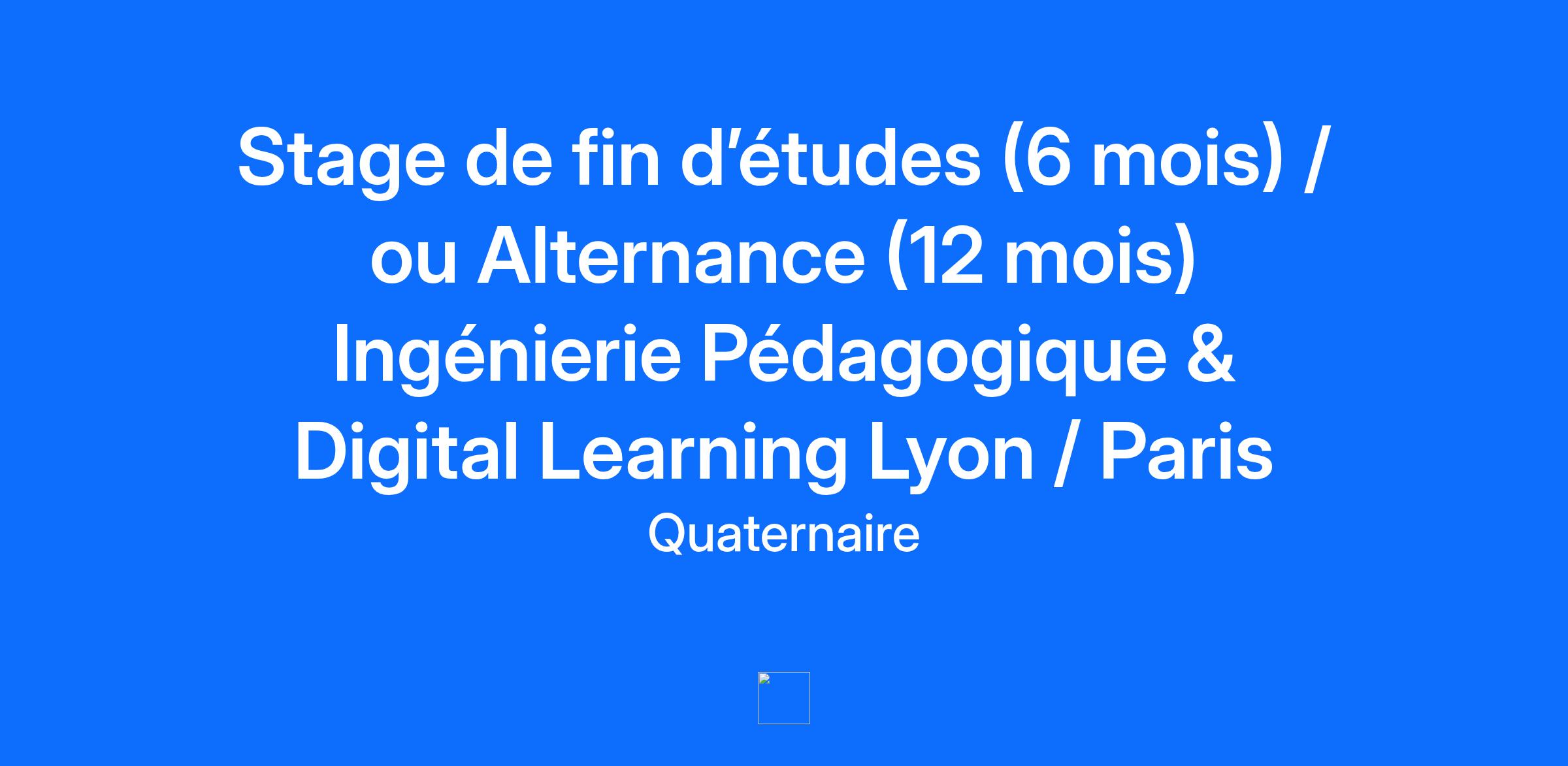 Seriez-vous d’accord avec la citation d’un célèbre acteur américain qui dit : « Si vous pouvez faire ce que vous faites de mieux et en être heureux, vous allez plus loin dans la vie que la plupart des gens » ? Nous en tout cas nous en sommes convaincus. Chez Quaternaire, nous sommes une entreprise de 70 personnes qui revendique haut et fort depuis bien longtemps (et avant que cela devienne à la mode …) que Performance et Bien être sont indissociables. C’est d’ailleurs un fondement de notre projet d’entreprise ! Nous défendons une posture originale dans le monde du conseil et de la formation, nous incarnons et défendons des valeurs singulières comme : Ecouter c’est déjà construire Oser être pertinents et impertinents Nourris aux défis depuis tout petits Cultiver l’équilibre et l’ouverture Société de conseil et formation en management nous améliorons la performance durable économique, client, sociétale et sociale dans le monde de l’Industrie et des Services. Nous avons 4 implantations en France (Nantes, Paris et Lyon, Toulouse) et sommes très adeptes du Home Office. Aujourd’hui nous avons besoin de vous afin de répondre à notre fort développement et à notre croissance à 2 chiffres. En nous rejoignant, nous vous faisons la promesse d'accélérer votre montée en compétences, de vous faire gagner en expérience et de contribuer à votre épanouissement dans un environnement de travail stimulant. Vous Etudiant.e en Master 2 Ingénierie Pédagogique, orienté(e) Digital Learning Capacité d’ingénierie pédagogique : repérage, objectifs, évaluation, scénarisation. Maîtrise des outils e-learning (LMS, création de capsules, quiz, etc.). Connaissance du digital (multimédia, outils collaboratifs). Autonomie, esprit critique, gestion de projet. Qualité relationnelle Missions Objectifs Stage : Dans un contexte d'amélioration constante de nos dispositifs, nous cherchons à renforcer notre équipe formation avec un(e) stagiaire afin de contribuer à la conception et à l’optimisation de nos parcours. Activités développement (Temps passé 2/3 du stage) Développer des compétences solides en ingénierie pédagogique, de la phase d’analyse des besoins jusqu’à l’évaluation des acquis. Contribuer à l’optimisation des dispositifs de formation (présentiel, distanciel, blended learning), en renforçant leur efficacité et leur impact. Expérimenter et produire des contenus digitaux variés (capsules e-learning, quiz, micro-learning, activités interactives) en intégrant les outils LMS. Participer à l’innovation pédagogique en testant de nouvelles approches (serious games, adaptive learning, intelligence artificielle appliquée à la formation). Développer une veille active sur les tendances et évolutions du Digital Learning Renforcer les capacités en gestion de projet et en travail collaboratif, en s’intégrant pleinement au sein de l’équipe Formation. Activités terrain (temps passé 1/3 du stage) Expérimenter des dispositifs digitaux (capsules, micro-learning) directement auprès des apprenants chez un client Observer et analyser des pratiques de formation en situation réelle chez nos clients. Mettre en place des outils d’évaluation et de suivi post-formation. Les Missions Conception et optimisation pédagogique Analyser et scénariser des parcours de formation existants. Améliorer / Repenser l’architecture de parcours digitalisés (blended learning, 100 % distanciel). Développer des outils et méthodes pour l’évaluation des compétences acquises (dispositifs de mesure, (quiz, mise en situation, enquêtes à froid). Déployer une expérimentation directement chez un client, sur une formation déjà livrée. Analyser les résultats et proposer des ajustements. Création et enrichissement de contenus digitaux Produire des capsules e-learning interactives (vidéo, audio, quiz, micro-learning). Concevoir des activités pédagogiques engageantes adaptées aux outils LMS. Intégrer une approche centrée sur l’expérience apprenant. Sur site client, coconstruire un ou plusieurs modules de micro-learning sur un sujet concret (sécurité, management, RSE,…) avec nos experts métiers Tester ces modules auprès d’un petit groupe pilote, récolter les feedbacks et proposer des amélioratifs Innovation pédagogique Contribuer à l’évolution de l’ingénierie pédagogique vers plus d’interactivité et d’impact. Explorer et tester de nouvelles approches (serious games, adaptive learning, outils IA…). Apporter une veille sur les tendances du digital learning et des EdTech. Nos stagiaires bénéficient de 100 % de notre plan de formation Consultants, soit près de 4 à 6 jours de formation et fondamentaux de haut niveau !!! 2 jours des fondamentaux du Conseil 1 journée PROCESS COM + test effectué Maintenance / DMAIC / SECU et B1C Pourquoi Quaternaire ? Nous avons été élus 3ème au classement « Great place to work ». Nous avons en effet chez nous un fort esprit d’équipe, d’entraide, de solidarité, nous aimons régulièrement tous nous retrouver pour fêter les petites et grandes victoires de l’entreprise et de chacun et chacune. Cette courte introduction vous ressemble ? Nous avons alors bien plus à nous dire ! Il ne vous reste plus qu’a répondre à notre annonce et on se charge de vous recontacter rapidement. Liens qui pourraient vous intéresser : Nos projets internes https://www.youtube.com/watch?v=-4G79mJmliw&t=21s Notre label Great Place to Work :) Quaternaire, 3ème au classement des Best Workplaces 2025 Notre premier rapport RSE : https://quaternaire.fr/notre-raison-detre/#dearflip-df_17270/2/
