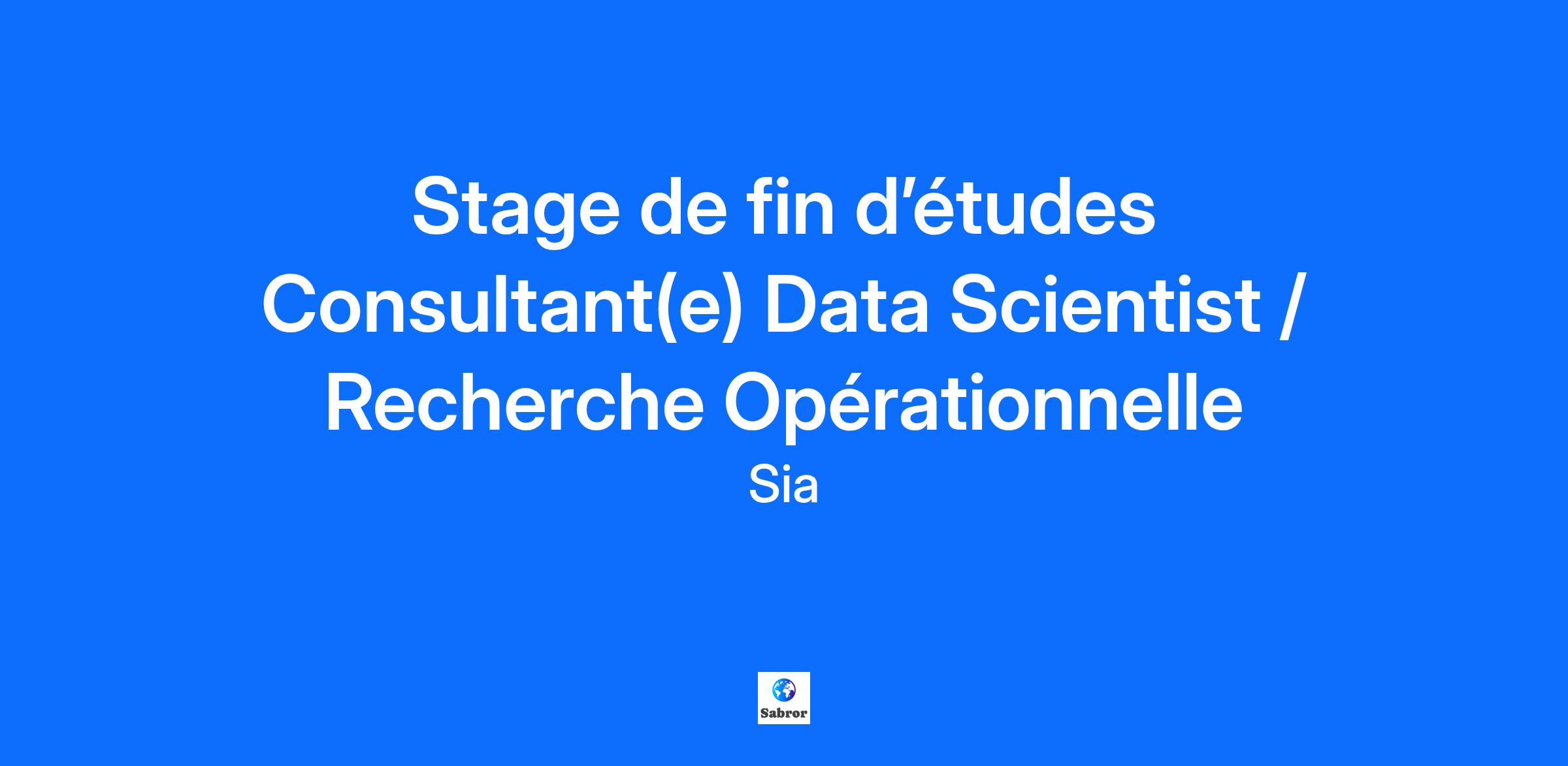 Description de l'entreprise Sia est un groupe international de conseil en management de nouvelle génération, fondé en 1999. Nés à l'ère du digital, nous sommes augmentés par la data, enrichis par la créativité et guidés par la responsabilité. Nous collaborons avec nos clients pour relever les défis et saisir les opportunités. Dans un monde en pleine mutation, nous croyons que l’optimisme est un puissant levier de transformation. Avec une expertise couvrant un large éventail de secteurs et de services, nos 3 000 consultants accompagnent des clients dans le monde entier, depuis 48 bureaux répartis dans 19 pays. Notre expertise produit des résultats concrets. Notre optimisme change la donne. Description du poste Pour accompagner son développement, Sia recrute des stagiaires de fin d'études, data scientists avec une forte expertise en recherche opérationnelle. Vous rejoindrez notre équipe d'experts pour développer des solutions de Recherche Opérationnelle et d’aide à la décision en concevant et mettant en œuvre des solutions d'optimisation sous contraintes et de modèles de simulation. Votre travail s’organisera autour des problématiques suivantes : Recherche opérationnelle : Assistance à la conception et à la mise en œuvre de solutions d'optimisation sous contraintes et de modèles de simulation avancées. Modélisation et résolution de problèmes métiers dans différents domaines. Machine learning et statistiques : élaboration de modèles explicatifs et prédictifs d'aide à la décision (algorithmes d'apprentissage supervisé et non supervisé, économétrie, prévision, diagnostic quantitatif, ...) ; Big Data : connaissances algorithmiques pour le traitement de grand volume de données et non structurées. Dans le cadre des activités internes du cabinet, votre participation s’articule autour des axes suivants: Participer à la veille technologique et activité de R&D au sein de notre laboratoire de Recherche Opérationnelle (et ou dans des laboratoires annexes, Natural Language Processing, Times Series, Computer Vision...). Participer au développement et renforcement de nos offres au travers de formations, de groupes de travail, de diffusion de support internes et externes... Participer au développement commercial en contribuant à la définition des besoins et en participant aux actions commerciales. Qualifications Bientôt diplômé(e) d'une formation en école d'Ingénieur ou d'une formation de haut niveau dans le domaine de la recherche opérationnelle, du traitement de l'information, de l'ingénierie statistique et de l'économétrie, vous justifiez idéalement d'une première expérience en Optimisation, Big Data ou Data Science. Vous avez un excellent niveau en mathématiques appliquées ou en statistiques et analyse quantitative avec une forte appétence pour la Recherche Opérationnelle (connaissances théoriques et pratiques, intuition, facilité à comprendre des modèles et les appliquer). Vous maîtrisez la programmation en Python et le versioning de code, et/ou possédez des bases solides dans des langages de script (Julia, Perl, JS, bash) ou compilés (C++, Java) et/ou avez une expérience dans les environnements UNIX/LINUX. Vous connaissez des solveurs d’optimisation et en avez déjà manipulés dans le cadre de projets professionnels, vous souhaitez approfondir les concepts de résolution de problèmes via la programmation linéaire en nombre entier, la programmation dynamique, les heuristiques et l’élaboration de métaheuristiques. Vous appréciez modéliser mathématiquement des problèmes concrets. Vous souhaitez vous impliquer et prendre rapidement des responsabilités sur des missions et projets interne de R&D à forte valeur ajoutée au sein d’une structure dynamique. Vous disposez d'une appétence pour les enjeux liés à la data et l'IA, d'une capacité à monter en compétences rapidement sur ces sujets et êtes enthousiaste à l'idée d'accompagner nos clients à en saisir les opportunités. Vous êtes curieux(se) et aimez travailler en équipe ? Vous êtes reconnu(e) pour votre sens de l’analyse ? Vous souhaitez rejoindre un environnement professionnel dynamique et motivant ? Vous partagez nos valeurs que sont l'excellence, l'entrepreneuriat, l'innovation, le partage, la bienveillance et l'équilibre vie personnelle/vie professionnelle ? Vous parlez français et anglais couramment dans un contexte professionnel ? Alors rejoignez-nous ! Informations complémentaires Ce que nous offrons : • Un salaire compétitif combiné à des nombreuses opportunités de formation pour progresser rapidement en Recherche Opérationnelle et sur des thématiques métiers (Energie, Transport...) tout en découvrant d’autres domaines techniques. • Faire partie d'une entreprise internationale à croissance rapide, au sein d’une communauté de plus de 250 Data Scientists répartis au sein de nos 8 Centres d’Excellence (Paris, Montréal, Bruxelles/Amsterdam, New-York, Londres, Hong Kong, Middle East). • Travailler chez un client, en télétravail et dans nos locaux, situés en plein cœur de Paris (métro Grands Boulevards) Pour plus d'information sur notre practice Data Science, consultez notre showroom de solutions IA : https://www.heka.ai/fr Pour plus d’information sur notre lab et nos produits de Recherche Opérationnelle : https://www.sia-partners.com/fr/nos-expertises/optiwise Et une vidéo de présentation de nos "AI services & solutions" : https://www.youtube.com/watch?v=hbnEoa9zHQY Stage avec perspective d'embauche. #CONSULTING4GOOD Sia est un employeur qui souscrit au principe de l’égalité d’accès à l’emploi. Tous les aspects de l’emploi, tels que le recrutement, les promotions, la rémunération, ou les sanctions sont basés uniquement sur les performances, les compétences, et le comportement des employés ou les besoins de l’entreprise.