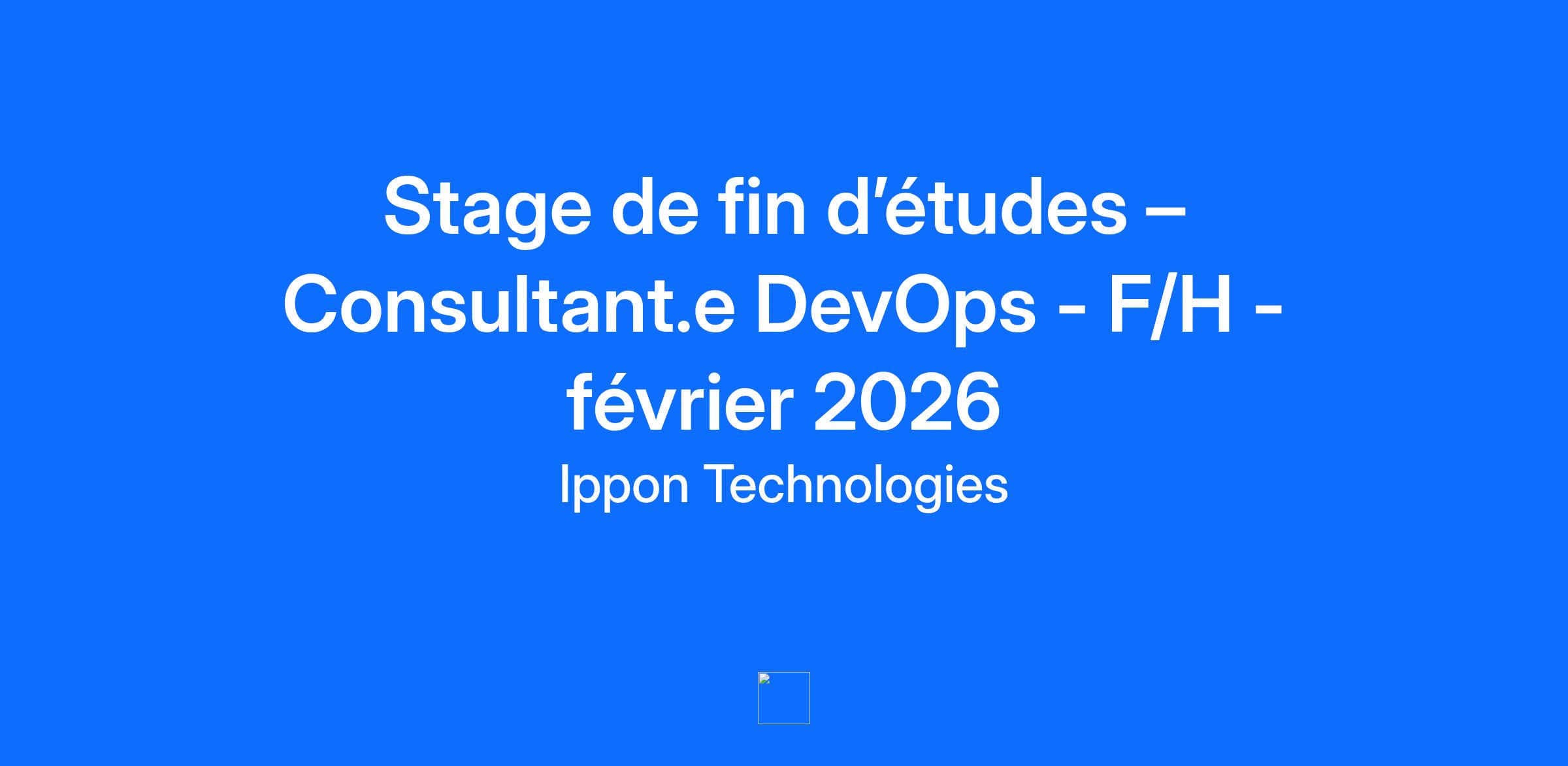 En tant que Stagiaire Consultant DevOps (F/H), tu intègres notre équipe technique aux côtés de profils expérimentés et multidisciplinaires pour contribuer à la réalisation de projets autour de l’automatisation, du cloud et de l’industrialisation des environnements techniques. Tu participes à la mise en place de pipelines CI/CD, au déploiement d’infrastructures et à l’amélioration continue des pratiques DevOps chez nos clients. Le poste est à pourvoir au 1er trimestre 2026 pour une durée de 6 mois. Profil recherché - Étudiant·e en fin d’études en école d’ingénieur/université, avec une spécialité en informatique, systèmes ou cloud. - Une première expérience en stage est souhaitée, idéalement en environnement DevOps, Cloud ou SRE. - De bonnes bases en scripting (Python, Bash, ou équivalent) et en administration système. - Une connaissance des outils d’automatisation et d’orchestration (Docker, Kubernetes, Terraform, Ansible…). - Une compréhension des principes CI/CD et des pratiques de sécurité applicative. - Un bon relationnel, de la rigueur et la capacité à travailler en équipe. Nous valorisons surtout la curiosité intellectuelle, l’autonomie et l’envie d’apprendre. Si le stage se passe bien, nous te proposerons un CDI en tant qu’Ingénieur(e) DevOps ! \n \n Nos plus 🍽️ Tickets restaurant digitalisés grâce à notre partenaire Swile. 🍎 Une corbeille de fruits livrée chaque semaine. 🎹 Un billard, jeux de sociétés. 🥳 Une soirée à thème par mois et plusieurs team building (foot, running, badminton, kayak…). 💻 Programme BlackBelt : Un parcours personnalisé de montée en compétences, incluant missions, formations et certifications. 💡 Capitalisation des compétences : Conférences et formations internes régulières avec des primes à la clé.