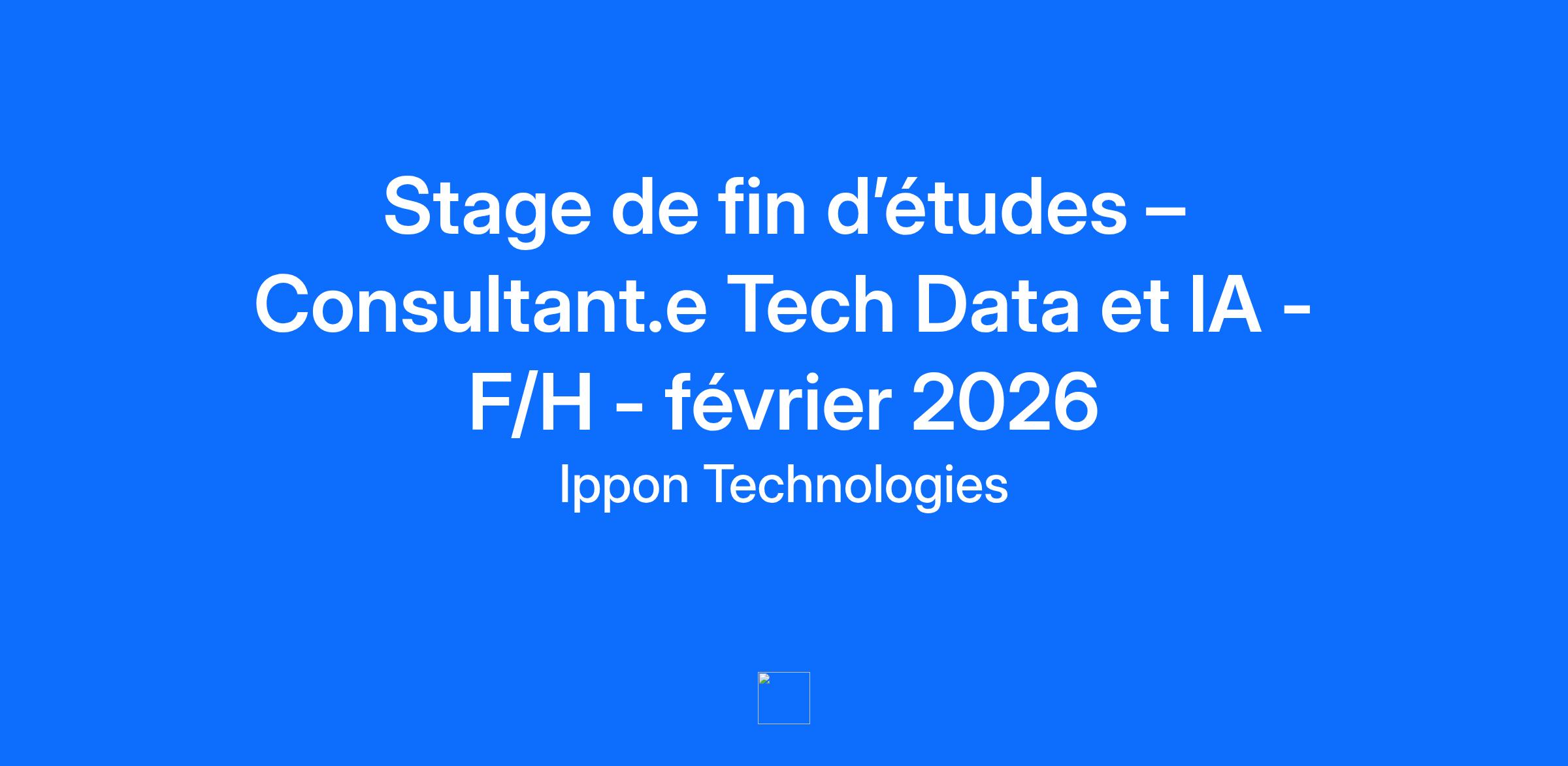 En tant que Stagiaire Consultant Tech Data et IA (F/H), tu intègres notre équipe technique aux côtés de profils expérimentés et multidisciplinaires pour contribuer à la réalisation de projets technologiques en data ou IA Gen auprès de nos clients sur des projets variés. Le poste est à pourvoir au 1er trimestre 2026 pour une durée de 6 mois. - Etudiant·e en fin d’études en école d’ingénieur/université, avec une spécialité en data et/ou intelligence artificielle. - Une première expérience en stage est souhaitée, et dans le conseil est un réel plus. - Possédant des bases solides en Python et de bonnes connaissances des bases des données, SQL et NoSQL. - Curieux·euse des sujets IA et ayant une bonne compréhension de l‘écosystème digital et data. - Doté·e d’un bon relationnel client, capacité à synthétiser et à communiquer. \n Profil recherché * Nous recherchons une personne qui a développé de bonnes connaissances dans le domaine de l’intelligence artificielle et qui s’intéresse à la programmation. * Nous valorisons surtout la curiosité intellectuelle et le sens des responsabilités. * En plus du développement, le poste consiste à conseiller les clients sur la valeur business que peut apporter un projet en IA. * Si le stage se passe bien, nous te proposerons un CDI en tant qu’Ingénieur(e) IA ! \n Nos plus 🍽️ Des tickets restaurant digitalisés grâce à notre partenaire Swile. 🍎 Une corbeille de fruits livrée chaque semaine. 🎹 Un billard, jeux de sociétés. 🥳 Une soirée à thème par mois et plusieurs team building (foot, running, badminton, kayak…). 💻 Programme BlackBelt : Un parcours personnalisé de montée en compétences, incluant missions, formations et certifications. 💡Capitalisation des compétences : Conférences et formations internes régulières avec des primes à la clé.