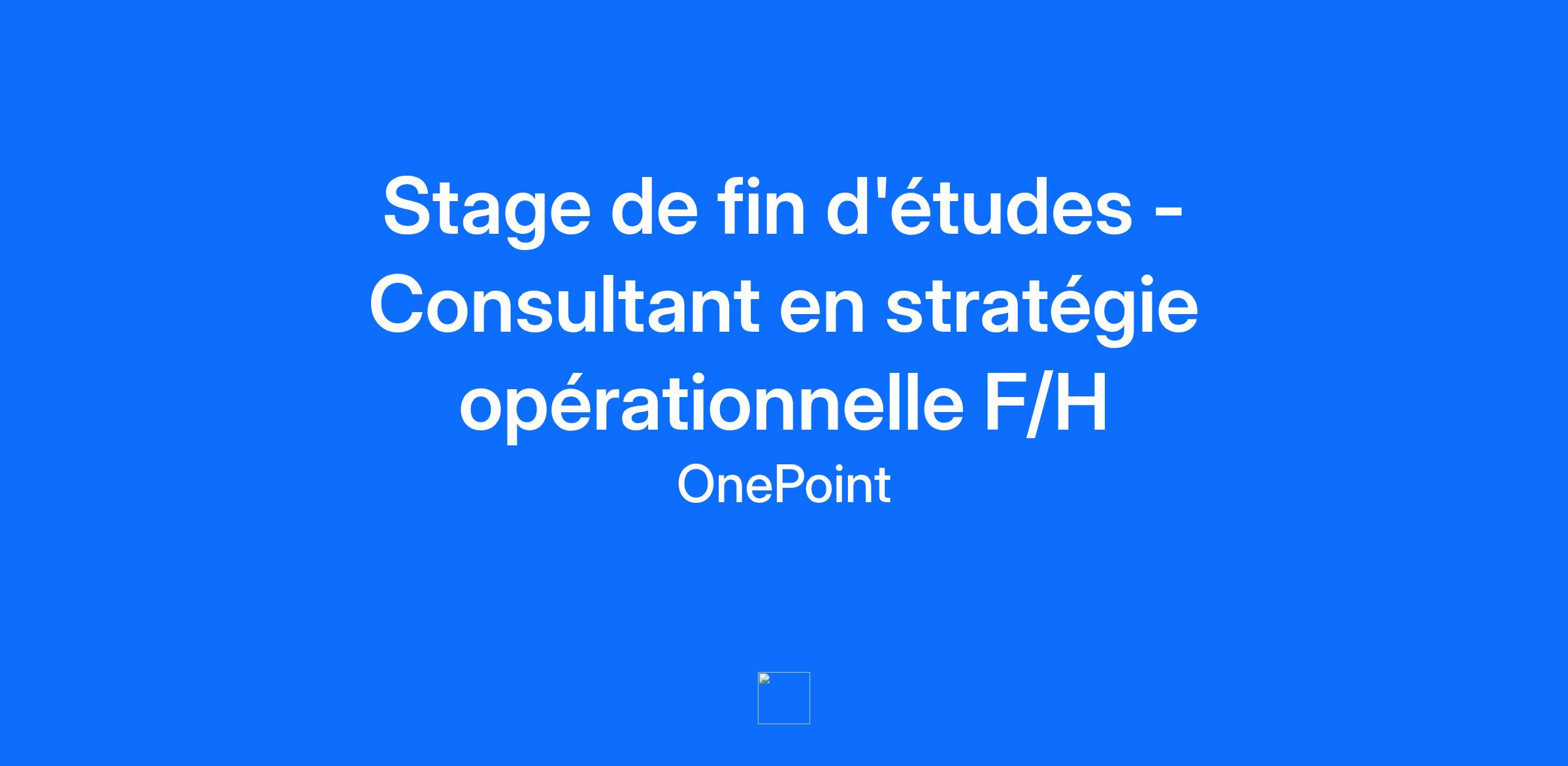 Contribuez aux grandes transformations des entreprises et des acteurs publics en alliant innovation technologique et expertise métier, au service de nos clients et de la société pour les faire avancer durablement. Au-delà de la RSE, nous avons développé notre propre approche, RESET, qui englobe l’ensemble de nos engagements en matière de responsabilité économique, sociale, environnementale et technologique, tant au sein de notre collectif que chez nos clients. Onepoint, est une entreprise inclusive, handi accueillante, avec une politique de diversité affirmée et certifiée B Corp. Contribuez aux grandes transformations des entreprises et des acteurs publics en alliant innovation technologique et expertise métier, au service de nos clients et de la société pour les faire avancer durablement. Au-delà de la RSE, nous avons développé notre propre approche, RESET, qui englobe l’ensemble de nos engagements en matière de responsabilité économique, sociale, environnementale et technologique, tant au sein de notre collectif que chez nos clients. Onepoint, est une entreprise inclusive, handi accueillante, avec une politique de diversité affirmée et certifiée B Corp. Votre futur collectif Communauté d’expertise : Stratégie Opérationnelle 90 personnes Nos expertises fonctionnelles et sectorielles regroupent : La Banque (banque de détail, banque privée et marchés financiers), l’Assurance & la Protection sociale, les Industries Energie & Services, l’Excellence Opérationnelle, la Transition énergétique, le Marketing & la Relations clients ainsi que le Secteur Public Des locaux spacieux et propices aux échanges au pied de la Tour Eiffel La communauté Stratégie Opérationnelle est une communauté d’expertises métiers spécialisée dans l’accompagnement des réflexions stratégiques et des grandes transformations de tous secteurs. Vos nouveaux challenges pour ce poste Nous cherchons des talents souhaitant évoluer dans le domaine du conseil en stratégie, transformation et organisation, pour accompagner la forte croissance des activités de conseil de Onepoint. Les missions portent sur l’accompagnement, en phase amont, des transformations métiers et technologiques, d’excellence des opérations, du cadrage et du management de grands projets auprès d’une large gamme d’acteurs. Nos missions placent toujours l’impact humain au cœur de nos réflexions et associent la pluralité des compétences de onepoint. Nous nous appuyons sur nos méthodes innovantes de design thinking et exploitons toutes les potentialités tirées de la valorisation de la data et des outils technologiques, au service de la création de valeur et de la concrétisation des effets visés. Dans un esprit d’autonomie et de responsabilité, vous serez amené (e) à créer de nouvelles offres, à concevoir des programmes de fidélisation, de conquête, repenser l’organisation, les processus, la culture, le pilotage de l’entreprise pour la centrer vers les clients. Vous participerez également fortement à notre démarche collective de développement, notamment en contribuant activement à l’élaboration de nos propositions techniques et commerciales et en participant à nos travaux de réflexion sur les grands enjeux des marchés que nous adressons. Onepoint en quelques mots Créée en 2002 par David Layani, Onepoint est devenu en un peu plus de 20 ans l’un des acteurs majeurs du conseil et de la tech, notre collectif compte aujourd’hui plus de 3500 talents en France (Aix-en-Provence, Bordeaux, Lyon, Nantes, Paris, Rennes, Strasbourg et Toulouse) et dans le monde (Australie, Belgique, Canada, Malaisie, Maroc et Singapour). Notre chiffre d’affaires a été multiplié par dix en 10 ans, atteignant plus de 500 millions d’euros, et ambitionne le milliard d’euros d’ici 4 ans. Notre promesse Un parcours sur mesure pour tous nos talents Pour accompagner l’évolution de tous nos talents, nous proposons deux axes d’évolution complémentaires leur permettant de s’épanouir et de bénéficier des mêmes avantages : le business management et l’expertise. L’école Onepoint pour développer vos expertises Avec plus de 200 formations à son catalogue, notre école permet à nos talents de se former tout au long de leur vie professionnelle, en articulant travail et apprentissage. Nos lieux de vie Nos espaces de travail sont situés au cœur des territoires, au plus près de de nos talents de concilier projet de vie et projet professionnel. Et bien plus encore ... Notre ecosystème permet de pratiquer de nombreuses activités loisirs et sportives (musique, photo, e-sport, yoga…) avec un cadre de travail flexible grâce à une charte de télétravail, et de prendre soin de tous (cabinet médical en libre accès, groupes de travail dédiés aux enjeux « égalité et pluralité » …). Votre profil et les expertises que vous souhaitez développer Vous suivez un cursus au sein d’une grande école de commerce et/ou d’une école d’ingénieur (X, HEC, ESSEC, ESCP, EDHEC, Dauphine, CentraleSupélec, Mines, Télécom Paris, Sciences Po…) et votre projet professionnel s’inscrit dans l’univers du conseil en stratégie, management & organisation Vous maîtrisez le français et l’anglais professionnel Vous démontrez une appétence entrepreneuriale, notion ancrée dans l'ADN de Onepoint Vous avez un esprit d’analyse et une capacité d’adaptation Vous aimez le travail collectif et partager votre savoir-faire Onepoint en quelques mots Devenu en un peu plus de 20 ans l’un des acteurs majeurs du conseil et de la tech, notre collectif compte aujourd’hui plus de 3500 talents en France (Aix-en-Provence, Bordeaux, Lyon, Nantes, Paris, Rennes, Strasbourg et Toulouse) et dans le monde (Australie, Belgique, Canada, Malaisie, Maroc et Singapour). Notre chiffre d’affaires a été multiplié par dix en 10 ans, atteignant plus de 500 millions d’euros, et ambitionne l