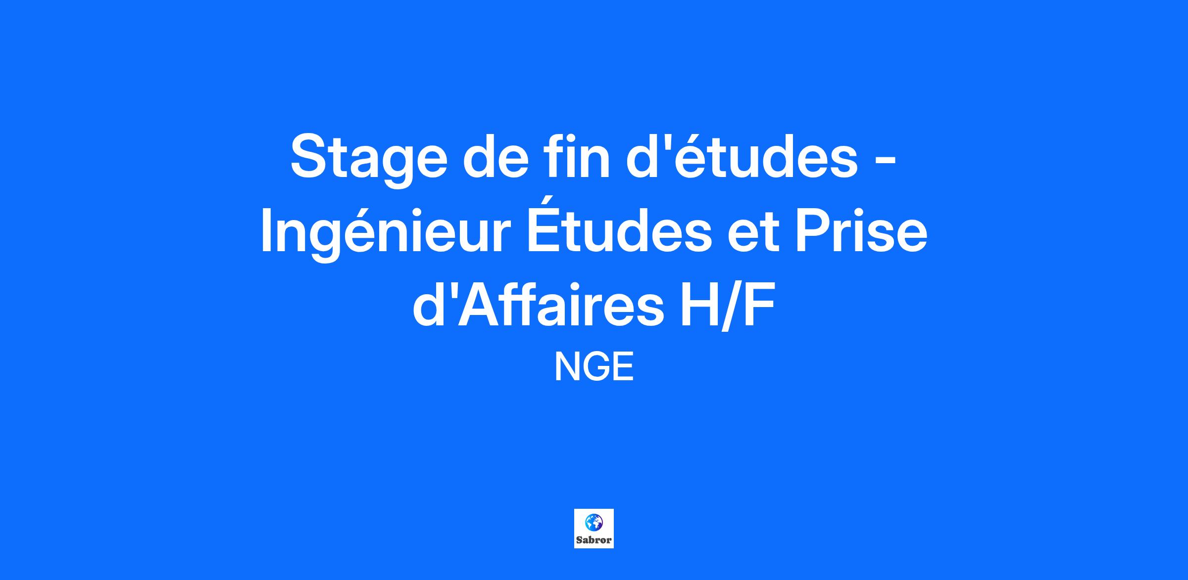 Stage de fin d'études - Ingénieur Études et Prise d'Affaires H/F