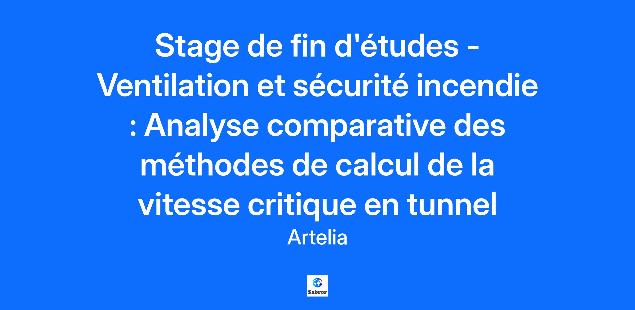 Ce stage a pour objectif de réaliser une étude critique des différentes approches de calcul de la vitesse critique utilisées dans la conception des systèmes de ventilation des tunnels :