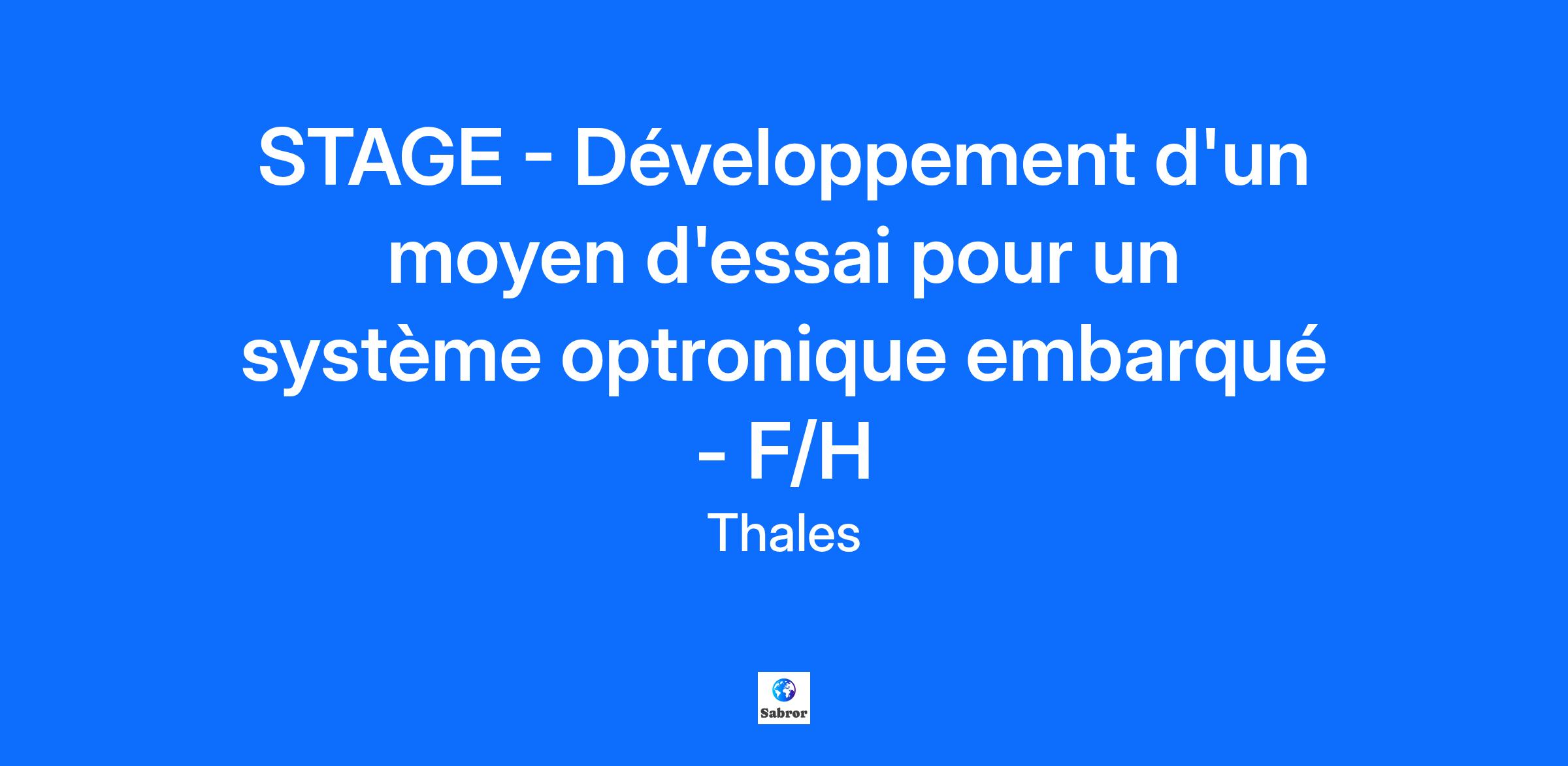 Lieu : Elancourt, France Construisons ensemble un avenir de confiance Thales est un leader mondial des hautes technologies spécialisé dans trois secteurs d’activité : Défense & Sécurité, Aéronautique & Spatial, et Cyber & Digital. Il développe des produits et solutions qui contribuent à un monde plus sûr, plus respectueux de l’environnement et plus inclusif. Le Groupe investit près de 4 milliards d’euros par an en Recherche & Développement, notamment dans des domaines clés de l’innovation tels que l’IA, la cybersécurité, le quantique, les technologies du cloud et la 6G. Thales compte près de 81 000 collaborateurs dans 68 pays. Nos engagements, vos avantages Notre savoir-faire technologique Notre attention portée à l’équilibre des collaborateurs Un environnement inclusif et bienveillant Un engagement sociétal et environnemental reconnu (Thales Solidarity, indice CAC 40 ESG…) Votre quotidien Au coeur de Saint Quentin en Yvelines, le site d'Elancourt est un des centres d’excellence technologique Thales les plus importants. La diversité et la technicité des systèmes et équipements mobilisent des savoir-faire dans plus de 80 métiers dans les solutions de défense, de sécurité de haute technologie et de services numériques. Au sein du département d'ingénierie du Secteur Air Optronique de Thales LAS France, et plus particulièrement dans le service en charge de l'IVVQ (Intégration, Vérification, Validation, Qualification), vous contribuez à améliorer la compétitivité de la discipline. Les ingénieurs IVVQ ont besoin d'outils spécifiques adaptés à leur activité. Un de ces outils est un porte-collimateur mobile. Il a été conçu par un ingénieur du service IVVQ, et doit être amélioré, en particulier en termes de motorisation micrométrique et de pilotage. Votre mission consiste à : Câbler les drivers de moteurs pas à pas avec la carte Arduino Vérifier / mettre au point le calage des collimateurs mobiles avec les lignes de visée de l’équipement optronique Piloter la carte Arduino via un serveur octoprint sur une plateforme de type Raspberry PI Piloter les différentes sources de lumière via un hub USB connecté au Raspberry PI Faire une note descriptive de l’architecture de la solution complète Mettre à jour la procédure d’utilisation du moyen Sur opportunité : Interfacer le système avec un métalangage de scénarisation de tests existant Intégrer une solution permettant l’incrustation de la cible collimatée dans une scène réelle Votre profil Vous suivez un cursus ingénieur en électronique, robotique, systèmes embarqués ? Vous avez de bonnes connaissances en électronique et en développement logiciel ? Vous êtes intéressé par les moyens d’essai ? Vous savez faire preuve de curiosité, de rigueur et de pragmatisme ? Vous avez un goût pour l’innovation ? Alors ce stage est fait pour vous ! Mot de l'équipe Rejoignez une équipe passionnée par son métier et fière de ses produits ! Tous nos stages sont conventionnés et soumis à une gratification dont le montant est déterminé selon votre niveau d’études. Thales, entreprise Handi-Engagée, reconnait tous les talents. La diversité est notre meilleur atout. Postulez et rejoignez nous !