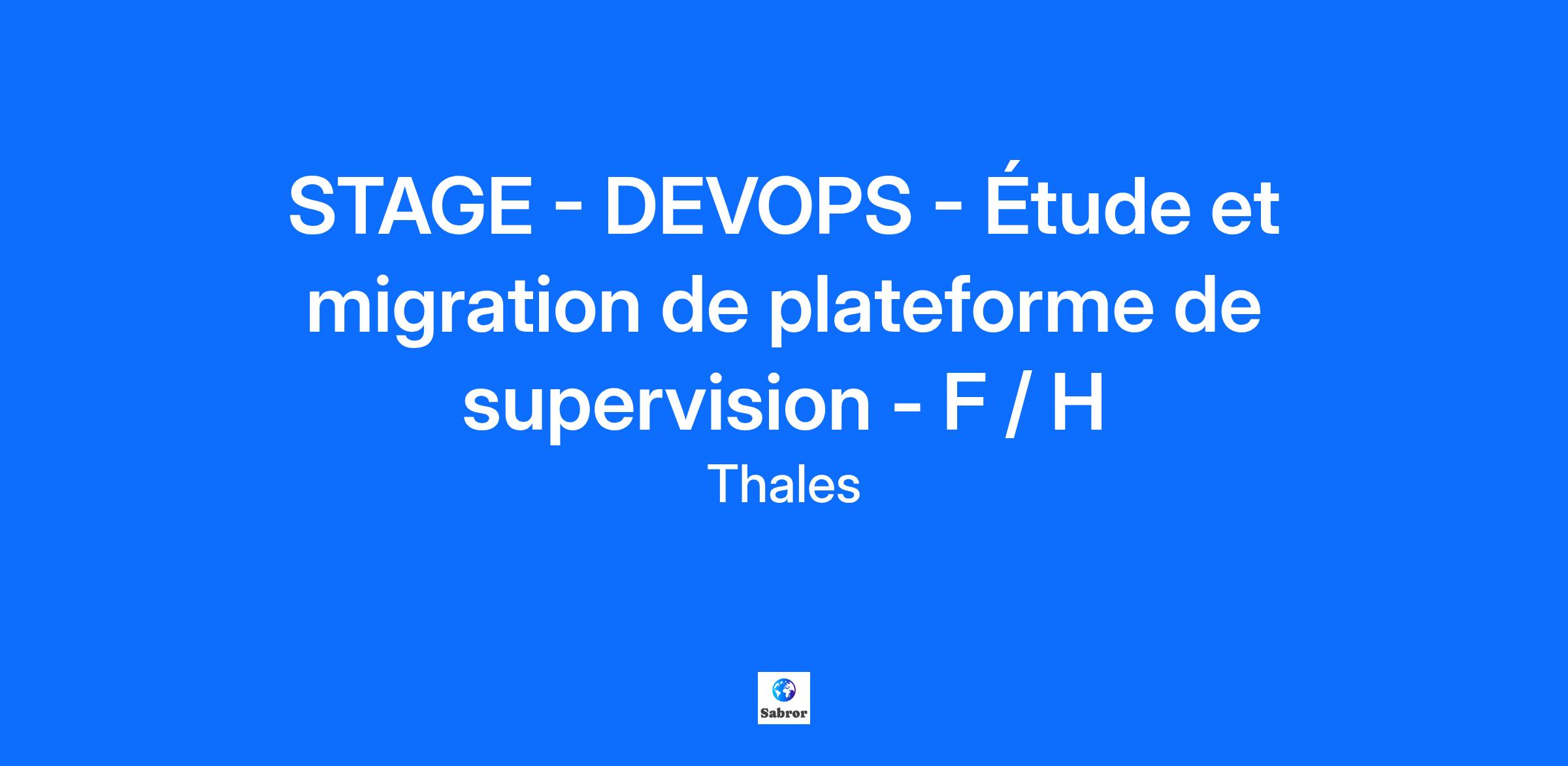 Lieu : Grenoble, France Construisons ensemble un avenir de confiance Thales est un leader mondial des hautes technologies spécialisé dans trois secteurs d’activité : Défense & Sécurité, Aéronautique & Spatial, et Cyber & Digital. Il développe des produits et solutions qui contribuent à un monde plus sûr, plus respectueux de l’environnement et plus inclusif. Le Groupe investit près de 4 milliards d’euros par an en Recherche & Développement, notamment dans des domaines clés de l’innovation tels que l’IA, la cybersécurité, le quantique, les technologies du cloud et la 6G. Thales compte près de 81 000 collaborateurs dans 68 pays. Nos engagements, vos avantages Notre savoir-faire technologique Notre attention portée à l’équilibre des collaborateurs Un environnement inclusif et bienveillant Un engagement sociétal et environnemental reconnu (Thales Solidarity, indice CAC 40 ESG…) Votre quotidien En nous rejoignant à Montbonnot, vous intégrez un site à proximité de Grenoble localisé dans la technopole Inovallée au pied des montagnes, regroupant nos activités de services numériques permettant d’opérer les systèmes d’informations critiques de nos clients et de les accompagner dans leur transformation numérique sécurisée. CONTEXTE : Dans le cadre d’une démarche d’amélioration, de fiabilité et de rationalisation de l’outil Nagios, utilisé pour superviser les systèmes de production des usines d’aluminium, vous participerez à une étude comparative entre les solutions Zabbix et Centreon, puis préparerez la migration vers la solution retenue. Ce stage s’adresse à celles et ceux qui souhaitent relever un défi technique, réfléchir à des architectures IT robustes, et s’impliquer dans la maintenance préventive ainsi que l’automatisation DevOps. Avec l'aide d'un leader technique, de l’équipe IT "systèmes et automatisation" et au sein de l’équipe projet d’un Centre de Services spécialisé en informatique industrielle et exploitation logicielle vous évoluerez dans un environnement international. VOUS AVEZ POUR MISSIONS : Analyser le fonctionnement actuel de la plateforme Nagios et choisir les métriques systèmes. Étudier comparativement les solutions Zabbix et Centreon. Développer des outils de migration : extraction automatique des configurations Nagios, transformation et import vers la nouvelle plateforme retenue. Automatiser l’installation, le packaging et le déploiement des nouvelles instances. Développer de nouvelles sondes et intégrer celles existantes. Selon l’avancement du stage et vos souhaits d’évolution, découvrir et travailler sur d’autres projets réalisés par le Centre de Services. VOTRE PROFIL : Vous avez l’ambition de développer de nouvelles compétences au sein d'un grand groupe international ? Vous avez envie de découvrir un métier riche et varié ? Analyse, autonomie, proactivité et travail en équipe sont des atouts que l’on vous reconnaît ? Vous préparez un BAC+5 et vous recherchez un stage de fin d'études ? Vous avez des connaissances en : Langage : Python, Shell Unix ; Protocoles réseau : IP/TCP/UDP, SNMP, ICMP… ; Base de données : Oracle, PostgreSQL ; Supervision : Nagios, Zabbix, Centreon ; Système : RedHat/CentOS, Linux, packages RPM. Alors ce poste est fait pour vous ! Nous sommes toujours en phase ? Oui ? Alors, n’attendez plus, postulez ! Tous nos stages sont conventionnés et soumis à une gratification dont le montant est déterminé selon votre niveau d’études. Thales, entreprise Handi-Engagée, reconnait tous les talents. La diversité est notre meilleur atout. Postulez et rejoignez nous ! Interested in a CAREER IN THE RAIL transportation sector? To see our jobs in the railway market, please visit our dedicated site here