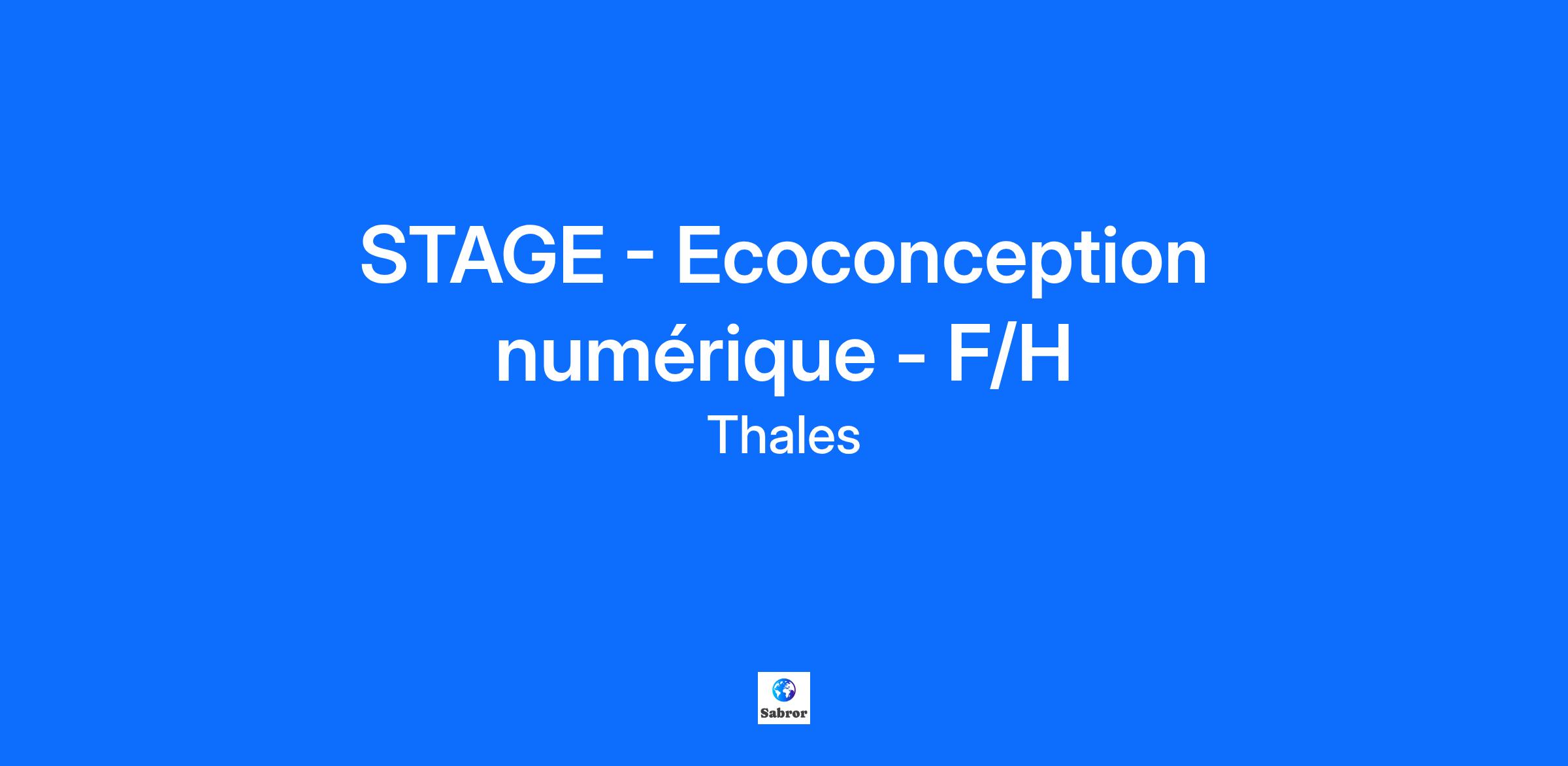 Lieu : Elancourt, France Construisons ensemble un avenir de confiance Thales est un leader mondial des hautes technologies spécialisé dans trois secteurs d’activité : Défense & Sécurité, Aéronautique & Spatial, et Cyber & Digital. Il développe des produits et solutions qui contribuent à un monde plus sûr, plus respectueux de l’environnement et plus inclusif. Le Groupe investit près de 4 milliards d’euros par an en Recherche & Développement, notamment dans des domaines clés de l’innovation tels que l’IA, la cybersécurité, le quantique, les technologies du cloud et la 6G. Thales compte près de 81 000 collaborateurs dans 68 pays. Nos engagements, vos avantages Notre savoir-faire technologique Notre attention portée à l’équilibre des collaborateurs Un environnement inclusif et bienveillant Un engagement sociétal et environnemental reconnu (Thales Solidarity, indice CAC 40 ESG…) Votre quotidien Au coeur de Saint Quentin en Yvelines, le site d'Elancourt est un des centres d’excellence technologique Thales les plus importants. La diversité et la technicité des systèmes et équipements mobilisent des savoir-faire dans plus de 80 métiers dans les solutions de défense, de sécurité de haute technologie et de services numériques. Vous intégrerez une équipe qui travaille sur le développement Durable des Produits dans un environnement en forte croissance et de haute technologie qui a pour objectif de réduire l’empreinte environnementale de produits pour le Rafale. L'objectif de ce stage est de travailler sur l'empreinte environnementale des produits numériques embarqués et d'établir un référentiel propre à ces produits. En nous rejoignant, vous vous verrez confier les missions suivantes : - Etablir une synthèse des différentes littératures sur l'écoconception numérique - Adapter à partir des existants un référentiel numérique - Créer un score d'écoconception pour le logiciel Votre profil Vous suivez un cursus niveau BAC+5 en informatique et vous recherchez un stage pour une durée de 6 mois ? Vous maitrisez les outils bureautiques ? Vous avez un intérêt pour l'environnement ? Vous avez une connaissance des langages informatiques? Une connaissance du Référentiel général de l'écoconception des services numériques serait un plus. Vous faites preuve de curiosité, d'autonomie et de proactivité ? Vous disposez d'un esprit critique? Idéalement, vous avez un bon niveau d'anglais ? Tous nos stages sont conventionnés et soumis à une gratification dont le montant est déterminé selon votre niveau d’études.Le poste pouvant nécessiter d'accéder à des informations relevant du secret de la défense nationale, la personne retenue fera l'objet d'une procédure d’habilitation, conformément aux dispositions des articles R.2311-1 et suivants du Code de la défense et de l’IGI 1300 SGDSN/PSE du 09 août 2021. Thales, entreprise Handi-Engagée, reconnait tous les talents. La diversité est notre meilleur atout. Postulez et rejoignez nous ! Interested in finding out more about Thales and why you should join us? Say HI* to new career opportunities.
