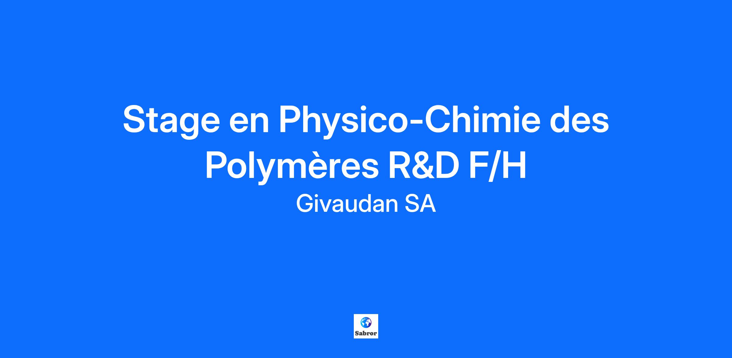 Rejoignez-nous et célébrons ensemble la beauté de l’expérience humaine. Participez à la création pour des vies plus heureuses et plus saines, avec l’amour de la nature. Ensemble, avec notre passion et notre imagination, nous proposons des innovations pour l’alimentation, concevons des parfums inspirés et développons des solutions pour la beauté et le bien-être. Apprenez de nos experts et partagez vos idées et ambitions avec plus de 16 000 collaborateurs à travers le monde. Chaque jour, votre talent, votre esprit créatif et votre détermination façonneront notre avenir et feront la différence pour des milliards de personnes. Notre monde s’enrichit de vos différences. Nous sommes Givaudan. Human by nature. Au sein du Département Science & Technologie et de notre Centre Européen de Création en Parfumerie, le Centre d’Excellence Delivery Systems développe des solutions innovantes d’utilisation de fragrance dans divers produits du quotidien. Notre Centre d’Excellence est spécialisé dans le domaine de systèmes de protection et de libération du parfum, ayant pour but global le contrôle de l’efficacité de la libération du parfum, et ainsi l’amélioration de l’expérience sensorielle du consommateur. Dans le cadre de ce stage, vous contribuerez au développement de solutions durables pour des applications en Fabric et Personal care, en abordant une ou plusieurs de ces thématiques : ● Synthèse, caractérisation et/ou formulation de biopolymères ayant des propriétés physico-chimiques définies● Développement et optimisation de méthodes de caractérisation physico-chimiques ● Etude bibliographique● Participation à la vie et la logistique du laboratoire● Interprétation et rédaction des résultats Pour ce faire, vous respecterez rigoureusement les procédures, les règles de sécurité et assurerez une stricte confidentialité sur les activités du Département Science et Technologie.Ce stage vous intéresse ? Il pourrait être une opportunité parfaite si, comme pour nous, votre objectif est de toujours répondre aux besoins des clients et de créer de la valeur. Vous ? Vous souhaitez effectuer votre stage dans une entreprise qui favorise la créativité et le travail d’équipe ? Vous désirez collaborer et apprendre avec une équipe aussi qualifiée que passionnée par leur métier ? Alors rejoignez-nous et touchez les émotions du monde qui vous entoure ! Votre profil comprend :● Une formation en École de Chimie ou Université de niveau Bac+5.● Des connaissances en chimie des biopolymères, des colloïdes, en chimie organique, et en physico-chimie.● La pratique d’un anglais professionnel et des outils du Pack Office.● Un intérêt prononcé pour la Recherche et le Développement. Durée : 6 mois à partir de février – mars 2026 Chez Givaudan, vous contribuez à la création d’expériences sensorielles et olfactives uniques qui touchent et inspirent le quotidien de nombreuses personnes dans le monde. Nous sommes inspirés et animés par un esprit d‘équipe qui permet d’évoluer, de collaborer et de valoriser ses compétences en côtoyant des équipes diversifiées, qualifiées et passionnées par leur métier, quelles que soient leurs régions ou divisions dans l’entreprise. Notre monde s’enrichit de vos différences. La diversité favorise l’innovation et permet de créer des liens plus étroits avec nos employés, nos clients et nos partenaires. Givaudan encourage la diversité et s’engage à créer un environnement où chacun a sa place et impacte notre univers.