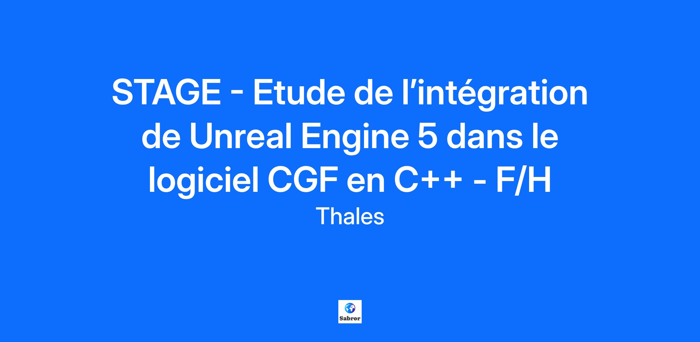 Lieu : Cergy, France Construisons ensemble un avenir de confiance Thales est un leader mondial des hautes technologies spécialisé dans trois secteurs d’activité : Défense & Sécurité, Aéronautique & Spatial, et Cyber & Digital. Il développe des produits et solutions qui contribuent à un monde plus sûr, plus respectueux de l’environnement et plus inclusif. Le Groupe investit près de 4 milliards d’euros par an en Recherche & Développement, notamment dans des domaines clés de l’innovation tels que l’IA, la cybersécurité, le quantique, les technologies du cloud et la 6G. Thales compte près de 81 000 collaborateurs dans 68 pays. Nos engagements, vos avantages Notre savoir-faire technologique Notre attention portée à l’équilibre des collaborateurs Un environnement inclusif et bienveillant Un engagement sociétal et environnemental reconnu (Thales Solidarity, indice CAC 40 ESG…) Votre quotidien A Cergy, vous contribuez aux systèmes d’entraînement et de simulation parmi les plus sophistiqués au monde. Vous rêvez de piloter hélicoptères, avions de chasse ou véhicules blindés ? Rejoignez-nous et relevez les défis des domaines aérien, terrestre, et naval ! Au sein du Centre de Compétences Training et Simulation, vous intégrez une équipe de 15 personnes au sein du service Training Staff Softwares. Ce service de 40 personnes développe les logiciels inhérents aux Postes Instructeurs dans les systèmes de simulation. Ces différents applicatifs offrent aux instructeurs la capacité d’immerger les entrainés (pilotes de véhicules aériens ou terrestres) dans un environnement virtuel reproduisant des situations et contextes réalistes, ainsi que les moyens d’évaluation durant les entrainements. Vos missions : Votre mission s’inscrit dans le cadre de l’étude de l’intégration de Unreal Engine 5 au sein du composant CGF (Computed Generated Forces). Le CGF est le composant central des Postes Instructeurs et offre la capacité d’animer l’environnement tactique (entités, effets du champ de bataille) dans la simulation. L’étude portera sur l’analyse des capacités offertes par Unreal Engine 5 pouvant profiter au CGF (exemple : génération de NavMesh, PathFinding, Intervisibilité, Altimetrie) En collaboration avec nos experts CGF, vous avez en charge : La prise en main du composant CGF L’analyse des capacités de Unreal Engine 5 L’intégration des capacités pertinentes de Unreal Engine 5 au sein du CGF La description et la mise en place des tests associés. La synthèse des résultats observés et la comparaison avec les résultats avant l’utilisation de Unreal Engine 5. La rédaction des documents inhérents au différentes étapes du stage Votre profil : De formation BAC+5 en école d’ingénieur avec une spécialisation en développement logiciel Compétences attendues : Développement C++ Connaissance Unreal Engine 5 Connaissances en design logiciel / UML Compétences souhaitées : Connaissance GIT / GitLAB Connaissance de Visual Studio (2022) Vous êtes curieux, organisé et rigoureux et avez de bonnes capacités relationnelles. Vous vous reconnaissez ? Alors, ce poste est fait pour vous ! Tous nos stages sont conventionnés et soumis à une gratification dont le montant est déterminé selon votre niveau d’études. Thales, entreprise Handi-Engagée, reconnait tous les talents. La diversité est notre meilleur atout. Postulez et rejoignez nous ! Interested in a CAREER IN THE RAIL transportation sector? To see our jobs in the railway market, please visit our dedicated site here