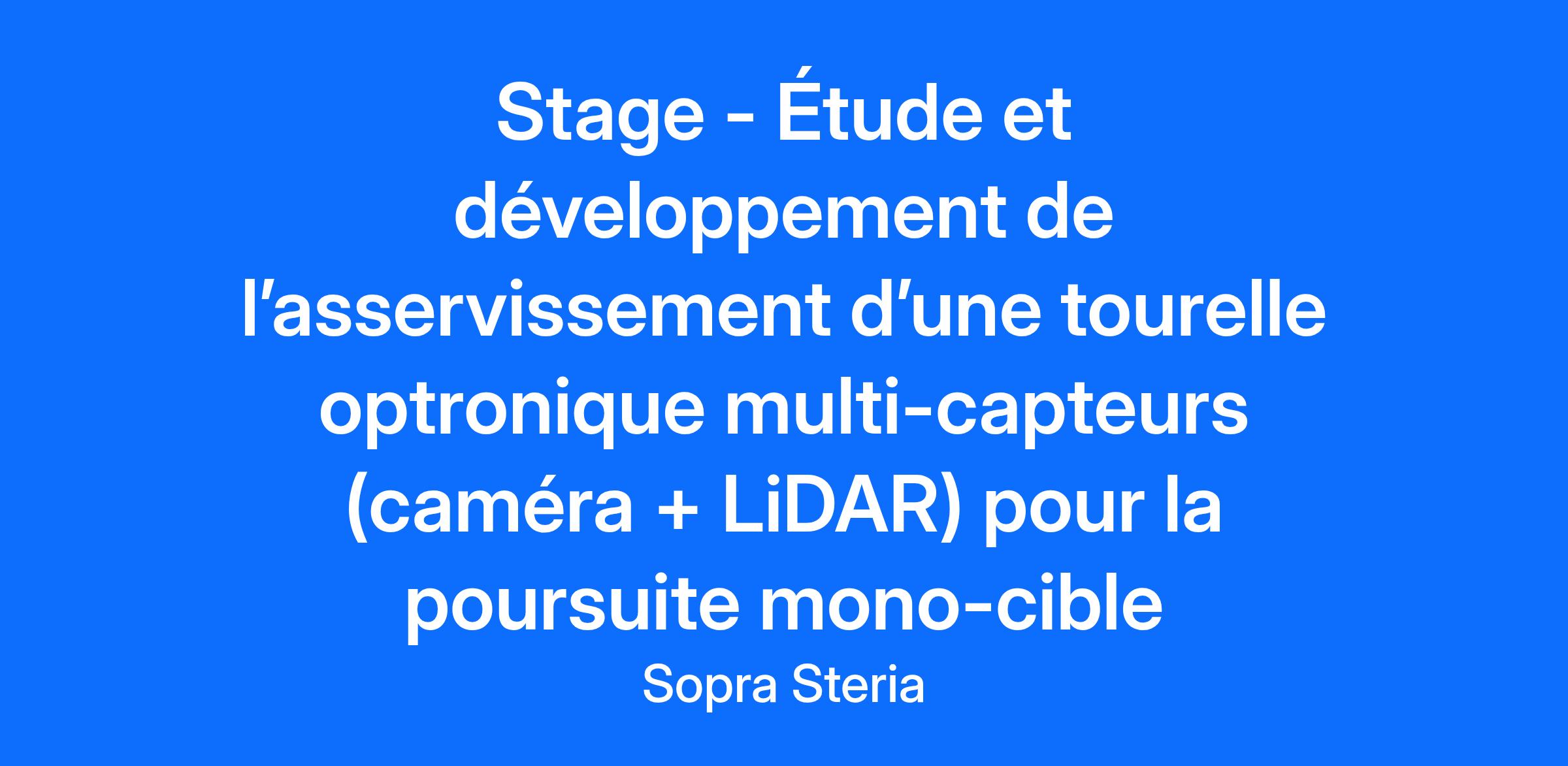 Description de l'entreprise CS, filiale du groupe Sopra Steria, est un acteur technologique de référence dans la conception, l’intégration et l’exploitation de systèmes critiques. Présents dans 7 pays avec plus de 2 600 collaborateurs passionnés, nous intervenons au cœur des enjeux de souveraineté, de sécurité et de performance, dans des secteurs stratégiques tels que la défense, le spatial, l’énergie, l’industrie, le transport, l’aéronautique et la cybersécurité. Notre différence ? Une expertise unique en systèmes temps réel, des solutions souveraines et durables, et une culture d’innovation forte, portée par 15 % de notre chiffre d’affaires investi en R&D. Nous accompagnons nos clients dans la réussite de leurs programmes les plus complexes, du contrôle aérien à la lutte anti-drones, en passant par les systèmes nucléaires et les centres de contrôle satellites. En rejoignant CS, vous intégrez une entreprise humaine et innovante. Nous livrons bien plus que des systèmes, nous bâtissons la confiance. Nous allons au-delà des besoins exprimés, nous préparons les défis de demain. Plus que de simples experts, nous façonnons l’innovation. Engagés à vos côtés, au service de vos enjeux critiques. Accélérer la transformation industrielle, en toute sécurité. Description du poste Implanté au coeur des campus de Saclay et Toulon depuis 2022, le CS Research Lab joue un rôle essentiel dans l'innovation au sein de CS et de Sopra Steria. Il combine des expertises pluridisciplinaires pour explorer les technologies émergentes et développer des solutions innovantes qui répondent aux défis du monde d’aujourd’hui et de demain. Fort de ses multiples collaborations avec des universités et instituts de recherche français et internationaux, son équipe de chercheurs passionnés maintient une expertise et un savoir-faire à la pointe de l’état de l’art pour enrichir les solutions et produits du groupe. Les activités de recherche du CS Research Lab couvrent diverses thématiques liées à l’intelligence artificielle, telles que la fusion de données et d’information multi-sources, les technologies capteurs (optronique, LiDAR 3D, radar passif…), la détection de comportements anormaux, les réseaux de capteurs intelligents pour la surveillance et le renseignement, la reconnaissance et l’identification d’objets, l’intégration humain-système, le raisonnement sous incertitude, le calcul quantique, les jumeaux numériques pour la détection des crues éclairs ou encore le cryptage de données. Vos missions : Le candidat devra dans un premier temps, maîtriser la conception de la tourelle et ses mécanismes afin de modéliser sa cinématique, la dynamique de la tourelle (axes azimut/site) et son système de visée. Dans un second temps, étudier des approches d’élaboration de l’asservissement écartométrique (comme la PSIAT Position/Speed Integral Angular Tracking) et évaluer les différentes approches sur un simulateur. Dans cette 3ième partie, l’étudiant dispose d’une machine avec carte Nvidia et carte d’acquisition pour acquérir l’image et la traiter pour en déduire une détection. L’information image est analysée et l’asservissement est activé pour centrer la cible dans l’image. Ensuite, on dispose d’un LIDAR sur le PTU qui sert à localiser la cible. Localiser la cible signifie calculer sa position par exemple en azimut/distance. La distance est fournie par le LIDAR ou éventuellement un télémètre. L’azimut peut être renseigné par exemple par une centrale inertielle positionnée sur le PTU. Le démonstrateur sera évalué en dernière phase sur la poursuite écartométrique basée sur l’erreur angulaire entre le centre image et la cible ainsi que des critères de performance en termes de précision, rapidité et robustesse. Qualifications Diplômé d'un cursus en ingénierie de niveau Bac+5 ou d'un mastère spécialisé, vous recherchez un stage de fin d'études d'une durée de 6 mois dans les domaines d'application liés au renseignement, à la défense et/ou aux télécommunications. Vous possédez des compétences à la fois théoriques et pratiques dans les domaines du traitement du signal et de l'image, de l'intelligence artificielle (apprentissage automatique, apprentissage profond, machine learning, programmation, etc.), ainsi que des outils mathématiques connexes (optimisation, probabilité, statistiques, etc.). Enfin vous avez acquis de solides compétences en rédaction, une maîtrise de l'anglais à l'oral et à l'écrit (la connaissance d'une autre langue constitue un atout supplémentaire) et êtes compétent en programmation avec Python ou Qt/C++. Ce stage offre la possibilité au candidat de poursuivre avec la réalisation d'une thèse en partenariat avec le CS Research Lab et un laboratoire académique pour une durée de 3 ans. Vous êtes passionné(e) par les données, que vous avez une forte envie d'apprendre et de résoudre des problèmes complexes et stimulants dans un environnement industriel. Alors, vous êtes la pépite que nous recherchons! Informations complémentaires Rejoignez une entreprise où l’humain, l’innovation et l’impact se rencontrent. Chez CS, nous offrons : Une expérience collaborateur enrichissante, portée par un environnement de travail conçu pour favoriser la flexibilité, l’autonomie et le bien-être au quotidien. Un parcours d’intégration complet pensé pour embarquer chaque talent dès le premier jour et une Academy pour développer vos compétences, enrichir votre expertise et construire les parcours professionnels qui vous ressemblent. Un engagement sociétal fort : plus de 3 000 associations soutenues, une politique handicap active, une culture inclusive, une démarche de numérique responsable, et des partenariats comme Elles bougent pour inspirer les talents féminins de demain. …et bien d’autres avantages à découvrir e