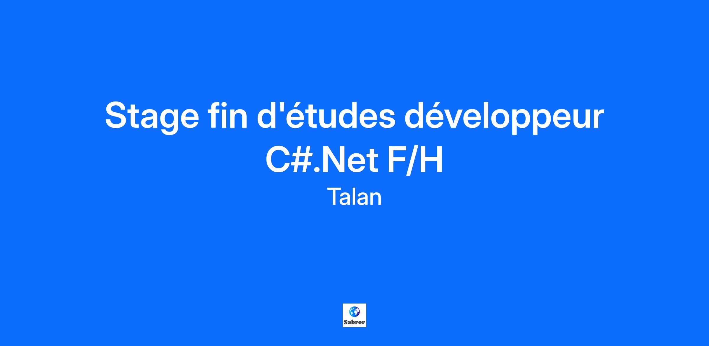 Description de l'entreprise Talan est un groupe international de conseil et d’expertises technologiques qui accélère la transformation de ses clients par les leviers de l'innovation, la technologie et la data. Depuis plus de 20 ans, Talan conseille et accompagne les entreprises et les institutions publiques dans la mise en œuvre de leurs projets de transformation et d'innovation en France et à l'international. Présent dans 20 pays, le Groupe, certifié Great Place To Work, qui compte plus de 7200 collaborateurs, ambitionne de dépasser la barre du milliard d'euros à horizon 2025. Nous accompagnons les entreprises dans des secteurs variés : énergie, industrie, transport, finance, luxe… à travers 3 grandes expertises : Le Conseil en Management et Innovation (320 Consultants en France) La valorisation des données, leurs structurations, et leurs usages (Data et Technologies) L’intégration de solutions logicielles (Cloud et Applications Services) Nos valeurs : engagement, respect, partage, esprit d’équipe et optimisme. Talan est une entreprise responsable, reconnue par ses collaborateurs et attachée à la diversité. Retrouvez nos engagements RSE ici et nos actions en faveur de la diversité ici Des aménagements peuvent être proposés si vous êtes en situation de handicap. Description du poste Dans le cadre de la mise en place de plateformes innovantes (architectures en microservices/DDD) chez nos clients, nous recherchons des stagiaires développeurs C# capables de mettre en œuvre les bonnes pratiques du développement. Accompagné(e) par votre tuteur et après une période de prise en main vous interviendrez sur l’ensemble des phases d’une prestation intellectuelle à savoir : De nouveaux défis en évoluant dans des environnements digitaux et multi-technologies stimulants De participer à la mise en œuvre d’architectures modernes et innovantes De collaborer avec une équipe Agile de passionnés en partageant vos best practices, accompagné d’un expert C# vous garantissant un management de proximité et une gestion de stage adaptée à vos attentes Vous interviendrez dans un environnement : Développement C# /.NET et .NET Core Front React ou Angular Bases de données : SQL Server et/ou NoSQL Intégration continue: DevOps et déploiements clouds (Azure, AWS), VSTS, TeamCity, Git, GitLab, Jenkins ; Ansible ; SonarQube ; Nexus ; Apache Maven ; Docker Méthodologie : TDD, BDD, Agile / Scrum #TalanFrance Qualifications Vous êtes à la fin de votre cycle de formation ingénieur ou universitaire (Bac+5) spécialité informatique ou robotique. Écoute et communication Esprit d'équipe, capacité d'apprentissage, autonomie, rigueur, implication, adaptation rapide aux différents contextes et aux différentes technologies rencontrés. Ingénieux(se) et perspicace Passionné(e) de développement et envie d’évoluer dans le domaine de développement logiciel Connaissance des langages de programmation logicielle (JavaScript, .Net, Java, XML, SQL, Web…) serait un plus Informations complémentaires