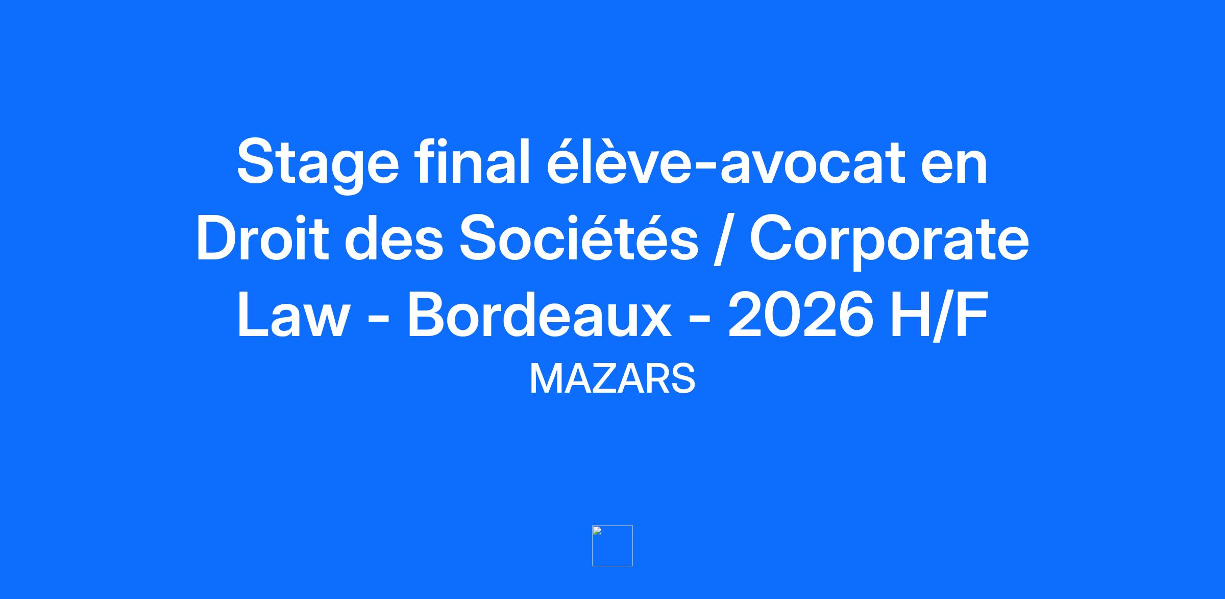 Description de l'entrepriseForvis Mazars Avocats est un cabinet d’avocats spécialisé en droit des affaires et fiscalité, membre de Forvis Mazars - organisation internationale, intégrée et indépendante spécialisée dans l'audit, le conseil, ainsi que les services comptables, fiscaux et juridiques.Présent à Levallois-Perret, Paris, Le Havre, Lille, Lyon, Rouen, Strasbourg, Toulouse, Carcassonne, Marseille et Valence, le cabinet s’appuie également sur les compétences des experts Forvis Mazars, présents dans 40 bureaux en France et dans 95 pays à l’international.À Bordeaux, le cabinet est spécialisé dans les domaines suivants :Droit des sociétésDroit fiscal (particuliers et entreprises)Droit commercial (baux, distribution)Description du posteLe département « droit fiscal » de Forvis Mazars Avocats recherche pour son bureau à Bordeaux un(e) stagiaire (convention de stage obligatoire pour une durée de 6 mois).Sous la supervision d'avocats spécialisés, vous interviendrez principalement en droit des sociétés sur les domaines suivants :le secrétariat juridique (constitution, approbation des comptes, augmentation de capital, changements de dirigeants, de siège, etc.)la rédaction d’actes dans le cadre d’opérations de M&A (SPA, pactes d'actionnaires, garanties d'actif et de passif,…)les audits juridiques d'acquisition ou de vente (VDD)les baux commerciaux.De façon subsidiaire, vous pourrez également intervenir sur des problématiques plus générales en droit commercial (cession de fonds de commerce, contrats commerciaux, etc.)QualificationsElève-avocat titulaire d’un DJCE ou d’un Master 2 en droit des affaires, vous êtes doté(e) d’un bon relationnel, vous savez faire preuve de rigueur, de curiosité, d’adaptabilité et d’un bon esprit d’équipe.Ou stage de fin d'études en Master 2.Une bonne maîtrise de l’anglais à l’écrit comme à l’oral est souhaitée.