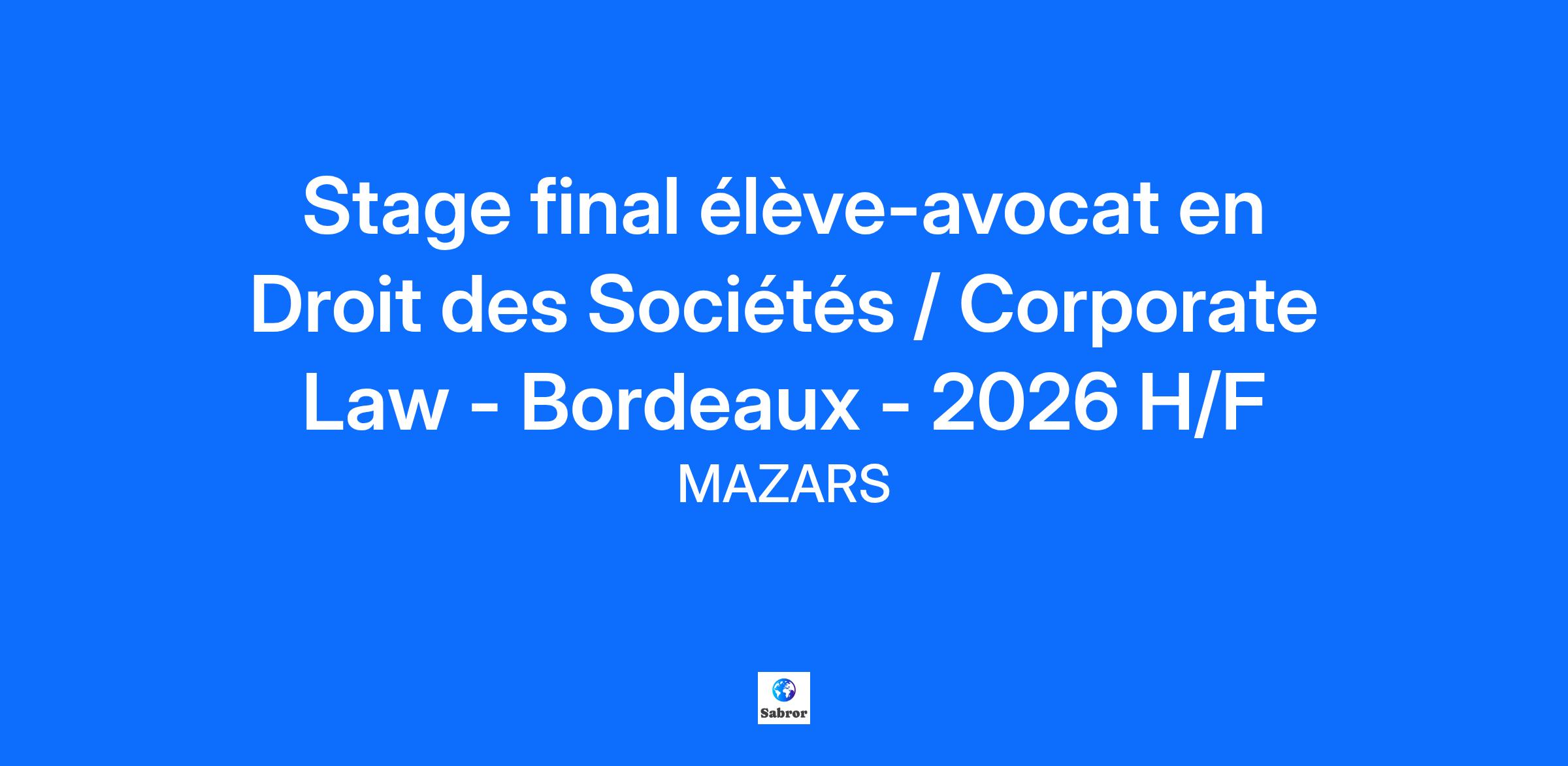 Description de l'entreprise Forvis Mazars Avocats est un cabinet d’avocats spécialisé en droit des affaires et fiscalité, membre de Forvis Mazars - organisation internationale, intégrée et indépendante spécialisée dans l'audit, le conseil, ainsi que les services comptables, fiscaux et juridiques. Présent à Levallois-Perret, Paris, Le Havre, Lille, Lyon, Rouen, Strasbourg, Toulouse, Carcassonne, Marseille et Valence, le cabinet s’appuie également sur les compétences des experts Forvis Mazars, présents dans 40 bureaux en France et dans 95 pays à l’international. À Bordeaux, le cabinet est spécialisé dans les domaines suivants : Droit des sociétés Droit fiscal (particuliers et entreprises) Droit commercial (baux, distribution) Description du poste Le département « droit fiscal » de Forvis Mazars Avocats recherche pour son bureau à Bordeaux un(e) stagiaire (convention de stage obligatoire pour une durée de 6 mois). Sous la supervision d'avocats spécialisés, vous interviendrez principalement en droit des sociétés sur les domaines suivants : le secrétariat juridique (constitution, approbation des comptes, augmentation de capital, changements de dirigeants, de siège, etc.) la rédaction d’actes dans le cadre d’opérations de M&A (SPA, pactes d'actionnaires, garanties d'actif et de passif,…) les audits juridiques d'acquisition ou de vente (VDD) les baux commerciaux. De façon subsidiaire, vous pourrez également intervenir sur des problématiques plus générales en droit commercial (cession de fonds de commerce, contrats commerciaux, etc.) Qualifications Elève-avocat titulaire d’un DJCE ou d’un Master 2 en droit des affaires, vous êtes doté(e) d’un bon relationnel, vous savez faire preuve de rigueur, de curiosité, d’adaptabilité et d’un bon esprit d’équipe. Ou stage de fin d'études en Master 2. Une bonne maîtrise de l’anglais à l’écrit comme à l’oral est souhaitée.