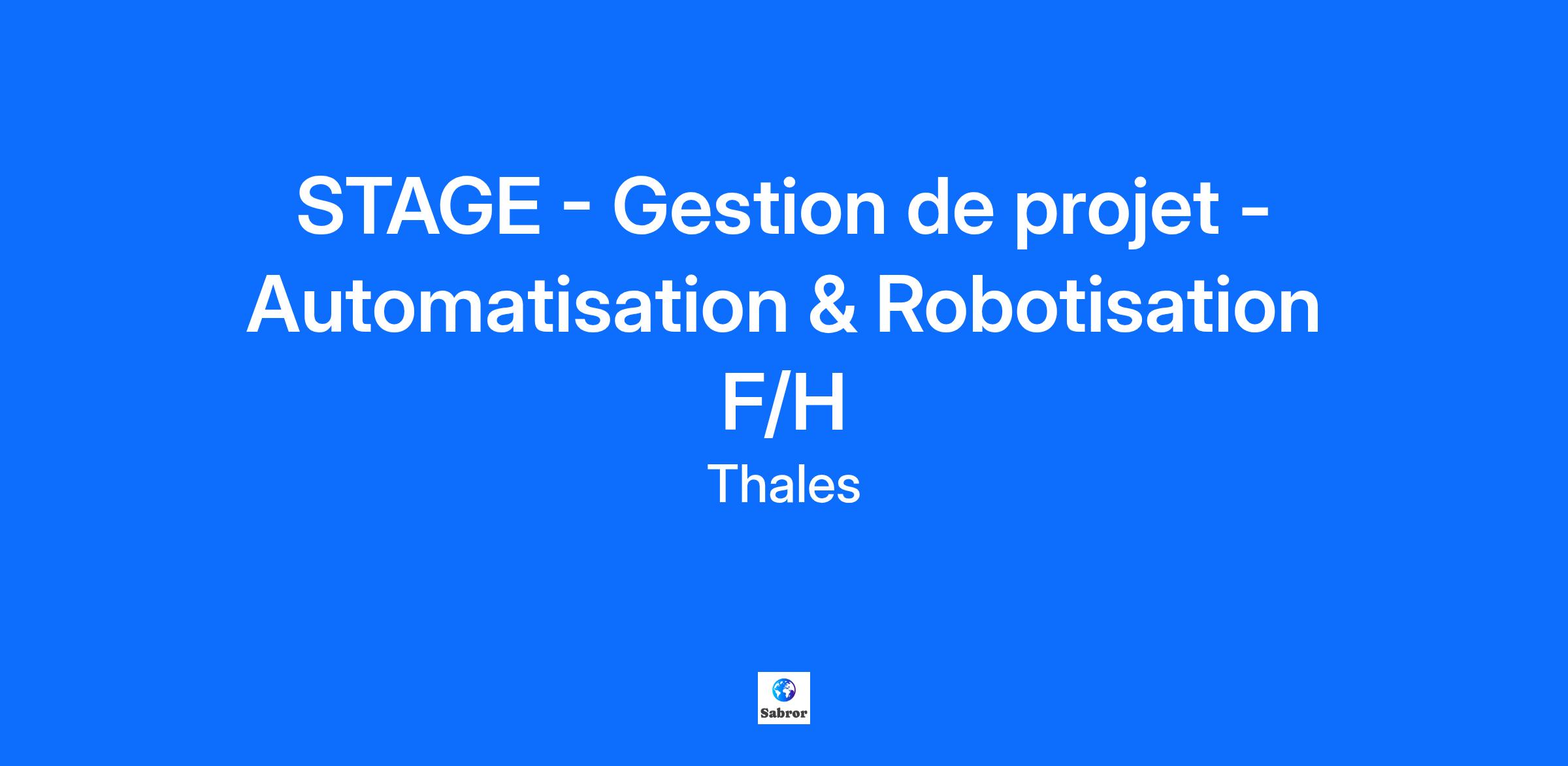 Lieu : Vélizy-Villacoublay, France Construisons ensemble un avenir de confiance Thales est un leader mondial des hautes technologies spécialisé dans trois secteurs d’activité : Défense & Sécurité, Aéronautique & Spatial, et Cyber & Digital. Il développe des produits et solutions qui contribuent à un monde plus sûr, plus respectueux de l’environnement et plus inclusif. Le Groupe investit près de 4 milliards d’euros par an en Recherche & Développement, notamment dans des domaines clés de l’innovation tels que l’IA, la cybersécurité, le quantique, les technologies du cloud et la 6G. Thales compte près de 81 000 collaborateurs dans 68 pays. Nos engagements, vos avantages Notre savoir-faire technologique Notre attention portée à l’équilibre des collaborateurs Un environnement inclusif et bienveillant Un engagement sociétal et environnemental reconnu (Thales Solidarity, indice CAC 40 ESG…) Votre quotidien Rejoignez-nous sur le campus Vélizy qui héberge une grande diversité d’activités Thales, aéro, défense, civile,... A l'ouest de Paris, ce site offre un environnement de travail équipé des dernières innovations technologiques et propose des services permettant de concilier vie professionnelle et personnelle. Vous intervenez en soutien à la Responsable de la Performance Opérationnelle du site pour la gestion des projets d’automatisation et de robotisation. Vous serez impliqué dans des projets innovants, tels que : L’automatisation du montage d’assemblages micromécaniques avec une précision au micron, Le contrôle automatique des pièces en céramique (dimensionnel et visuel) basé sur l’intelligence artificielle, L’automatisation et la robotisation du réglage des tubes hyperfréquence. Votre mission consistera à collaborer étroitement avec les équipes opérationnelles pour comprendre les process et besoins, échanger avec les fournisseurs sur les solutions techniques, organiser la planification et le suivi des projets, puis accompagner la mise en œuvre et le déploiement des solutions sur de nouveaux produits. Le site de Vélizy, spécialisé dans la production de tubes à ondes progressives pour le spatial, la défense et les télécommunications, allie des savoir-faire variés : micromécanique, traitement hyperfréquence, chimie, verrerie et brasage. Face à une production multi-unitaire à forte technicité manuelle, une démarche d’automatisation est en cours pour accroître la précision, accompagner les montées en cadence et faciliter l’intégration des nouvelles recrues. Votre profil Vous êtes dynamique, motivé et souhaitez évoluer dans un environnement technique stimulant. Vous appréciez le travail en équipe et avez un intérêt pour la gestion de projets innovants et la collaboration avec des interlocuteurs variés (opérationnels, fournisseurs). Durée du stage : 6 mois idéalement Date de démarrage : dès que possible Tous nos stages sont conventionnés et soumis à une gratification dont le montant est déterminé selon votre niveau d’études. Thales, entreprise Handi-Engagée, reconnait tous les talents. La diversité est notre meilleur atout. Postulez et rejoignez nous !