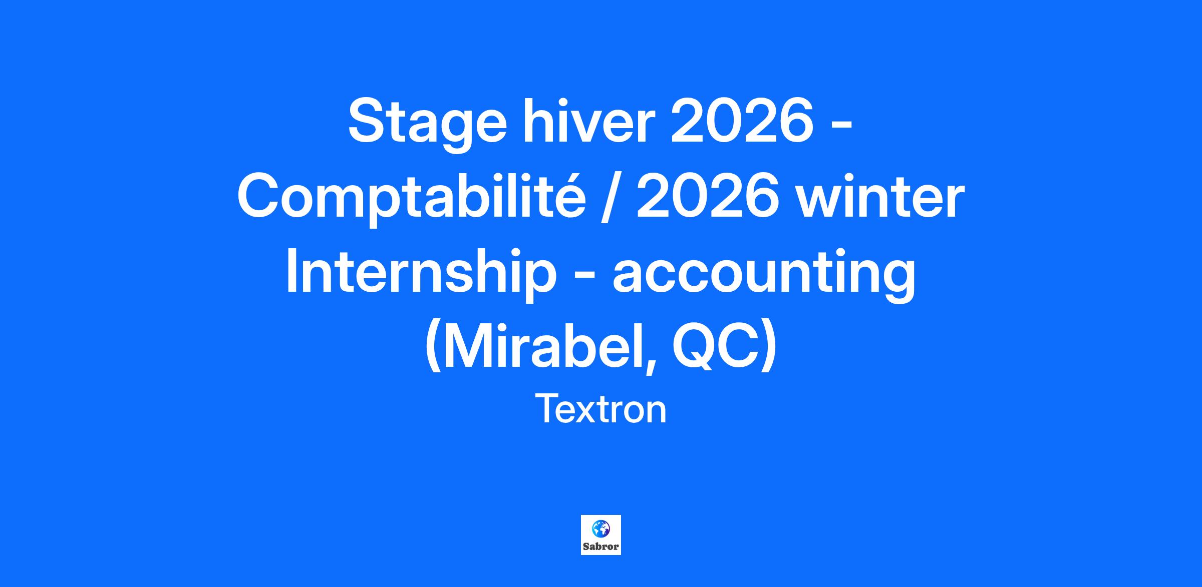Stage hiver 2026 - Comptabilité / 2026 winter Internship - accounting (Mirabel, QC)