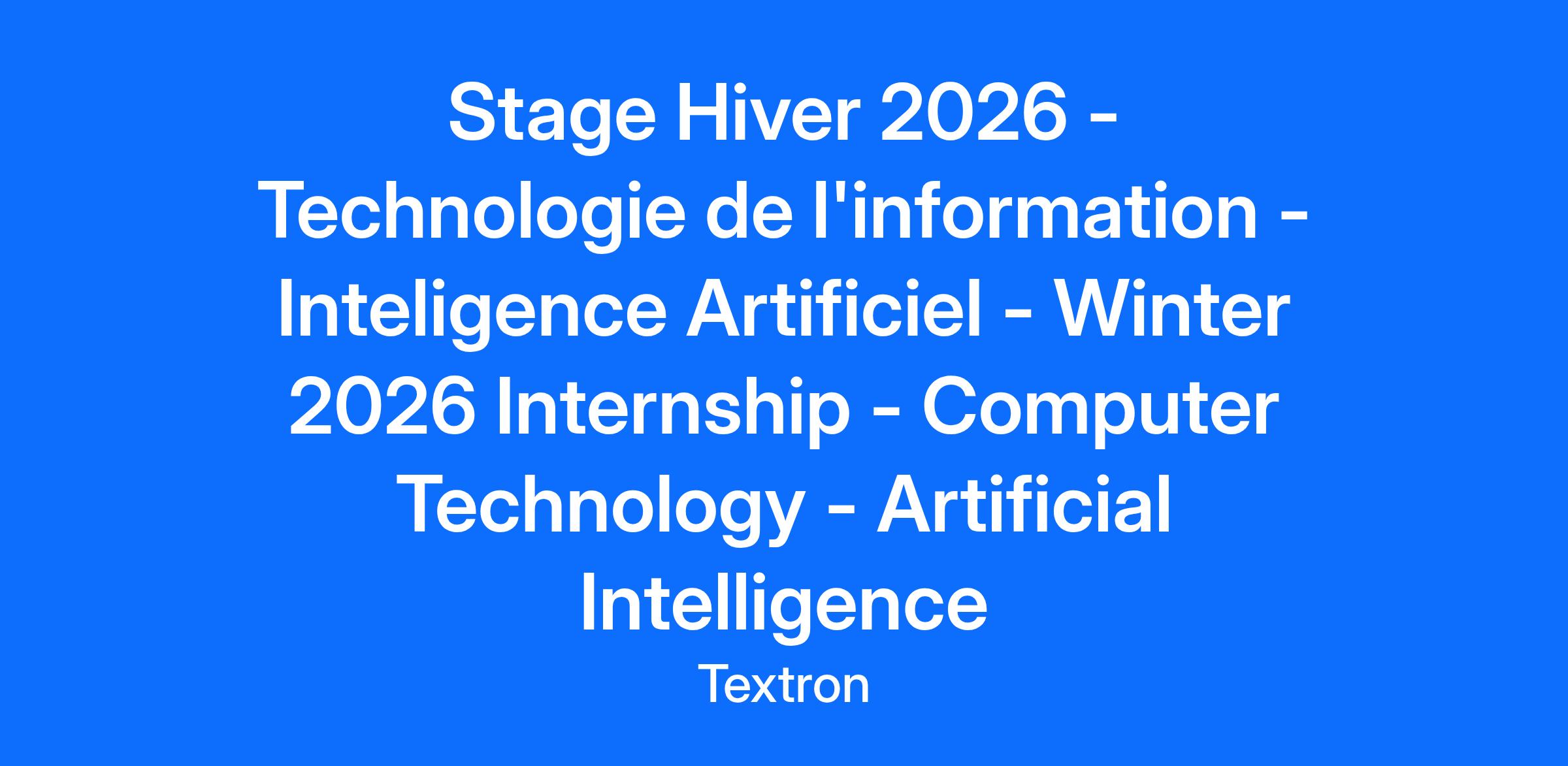 Nous sommes des pionniers. Nous avons été les premiers à franchir le mur du son et à concevoir le premier scooter de l’espace fonctionnel. Nous avons pris part à la première mission de la NASA sur la Lune et nous avons mis en marché des systèmes de rotors basculants évolués. Aujourd’hui, nous façonnons l’avenir de la mobilité sur demande. Les employés de Bell sont fiers de travailler pour une entreprise emblématique, regroupant de grands talents, qui produit en peu de temps des appareils à décollage vertical novateurs et recherchés. Chez Bell nous croyons que le stage doit être une expérience mutuellement enrichissante. Le stagiaire recherché évoluera au sein du département d’un secteur administratif en charge des mesures de performance, création de rapports et de divers tableaux de bords et ce dans un environnement dynamique et stimulant où le travail d'équipe a une place de choix. Développer une intelligence qui permet de gérer les multitudes de paramètres de la cédule des fabrications des cores. Les responsabilités sont en fonction des connaissances/expériences du stagiaire choisi. Avantages - Possibilité d'horaire flexible; - Cohorte d'environ 30 stagiaires par session sur tout le site de Bell; - Cafétéria sur place; - Possibilité d'extension pour la période estivale; - Projets et défis stimulants. QUALIFICATIONS REQUISES : Être inscrit dans un programme en informatique (préférable) ou autre programme pertinent. Le candidat idéal est motivé, autonome et autodidacte. Connaissance approfondis en inteligence artificiel Le stagiaire prendra place durant son stage sur un ou plusieurs projet(s) utilisant certaines des technologies telles que: Power BI, Power APPS, Power Automate, Base de données. Avoir utilisé Power Bi serait un atout important. Capable de travailler dans un environnement multitâche et dans le cadre d’équipes multidisciplinaires. Rapidité d’assimiler de nouvelles connaissances. Bonne habileté à résoudre des problématiques. Esprit d’analyses et de synthèses, bonne communication ; Rigoureux, structuré et autonome ; Français parlé et écrit est essentiel Ne ratez pas votre chance de vous joindre à un milieu diversifié et inclusif qui favorise un sentiment d’appartenance. En tant que membre de notre effectif mondial, vous collaborerez avec des équipes dévouées et enthousiastes, dont les différences d’expériences, d’antécédents et d’idées et une solide passion pour nos produits nous permettent d’aller au-delà du vol. Bell Textron Canada Ltée adhère aux principes d’équité en matière d’emploi.