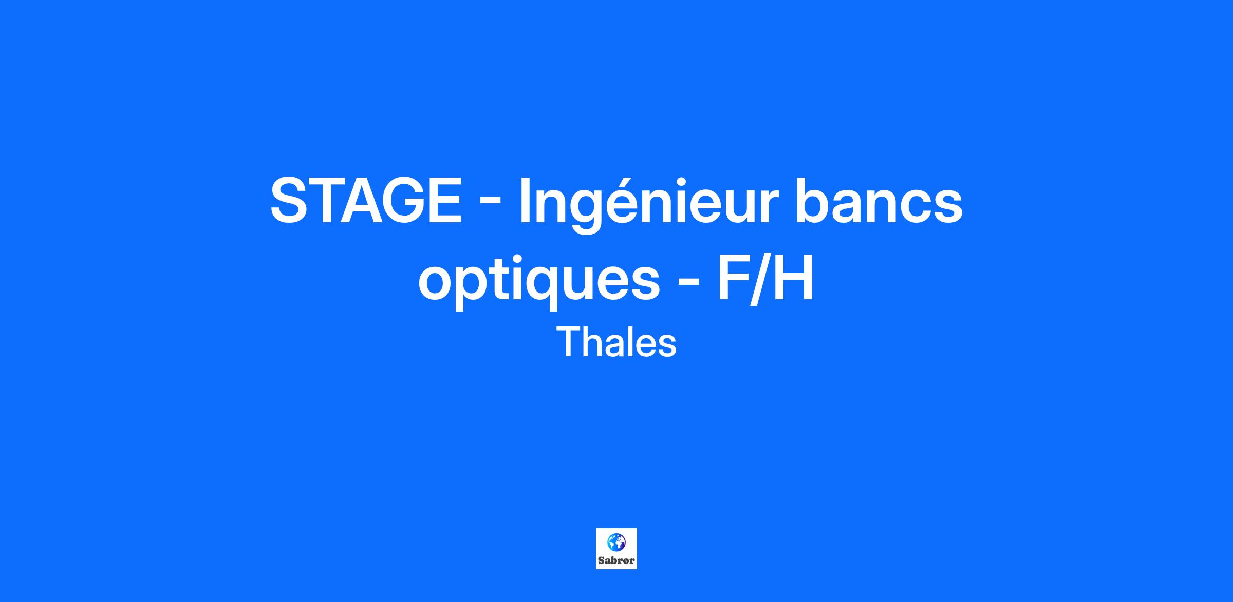 Lieu : Elancourt, France Construisons ensemble un avenir de confiance Thales est un leader mondial des hautes technologies spécialisé dans trois secteurs d’activité : Défense & Sécurité, Aéronautique & Spatial, et Cyber & Digital. Il développe des produits et solutions qui contribuent à un monde plus sûr, plus respectueux de l’environnement et plus inclusif. Le Groupe investit près de 4 milliards d’euros par an en Recherche & Développement, notamment dans des domaines clés de l’innovation tels que l’IA, la cybersécurité, le quantique, les technologies du cloud et la 6G. Thales compte près de 81 000 collaborateurs dans 68 pays. Nos engagements, vos avantages Notre savoir-faire technologique Notre attention portée à l’équilibre des collaborateurs Un environnement inclusif et bienveillant Un engagement sociétal et environnemental reconnu (Thales Solidarity, indice CAC 40 ESG…) Votre quotidien Au coeur de Saint Quentin en Yvelines, le site d'Elancourt est un des centres d’excellence technologique Thales les plus importants. La diversité et la technicité des systèmes et équipements mobilisent des savoir-faire dans plus de 80 métiers dans les solutions de défense, de sécurité de haute technologie et de services numériques. Le Centre de Compétence Technique recherche pour son Bureau d’Etudes Optique, un stagiaire en cycle d'ingénierie optique. Vous serez intégré au Service Bureau Optique de l'activité Systèmes Terrestres et Aériens France Elancourt, vous évoluerez dans un cadre dynamique et motivant. En nous rejoignant, vous vous verrez confier les missions suivantes: Vous serez en charge de participer à des intégrations de bancs optiques Vous serez en charge de mener certaines caractérisations optiques permettant de travailler avec des équipements de métrologie optique variés Votre profil Vous êtes en dernière année de cursus ingénieur en majeure optique / photonique ? Vous avez des connaissances solides en : Optique géométrique Métrologie optique (Zygo,..) Vous savez modéliser certains concepts par calculs optiques ? Vous détenez une certaine appétence pour le travail en laboratoire pour faire de l’intégration opto-mécanique ? Idéalement, vous maîtrisez les outils de modélisation Code V ou Zemax ? Vous savez faire preuve d'un bon niveau scientifique et technique avec des qualités d'analyse, de logique et de rigueur ? Alors ce stage est fait pour vous ! Tous nos stages sont conventionnés et soumis à une gratification dont le montant est déterminé selon votre niveau d’études.Le poste pouvant nécessiter d'accéder à des informations relevant du secret de la défense nationale, la personne retenue fera l'objet d'une procédure d’habilitation, conformément aux dispositions des articles R.2311-1 et suivants du Code de la défense et de l’IGI 1300 SGDSN/PSE du 09 août 2021. Thales, entreprise Handi-Engagée, reconnait tous les talents. La diversité est notre meilleur atout. Postulez et rejoignez nous ! Interested in a CAREER IN THE RAIL transportation sector? To see our jobs in the railway market, please visit our dedicated site here