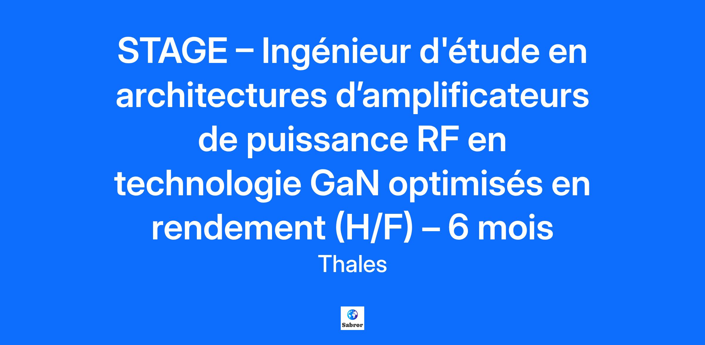 Lieu : Palaiseau, France Construisons ensemble un avenir de confiance Thales est un leader mondial des hautes technologies spécialisé dans trois secteurs d’activité : Défense & Sécurité, Aéronautique & Spatial, et Cyber & Digital. Il développe des produits et solutions qui contribuent à un monde plus sûr, plus respectueux de l’environnement et plus inclusif. Le Groupe investit près de 4 milliards d’euros par an en Recherche & Développement, notamment dans des domaines clés de l’innovation tels que l’IA, la cybersécurité, le quantique, les technologies du cloud et la 6G. Thales compte près de 81 000 collaborateurs dans 68 pays. Nos engagements, vos avantages Notre savoir-faire technologique Notre attention portée à l’équilibre des collaborateurs Un environnement inclusif et bienveillant Un engagement sociétal et environnemental reconnu (Thales Solidarity, indice CAC 40 ESG…) Votre quotidien Thales Research&Technology, notre centre de recherche dans les domaines matériels, et CortAIx Labs, notre centre de recherche en IA et digital ont pour mission de proposer des innovations de ruptures, de maintenir et d’accroitre l’avance technologique et d’en assurer la compétitivité pour le groupe. III-V Lab, laboratoire de recherche industriel en technologie et composants semi-conducteur III-V, vous propose un stage portant sur la conception d’amplificateur de puissance en technologie GaN. Le développement de la technologie de transistor à base de nitrure de gallium (GaN) a fortement révolutionné ces dernières années le marché des composants semi-conducteurs III-V. Les HEMT à base du GaN ont démontré leur potentialité pour les applications fortes puissances. La recherche de l’efficacité maximale est aujourd’hui au cœur des préoccupations pour diminuer la dissipation et réduire les couts des systèmes. En nous rejoignant, vous intégrerez l’équipe du programme GaN RF en charge des caractérisations, modélisations et conceptions des circuits hyperfréquences. En utilisant les modèles de transistors disponibles, vous allez étudier les architectures de circuits permettant de maximiser l’efficacité énergétique comme les architectures Doherty et/ou LMBA. Dans ce contexte, vous aurez pour missions : Etude bibliographique sur les architectures d’amplificateur de puissance Prendre en main le logiciel de simulation et de modélisation ADS Pathwave de Keysight. Analyse du fonctionnement des transistors GaN à partir du modèle non linéaire Conception d’un amplificateur de puissance en architecture Doherty et /ou LMBA à 30 GHz. Votre profil STAGE – Ingénieur d'étude en architectures d’amplificateurs de puissance RF en technologie GaN optimisés en rendement (H/F) – 6 mois Vous avez envie de découvrir le domaine de la recherche ? Vous avez pour ambition de réaliser votre stage au sein de Thales ? Etudiant en M2, en Ecole d’ingénieur ou formation équivalente, vous avez des connaissances en : Conception et simulation (Outils ADS de Keysight) ; Electronique ; Fonctionnement des transistors ; Notions d’hyperfréquences et paramètres [S] ; Anglais (oral et écrit – B2/C1 attendu). Rigueur, créativité et curiosité scientifique sont des atouts que l'on vous reconnait ? Alors ce stage est fait pour vous ! Tous nos stages sont conventionnés et soumis à une gratification dont le montant est déterminé selon votre niveau d’études. Thales, entreprise Handi-Engagée, reconnait tous les talents. La diversité est notre meilleur atout. Postulez et rejoignez nous ! Interested in a CAREER IN THE RAIL transportation sector? To see our jobs in the railway market, please visit our dedicated site here
