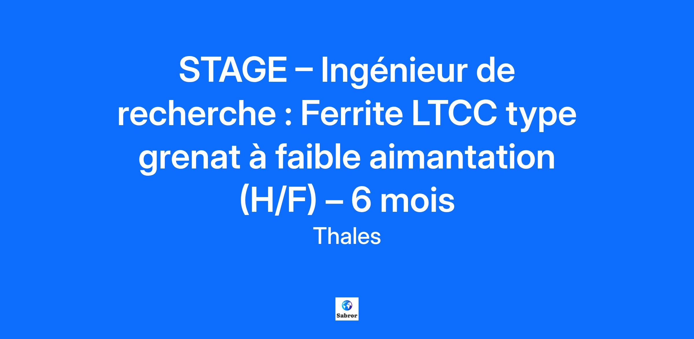 Lieu : Palaiseau, France Construisons ensemble un avenir de confiance Thales est un leader mondial des hautes technologies spécialisé dans trois secteurs d’activité : Défense & Sécurité, Aéronautique & Spatial, et Cyber & Digital. Il développe des produits et solutions qui contribuent à un monde plus sûr, plus respectueux de l’environnement et plus inclusif. Le Groupe investit près de 4 milliards d’euros par an en Recherche & Développement, notamment dans des domaines clés de l’innovation tels que l’IA, la cybersécurité, le quantique, les technologies du cloud et la 6G. Thales compte près de 81 000 collaborateurs dans 68 pays. Nos engagements, vos avantages Notre savoir-faire technologique Notre attention portée à l’équilibre des collaborateurs Un environnement inclusif et bienveillant Un engagement sociétal et environnemental reconnu (Thales Solidarity, indice CAC 40 ESG…) Votre quotidien Thales Research&Technology, notre centre de recherche dans les domaines matériels, et CortAIx Labs, notre centre de recherche en IA et digital ont pour mission de proposer des innovations de ruptures, de maintenir et d’accroitre l’avance technologique et d’en assurer la compétitivité pour le groupe. Au sein du Laboratoire de recherche, vous aurez pour objectif de synthétiser et de caractériser des ferrites hyperfréquences pour des dispositifs de type de circulateur ou de switch (latched devices) fonctionnant en basse fréquence (bande S de 2 à 4 GHz). Ces dispositifs sont destinés aux futurs instruments d’observation de la Terre, radars à synthèse d’ouverture (RSO) ou les systèmes d’altimétrie. Pour cela, vous aurez comme challenge : Varier l’aimantation de la ferrite pour correspondre à la bande de fréquence souhaitée. Assurer La miniaturisation des composants en variant ses propriétés diélectriques Réussir à réaliser des dispositifs par le procédé de Low Temperature Cofired Ceramics (LTCC). Lors de votre stage, vous aurez une première partie « matériau » dans laquelle vous réaliserez des ferrites de structure grenat présentant des permittivités diélectriques assez élevées et des pertes hyperfréquences faibles et aimantations qui correspondent bien à la fréquence d’opération et une seconde partie « mesures électromagnétiques » qui consistera à caractériser à bas niveau et à fort niveau de puissance les matériaux réalisés. Dans ce contexte, vos missions seront les suivantes : Synthèse de poudre par la technologie céramique, Mise en forme par pressage à froid. Etude du frittage. Caractérisations physico-chimiques et caractérisations électromagnétiques : Mesure de la surface spécifique et de la densité. Observations MEB, Mesure des cycles d’hystérésis et de l’aimantation à saturation. Mesures hyperfréquences : constante diélectrique ε’, tanδε, ΔH, ΔHK, Votre profil STAGE – Ingénieur de recherche : Ferrite LTCC type grenat à faible aimantation (H/F) – 6 mois Vous avez envie de découvrir le domaine de la recherche ? Vous avez pour ambition de réaliser votre stage au sein de Thales ? Vous souhaitez évoluer dans un milieu international ? Etudiant en Master 2, en Ecole d’ingénieur ou formation équivalente, vous avez des connaissances en : Science des matériaux ; Mesure physique ; Electromagnétisme et hyperfréquences ; Programmation (Matlab, Python) ; Anglais (niveau B2-C1 attendu) ; Vous avez un vif intérêt pour l’expérimentation et la recherche Rigueur, autonomie, curiosité et esprit d’équipe sont des atouts que l'on vous reconnait ? Alors ce stage est fait pour vous ! Tous nos stages sont conventionnés et soumis à une gratification dont le montant est déterminé selon votre niveau d’études. Thales, entreprise Handi-Engagée, reconnait tous les talents. La diversité est notre meilleur atout. Postulez et rejoignez nous !