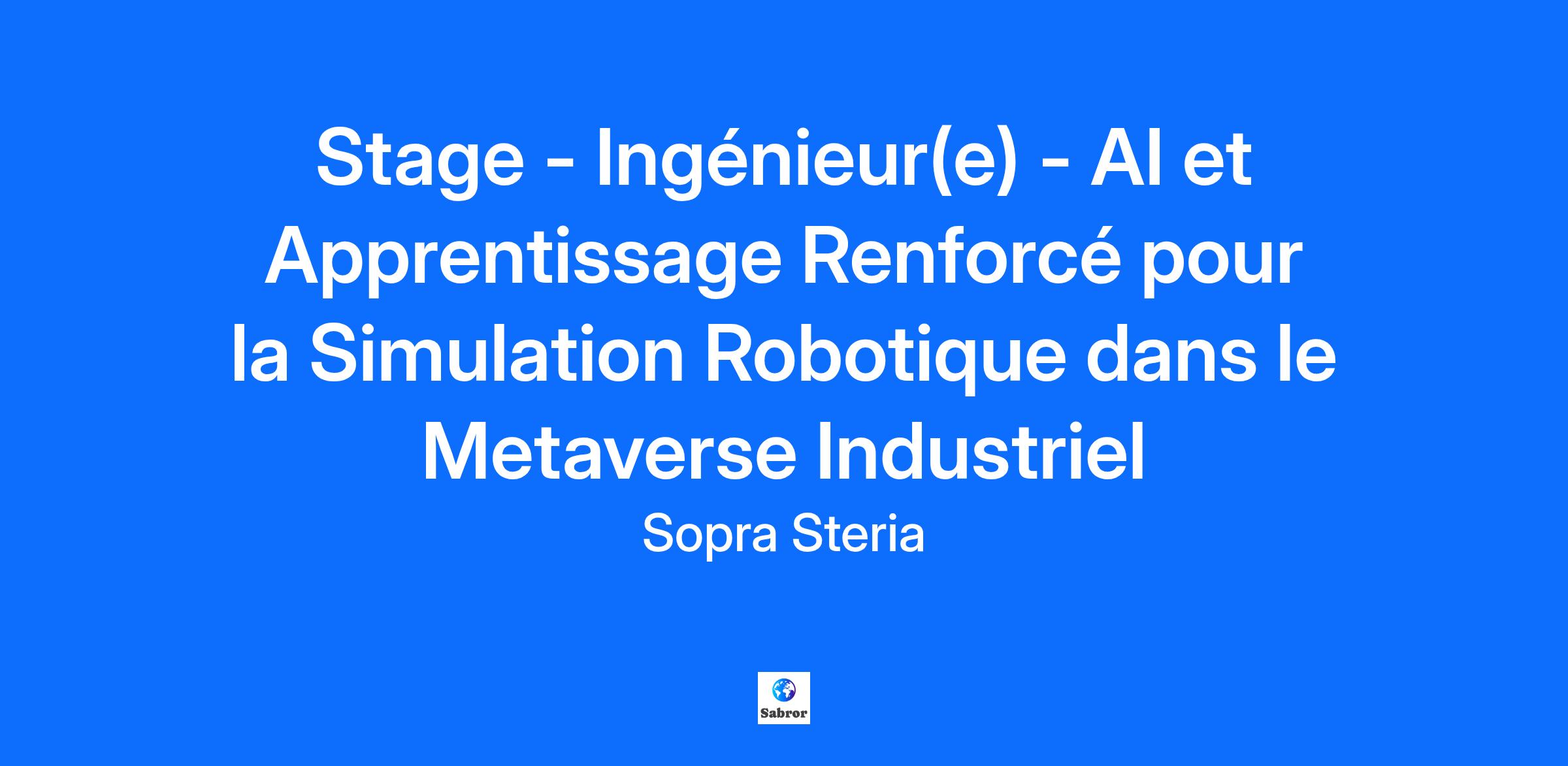 Description de l'entreprise Sopra Steria, acteur majeur de la Tech en Europe, avec 50 000 collaborateurs dans près de 30 pays, est reconnu pour ses activités de conseil, de services et solutions numériques. Il aide ses clients à mener leur transformation digitale et à obtenir des bénéfices concrets et durables. Le Groupe apporte une réponse globale aux enjeux de compétitivité des grandes entreprises et organisations, en combinant une connaissance approfondie des secteurs d’activité et des technologies à une approche collaborative. Sopra Steria place l’humain au cœur de son action et s’engage auprès de ses clients à tirer le meilleur parti du numérique pour construire un avenir positif. En 2024, le Groupe a réalisé un chiffre d’affaires de 5,8 milliards d’euros. The world is how we shape it* *Le monde est tel que nous le façonnons Description du poste Dans le cadre de son offre Smart Opérations, Sopra Steria développe un environnement technologique de Metaverse Industriel visant à optimiser grâce à la simulation et la collaboration la performance et la durabilité de nos industries. Vous intégrez le CTO Office du groupe et serez en relation avec les membres du Centre d’Expertise Digitale de Sopra Steria Next, experts sur ce domaine. L’équipe de spécialistes en modélisation et simulation en environnement 3D vous orientera tout au long de la durée du stage vous aidant à intégrer vos travaux au sein d’une plateforme de Metaverse Industriel. Votre rôle et vos missions : Objectif : Implémenter des solutions d'apprentissage renforcé pour améliorer l'efficience opérationnelle des robots, en se concentrant sur les gestes robotiques optimaux et la durabilité avec connexion et commande de robots réels par leur jumeau numérique. Compétences Requises : Connaissance en 3D et simulation, connaissance en robotique, IA, et apprentissage renforcé. Connaissance des environnements NVidia Omniverse, Python Activités : Travailler sur la capacité des jumeaux numériques à intervenir et produire des données pour l'apprentissage. Connecter et piloter les robots réels à partir des décisions prises par le jumeau numérique. Démontrer l'efficacité et l'économie d'énergie des optimisations robotiques. Collaborer avec des partenaires comme NVIDIA sur ces sujets. La Physical AI est la prochaine évolution de l’IA par sa capacité comprendre et interagir avec le monde réel. Son application dans l’environnement industriel, utilisant l’agrégation des capacités des jumeaux numériques, de la simulation physiquement réaliste, de l’IA et de la connectivité avec les robots réel permet d’envisager des gains significatifs sur l’efficience et la soutenabilité de nos industries. Une première phase d’investigation sur l’état de l’art : Simulation robotique et physique temps réel dans les jumeaux numériques Utilisation de scans d’environnements, de modèles 3D comportementaux de robots existants et génération de données synthétiques Captation de l’environnement physique et utilisation de modèles de raisonnement pour prise de décision dans le jumeau numérique avant application sur les robots physiques. Entrainement et optimisation des robot dans le virtuel à des fins de pilotage de robots réels. Une seconde phase d’implémentation de collaboration robotique entre le jumeau numérique et le monde réel : Re-Compilation/définition de différents cas d’usage métier Simulation robotique collaborative dans le virtuel Connectivité Metaverse Industriel / Robots physique Pilotage des robots par le jumeau numérique. Développement de dashboards pour montrer l'efficacité et l'économie d'énergie des optimisations robotiques. Mise en place d’un démonstrateur. Les apports du stage : Évoluer au sein d’un environnement applicatif diversifié Développer vos capacités personnelles (initiative, force de proposition) Avoir la possibilité de proposer des sujets d’étude Travailler sur un sujet à fort enjeux et forte visibilité client Qualifications Actuellement en cinquième année d’école d’Ingénieurs ou en Master 2 Informatique, ou équivalent, vous souhaitez développer votre expérience technique par le biais d’une stage formateur et évolutif. Un esprit d'analyse et de synthèse ainsi que la capacité à travailler en équipe sont nécessaires. La simulation, la 3D, la robotique et l’intelligence artificielle vous passionne. Vous parlez un anglais professionnel vous permettant d’interagir au quotidien avec des interlocuteurs internationaux. Vous êtes curieux(se) et dynamique, n'hésitez plus à venir vivre cette expérience avec nous ! Informations complémentaires Un accord télétravail pour télétravailler jusqu'à 2 jours par semaine selon vos missions. Un package avantages intéressants : des titres restaurants, accès aux subventions des activités sociales & culturelles. Plusieurs centaines de formations accessibles en toute autonomie depuis l'app mobile avec Sopra Steria Academy La possibilité de s'engager auprès de notre fondation ou de notre partenaire « Vendredi ». De très nombreuses opportunités en CDI peuvent vous attendre à l’issue du stage. Employeur inclusif et engagé, notre société œuvre chaque jour pour lutter contre toute forme de discrimination et favoriser un environnement de travail respectueux. C’est pourquoi, attachés à la mixité et à la diversité, nous encourageons toutes les candidatures et tous les profils. https://www.soprasteria.fr/nous-connaitre/nos-engagements