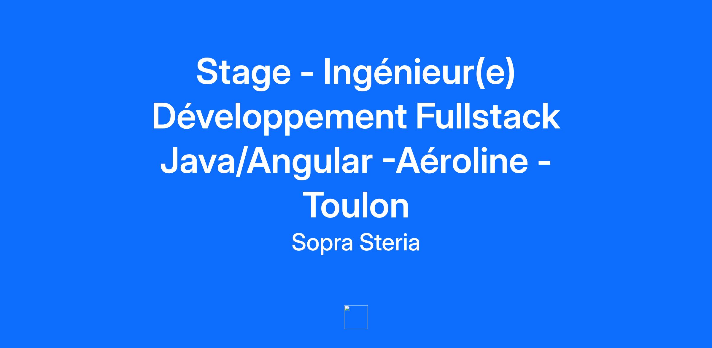 Description de l'entrepriseSopra Steria, acteur majeur de la Tech en Europe, avec 50 000 collaborateurs dans près de 30 pays, est reconnu pour ses activités de conseil, de services et solutions numériques. Il aide ses clients à mener leur transformation digitale et à obtenir des bénéfices concrets et durables. Le Groupe apporte une réponse globale aux enjeux de compétitivité des grandes entreprises et organisations, en combinant une connaissance approfondie des secteurs d’activité et des technologies à une approche collaborative. Sopra Steria place l’humain au cœur de son action et s’engage auprès de ses clients à tirer le meilleur parti du numérique pour construire un avenir positif. En 2024, le Groupe a réalisé un chiffre d’affaires de 5,8 milliards d’euros.The world is how we shape it* *Le monde est tel que nous le façonnonsDescription du posteVous rejoignez l’équipe en charge de la refonte d’un système informatique dédié à la gestion de l’activité aéronautique à bord du porte‐avions. Ce système critique permet une collaboration entre tous les acteurs mettant en œuvre la mission d’aviation du porte avion.Au sein d’une équipe pluridisciplinaire, vous êtes guidé(e) et formé(e) tout au long de votre stage.Vos missions :Vous contribuez à la refonte du système au travers des missions suivantes :Participation à la mise en place et au maintien de l’usine logicielleConception de solutions techniquesDéveloppement de briques logiciellesTest unitaire et fonctionnelsParticipation à l’amélioration continue du projetEnvironnement technique : Java, Angular Spring Boot, Docker, Postgre SQL, CI/CD, Kafka.Les apports du stage :Travailler sur des applications à forts enjeux pour nos clientsAcquérir des compétences techniques avec nos expertsDécouvrir et/ou appliquer les bonnes pratiques de développement dans un contexte professionnelIntervenir sur les différentes phases du développement logiciel (spécification / conception / développement / déploiement)S'approprier une méthodologie agileS'intégrer au sein d'une équipe d'environ 5/6 personnes et participer de manière active à la dynamique collective(Re)Découvrir le fonctionnement d'une des plus grandes ESN françaises (Entreprise de services du numérique) aux dimensions internationales.QualificationsAu-delà de votre expérience, de votre formation et de vos connaissances, votre personnalité et votre potentiel feront la différence ! Étudiant/e en école d'Ingénieurs, Master informatique ou formation équivalente, vous êtes à la recherche d'un stage pour une durée de 4 à 6 mois au sein d'un environnement dynamique et innovant qui allie développement et relations clients ?Venez rejoindre nos équipes !Informations complémentairesLes avantages à nous rejoindre :Un accord télétravail pour télétravailler jusqu’à 2 jours par semaine selon vos missions.Un package avantages intéressants : une mutuelle, un CSE, des titres restaurants, un accord d’intéressement, et des primes vacances.Plusieurs centaines de formations accessibles en toute autonomie depuis l’app mobile avec Sopra Steria AcademyLa possibilité de s'engager auprès de notre fondation ou de notre partenaire « Vendredi ».De très nombreuses opportunités en CDI peuvent vous attendre à l’issue du stage.Employeur inclusif et engagé, notre société œuvre chaque jour pour lutter contre toute forme de discrimination et favoriser un environnement de travail respectueux. C’est pourquoi, attachés à la mixité et à la diversité, nous encourageons toutes les candidatures et tous les profils.https://www.soprasteria.fr/nous-connaitre/nos-engagements