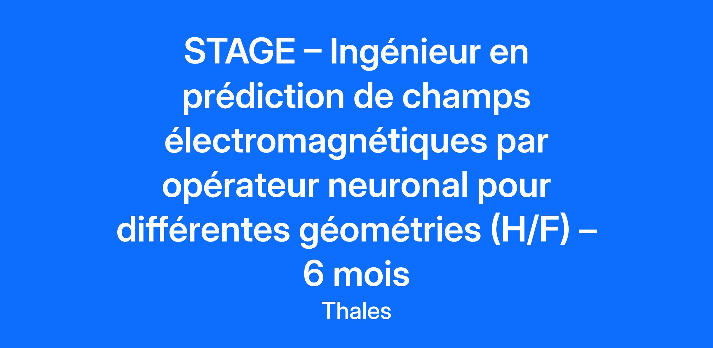 Lieu : Palaiseau, France Construisons ensemble un avenir de confiance Thales est un leader mondial des hautes technologies spécialisé dans trois secteurs d’activité : Défense & Sécurité, Aéronautique & Spatial, et Cyber & Digital. Il développe des produits et solutions qui contribuent à un monde plus sûr, plus respectueux de l’environnement et plus inclusif. Le Groupe investit près de 4 milliards d’euros par an en Recherche & Développement, notamment dans des domaines clés de l’innovation tels que l’IA, la cybersécurité, le quantique, les technologies du cloud et la 6G. Thales compte près de 81 000 collaborateurs dans 68 pays. Nos engagements, vos avantages Notre savoir-faire technologique Notre attention portée à l’équilibre des collaborateurs Un environnement inclusif et bienveillant Un engagement sociétal et environnemental reconnu (Thales Solidarity, indice CAC 40 ESG…) Votre quotidien Thales Research&Technology, notre centre de recherche dans les domaines matériels, et CortAIx Labs, notre centre de recherche en IA et digital ont pour mission de proposer des innovations de ruptures, de maintenir et d’accroitre l’avance technologique et d’en assurer la compétitivité pour le groupe. La conception de composants radio-fréquence nécessite de nombreuses simulations pour des géométries différentes. Ces simulations sont coûteuses en ressource et en temps. L'apprentissage automatique pour le calcul scientifique est une piste prometteuse pour accélérer les simulations. En particulier, les architectures d'opérateurs neuronaux permettent d'apprendre le lien entre deux espaces fonctionnels comme l'espace des géométries possibles d'un composant et l'espace des champs électromagnétiques correspondant à ces géométries. Les approches d'apprentissage informé par la physique permettent de réaliser cet apprentissage sans données de simulations en reposant uniquement sur les équations aux dérivées partielles. Dans ce contexte, vous devrez explorer la pertinence de ces approches pour apprendre le lien entre une géométrie et la solution aux équations de Maxwell correspondante avec des opérateurs neuronaux informés par la physique. Vous aurez pour missions : Se mettre à niveau sur la modélisation du comportement des composants radio-fréquence (équation de Maxwell harmoniques/ conditions limites spécifiques à l'électromagnétisme) S’approprier l’état de l’art sur les algorithmes d'opérateurs neuronaux prenant comme entrée des géométries S'approprier le code existant Comparer les résultats obtenus aux résultats de simulations classiques. Proposer des perspectives Présenter vos travaux en cours Rédiger un rapport de synthèse Votre profil STAGE – Ingénieur en prédiction de champs électromagnétiques par opérateur neuronal pour différentes géométries (H/F) – 6 mois Vous avez envie de découvrir le domaine de la recherche ? Vous avez pour ambition de réaliser votre stage au sein de Thales ? Vous souhaitez évoluer dans un milieu international ? Etudiant en Master, en Ecole d’ingénieur ou formation équivalente, vous avez des connaissances en : Linux, python ; Bases de machine learning, Équations aux dérivées partielles Résolutions numériques d'équations aux dérivées partielles Réseaux de neurones Utilisation avancée de la librairie Tensorflow, Pytorch Dérivation automatique Manipulation de maillage et de fichier de géométrie (format STEP) Anglais (niveau B2-C1 attendu) Rigueur, autonomie et curiosité sont des atouts que l'on vous reconnait ? Alors ce stage est fait pour vous ! Tous nos stages sont conventionnés et soumis à une gratification dont le montant est déterminé selon votre niveau d’études. Thales, entreprise Handi-Engagée, reconnait tous les talents. La diversité est notre meilleur atout. Postulez et rejoignez nous ! Interested in finding out more about Thales and why you should join us? Say HI* to new career opportunities.