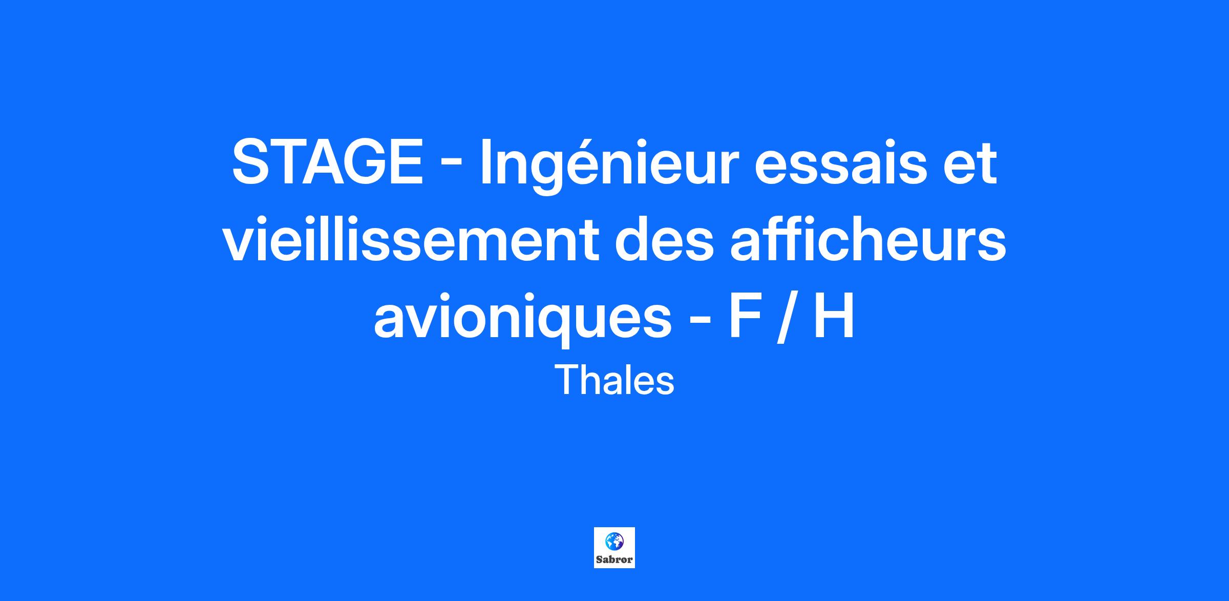 Lieu : Moirans, France Construisons ensemble un avenir de confiance Thales est un leader mondial des hautes technologies spécialisé dans trois secteurs d’activité : Défense & Sécurité, Aéronautique & Spatial, et Cyber & Digital. Il développe des produits et solutions qui contribuent à un monde plus sûr, plus respectueux de l’environnement et plus inclusif. Le Groupe investit près de 4 milliards d’euros par an en Recherche & Développement, notamment dans des domaines clés de l’innovation tels que l’IA, la cybersécurité, le quantique, les technologies du cloud et la 6G. Thales compte près de 81 000 collaborateurs dans 68 pays. Nos engagements, vos avantages Notre savoir-faire technologique Notre attention portée à l’équilibre des collaborateurs Un environnement inclusif et bienveillant Un engagement sociétal et environnemental reconnu (Thales Solidarity, indice CAC 40 ESG…) Votre quotidien Venez découvrir le site de Moirans, Un site à taille humaine avec un très bel environnement. Venir travailler à Moirans c'est : une ambiance conviviale et chaleureuse, des projets intéressants en ingénierie, les montagnes à proximité. CONTEXTE : La Division Avionique conçoit des équipements et fonctions embarqués, ainsi que des solutions de simulation et d'entraînement pour aéronefs civils et militaires. Vous serez intégré au Centre de Compétences Hardware et Tests Aéronautiques, au sein de la communauté responsable des projets Displays, basée à Moirans. Cette communauté définit, conçoit et vérifie les afficheurs avioniques destinés aux cockpits. VOUS AVEZ POUR MISSIONS : Étudier le vieillissement des afficheurs pour applications civiles et militaires. Concevoir et réaliser des essais pour quantifier la dégradation optique et mécanique sous sollicitations représentatives. Analyser les résultats expérimentaux et déterminer les lois de vieillissement (fatigue) et les modèles statistiques associés. Développer et maintenir des outils de traitement des données et d'automatisation des essais (Matlab ou Scilab). Définir les plans d'essais et rédiger les rapports de qualification. Collaborer avec les équipes matériaux et mécaniques pour interpréter les phénomènes observés. Se former à la méthodologie d'essais et bénéficier d'un accompagnement technique. VOTRE PROFIL : Vous avez l’ambition de développer de nouvelles compétences au sein d'un grand groupe international ? Vous avez envie de découvrir un métier riche et varié ? Analyse, autonomie, proactivité et travail en équipe sont des atouts que l’on vous reconnaît ? Vous préparez un BAC+5 en électronique ou aéronautique et vous recherchez un stage de fin d'études ? Vous maitrisez : - La programmation (Matlab, Scilab, Python) ; - Appétence pour le traitement de données ; - IHM (Interface Homme-Machine) ; - Connaissance mécanique des matériaux ; - Connaissance en calcul de structure ; - Statistiques. Alors ce poste est fait pour vous ! Nous sommes toujours en phase ? Oui ? Alors, n’attendez plus, postulez ! Tous nos stages sont conventionnés et soumis à une gratification dont le montant est déterminé selon votre niveau d’études. Thales, entreprise Handi-Engagée, reconnait tous les talents. La diversité est notre meilleur atout. Postulez et rejoignez nous ! Interested in finding out more about Thales and why you should join us? Say HI* to new career opportunities.