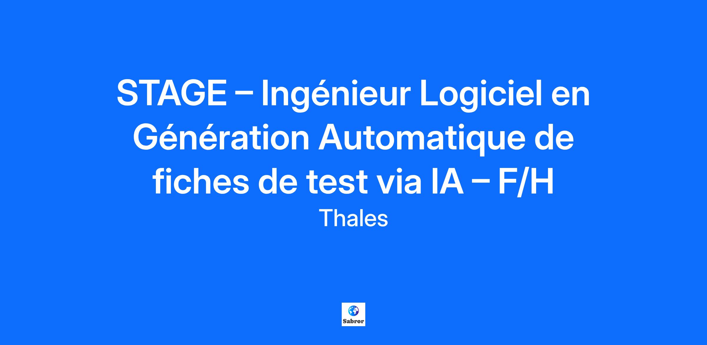Lieu : Cholet 2, France Construisons ensemble un avenir de confiance Thales est un leader mondial des hautes technologies spécialisé dans trois secteurs d’activité : Défense & Sécurité, Aéronautique & Spatial, et Cyber & Digital. Il développe des produits et solutions qui contribuent à un monde plus sûr, plus respectueux de l’environnement et plus inclusif. Le Groupe investit près de 4 milliards d’euros par an en Recherche & Développement, notamment dans des domaines clés de l’innovation tels que l’IA, la cybersécurité, le quantique, les technologies du cloud et la 6G. Thales compte près de 81 000 collaborateurs dans 68 pays. Nos engagements, vos avantages Notre savoir-faire technologique Notre attention portée à l’équilibre des collaborateurs Un environnement inclusif et bienveillant Un engagement sociétal et environnemental reconnu (Thales Solidarity, indice CAC 40 ESG…) Votre quotidien Stage de 6 mois situé à Cholet (49) Au sein du domaine RCP (Radio Communication Product), vous intégrez le service de développement logiciels LAS (Logiciels Applicatifs et Solutions). Ce service est spécialisé dans le développement de solutions logiciels applicatives et embarquées pour faciliter l’exploitation des radios tactiques par nos clients. En tant que stagiaire, vous faites partie intégrante de l’équipe TMS et êtes en lien direct avec le responsable de projet et l'architecte logiciel. Vous travaillez sur la suite logicielle TMS (Terminal Multi Services) qui permet d'exploiter les capacités des radios au travers d'un logiciel sur PC et d'offrir des services avancés (mail, chat, ...). Vos missions : Analyser et rechercher des solutions de spécialisation d’un modèle AI pour la génération de tests automatique IHM (via l’outil Squish) Développer des scripts Python pour l’entrainement du modèle Valider des résultats des fiches générées avec ce modèle Votre profil : En formation Bac +5, vous recherchez un stage d’une durée de 6 mois afin de travailler sur un projet innovant ? Vous êtes à l'aise en développement Java et Python? Dans l'idéal vous avez des connaissances du framework JavaFX, RxJava, et de l’entrainement de modèle AI ? Vous maîtrisez la gestion de versions sous Git? Votre autonomie, votre force de proposition, votre communication et votre capacité à synthétiser l'information sont des atouts que l'on vous reconnait? Mot de l'équipe : En nous rejoignant, vous serez formé sur nos processus de développement Agile, à la programmation d’IHM sous Java/JavaFX et à l’entrainement de modèles AI. Vous serez encadré par notre équipe durant tout le projet pour vous aider à le mener à bien. Tous nos stages sont conventionnés et soumis à une gratification dont le montant est déterminé selon votre niveau d’études. Thales, entreprise Handi-Engagée, reconnait tous les talents. La diversité est notre meilleur atout. Postulez et rejoignez nous ! Interested in a CAREER IN THE RAIL transportation sector? To see our jobs in the railway market, please visit our dedicated site here