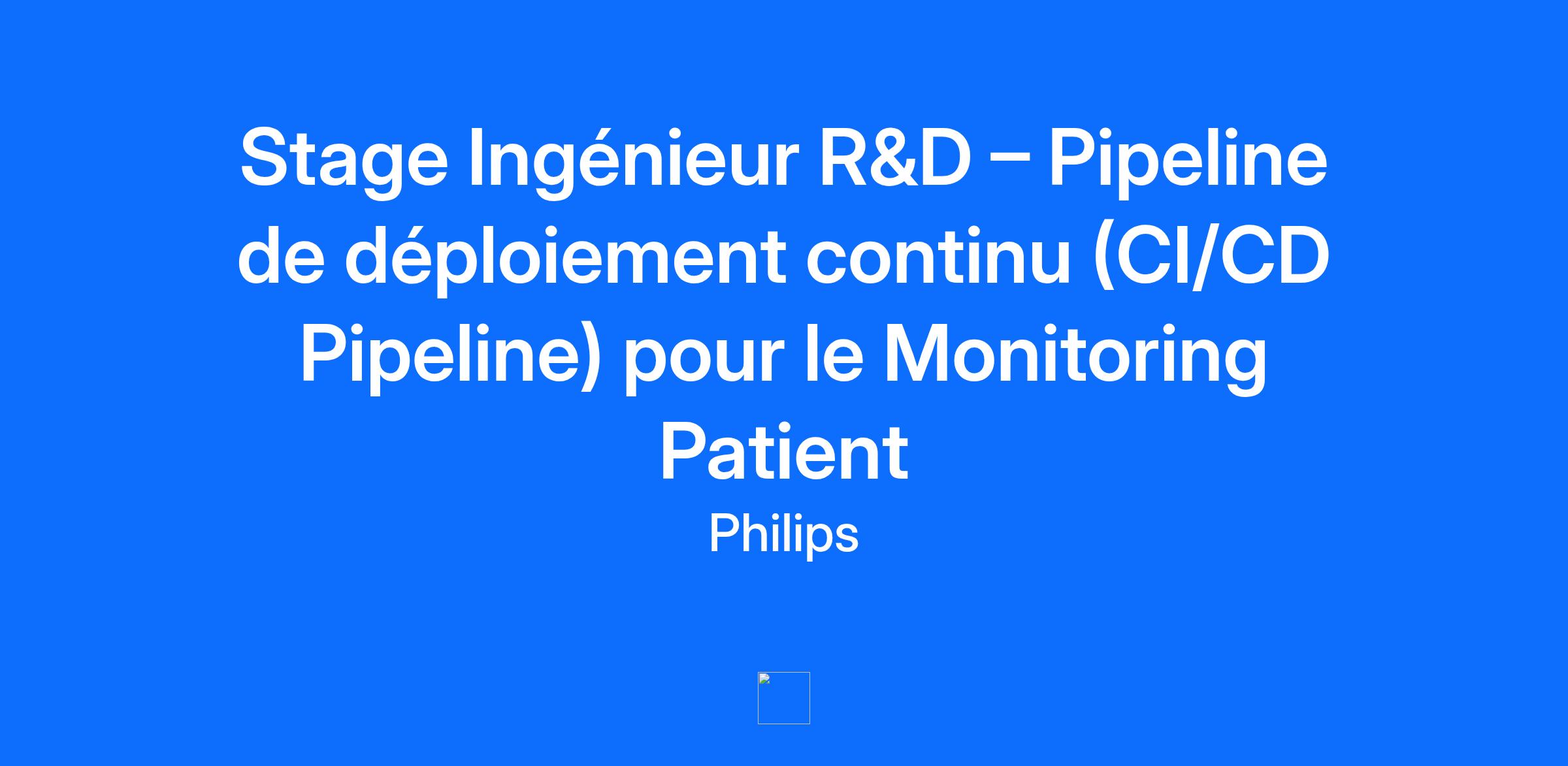 Job Title Stage Ingénieur R&D – Pipeline de déploiement continu (CI/CD Pipeline) pour le Monitoring Patient Job Description Job Posting Description Stage Ingénieur R&D – Pipeline de déploiement continu (CI/CD Pipeline) pour le Monitoring Patient Ce poste vous donne la possibilité De travailler au sein d’une équipe de R&D et de découvrir les étapes du développement de nouveaux produits en contribuant aux étapes d’intégration et de vérification des solutions. Vous aiderez à l’automatisation du déploiement, de l’installation et de la configuration de nos produits de suivi de patients à distance, explorant notamment l’Infra as Code et d’autre solutions de scripting et d’automatisation. Vous avez pour principales missions de Prendre en main les environnement cloud Azure et/ou Amazon Web Services utilisés, Aider à définir la ou les architectures de déploiement continu, en interface avec les équipes de développement et de vérification, Mettre en place la ou les pipelines de déploiement continu dans le cloud, en intégrant, si possible, l’automatisation de tests, Rédiger un guide utilisateur permettant l’amélioration et la réutilisation future de votre travail Vous faites partie de L’équipe Systems Engineering, au sein de la R&D de « Clinical Surveillance & Insights ». Cette équipe intervient dès les premiers concepts de futurs produits jusqu’à la sortie de solution software pour le suivi de patients hospitalier. Vos atouts pour réussir à ce poste Vous êtes en dernière année d'école d'ingénieur et êtes spécialisé(e) en informatique, Vous recherchez un stage pour le mois de Janvier 2026 Vous êtes très à l'aise en développement, Vous maitrisez Python. Vous maitrisez également GitHub, Azure et AWS (ou des équivalents), Vous parlez un anglais courant à l'oral comme à l'écrit. At Philips, we believe that every human matters. As a global health-tech leader, we focus on improving people’s health and wellbeing through meaningful innovation. The people who work here share our passion and are motivated to bring this purpose to life. For more than 130 years, we have been creating technologies and innovations that improve people's lives and support healthcare practitioners. Headquartered in the Netherlands and operating in more than 100 countries globally, we focus our advanced technology and deep clinical and consumer insights on Precision Diagnosis, Image Guided Therapy, Enterprise Informatics, Monitoring/ Connected Care, Sleep & Respiratory Care and Personal Health. Together, we deliver better care for more people because we believe that every human matters. That's why we're taking steps to create an environment where we acknowledge and embrace our differences and uniqueness and listen to and value each other's views. When people feel cared for and listened to, they bring their best qualities to work, leading to better collaboration, communication, innovation and success. It is the policy of Philips to provide equal employment and advancement opportunities to all qualified employees and applicants for employment without regard to race, color, religion, sex, pregnancy/childbirth or related medical conditions, age, ethnic or national origin, sexual orientation, gender identity or expression, physical or mental disability, genetic information, citizenship status, veteran or military status, marital or domestic partner status or any other characteristic protected by law. As an equal opportunity employer, Philips is committed to fostering a culture where all are treated with respect and professionalism. To ensure reasonable accommodations for individuals protected by Section 503 of the Rehabilitation Act of 1973, the Vietnam Veterans' Readjustment Act of 1974 and Title I of the Americans with Disabilities Act of 1990, applicants that require accommodation in the job application process may contact 888-367-7223, option 5, for assistance. Philips is an Equal Employment and Opportunity Employer including Disability/Vets and maintains a drug-free workplace. Know Your Rights