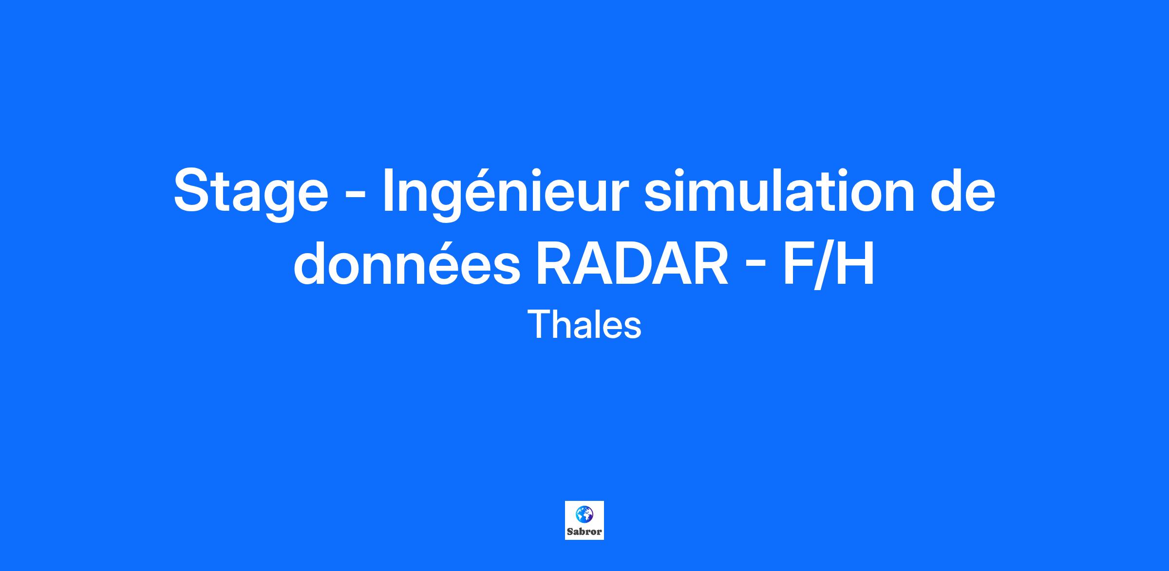 Lieu : Elancourt, France Construisons ensemble un avenir de confiance Thales est un leader mondial des hautes technologies spécialisé dans trois secteurs d’activité : Défense & Sécurité, Aéronautique & Spatial, et Cyber & Digital. Il développe des produits et solutions qui contribuent à un monde plus sûr, plus respectueux de l’environnement et plus inclusif. Le Groupe investit près de 4 milliards d’euros par an en Recherche & Développement, notamment dans des domaines clés de l’innovation tels que l’IA, la cybersécurité, le quantique, les technologies du cloud et la 6G. Thales compte près de 81 000 collaborateurs dans 68 pays. Nos engagements, vos avantages Notre savoir-faire technologique Notre attention portée à l’équilibre des collaborateurs Un environnement inclusif et bienveillant Un engagement sociétal et environnemental reconnu (Thales Solidarity, indice CAC 40 ESG…) Votre quotidien Au coeur de Saint Quentin en Yvelines, le site d'Elancourt est un des centres d’excellence technologique Thales les plus importants. La diversité et la technicité des systèmes et équipements mobilisent des savoir-faire dans plus de 80 métiers dans les solutions de défense, de sécurité de haute technologie et de services numériques. Vous intégrerez le service Traitement du secteur Électronique de Missile, dédié à la conception des traitements pour les futurs RADAR. Vous rejoindrez l’équipe Traitement du Signal, spécialisée dans les algorithmes d’imagerie RSO/SAR. Cette équipe, composée d’une dizaine de personnes, collabore étroitement avec les experts hardware et IA. Pour pallier le manque de données réelles, elle a conçu un générateur d’images SAR synthétiques rapide, dont des améliorations sont attendues pour renforcer sa représentativité et sa performance. Vos missions : Les travaux du stage portent sur le développement d’un générateur rapide d'images synthétiques SAR. Le Stage devra permettre d’améliorer le générateur suivant trois axes : Les objectifs du stage sont les suivants : Améliorer la représentativité de l'image finale afin qu'elle corresponde davantage à nos systèmes matériels et aux environnements des cibles Accroître la rapidité pour permettre la génération massive de données en un temps limité Ajouter de nouvelles fonctionnalités pour répondre à des applications plus vastes Le déroulement attendu du stage est le suivant : Formation à l'imagerie SAR Prise en main du simulateur existant Amélioration du code existant. Selon le profil du candidat, différents axes d'amélioration sont envisageables (rapidité d’exécution, ajout de fonctionnalités, prise en considération des spécificités hardware dans la représentativité, etc.) Tests et comparaison avec des données réelles Votre profil : Vous êtes en formation Bac+5 avec une spécialité en traitement du signal Vous recherchez un stage de 6 mois Vous suivez une formation en traitement du signal Vous avez une bonne maîtrise de l’anglais écrit Vous maîtrisez des langages de programmation tels que Matlab et Python Vous avez une curiosité scientifique et un intérêt pour les environnements pluridisciplinaires Vous avez des connaissances en RADAR, en imagerie SAR et en électronique RF. Tous nos stages sont conventionnés et soumis à une gratification dont le montant est déterminé selon votre niveau d’études. Thales, entreprise Handi-Engagée, reconnait tous les talents. La diversité est notre meilleur atout. Postulez et rejoignez nous !