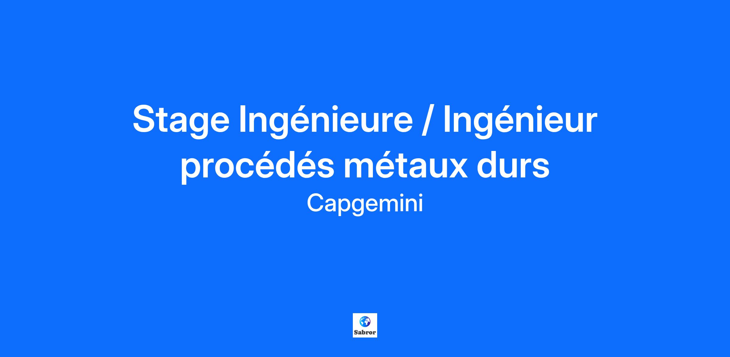 Capgemini Engineering, leader mondial des services d'ingénierie , rassemble des équipes d'ingénieurs , de scientifiques et d'architectes pour aider les entreprises les plus innovantes dans le monde à libérer leur potentiel . Des voitures autonomes aux robots qui sauvent des vies, nos experts en technologies digitales et logicielles sortent des sentiers battus en fournissant des services uniques de R&D et d'ingénierie dans tous les secteurs d'activité . Rejoignez nous pour une carrière pleine d'opportunités , où vous pouvez faire la différence et où aucun jour ne se ressemble Vos missions : En tant que stagiaire Ingénieure / Ingénieur Capitalisation procédés métaux durs à Toulouse, vous intégrerez nos équipes Manufacturing & Process Engineering où vous évoluerez au sein d'une équipe multi-métiers et dynamique qui répond à des problématiques complexes au sein de projets innovants dans le secteur aéronautique. Vos responsabilités seront les suivantess : Mise en place d’une méthodologie de capitalisation des connaissances Identification des retours d’expérience Capitalisation par typologie de procédés Le poste pouvant nécessiter d'accéder à des informations relevant du secret de la défense nationale, la personne retenue pourra faire l'objet d'une procédure d’habilitation, conformément aux dispositions des articles R.2311-1 et suivants du Code de la défense et de l’IGI 1300 SGDSN/PSE du 09 août 2021Votre profil : Vous êtes étudiant(e) en Master ou en École d'Ingénieur avec une spécialisation en Mécanique : Connaissance des procédés de fabrications, idéalement métaux durs Leadership : Pilotage de projet Excellentes capacités analytiques et organisationnelles Aisance relationnelle et aptitude à travailler en équipe Métiers et technique : Knowledge Management Anglais professionnel (écrit et oral) 3 raisons de nous rejoindre : Qualité de vie au travail : accord de télétravail en France et à l’international, accord sur l’égalité professionnelle, la parentalité, l’équilibre des temps et la mobilité durable. Apprentissage en continu : certifications et formations en libre accès, accompagnement sur mesure avec votre career manager, parcours d’intégration sur 9 mois. Avantages groupe & CSE : plan actionnariat, activités à tarifs préférentiels, remboursement partiel vacances, remboursement de votre abonnement sportif ou culturel.Nos engagements et priorités : Le groupe Capgemini encourage une culture inclusive dans un cadre multiculturel et handi-accueillant. En nous rejoignant, vous intégrez un collectif qui valorise la diversité, développe le potentiel de ses talents, s’engage dans des initiatives solidaires avec ses partenaires, et se mobilise pour réduire son impact environnemental sur tous ses sites et auprès de ses clients. #LI-UC1 Verbal CommunicationLeader mondial des services d’ingénierie et de R&D, Capgemini Engineering met en oeuvre une connaissance sectorielle approfondie avec la maîtrise des dernières technologies digitales et logicielles pour accompagner la convergence des mondes physique et numérique. Avec plus de 55 000 ingénieurs et scientifiques dans plus de 30 pays, nous aidons nos clients à accélérer leur transformation vers l'Intelligent Industry. Get The Future You Want* |www.capgemini.com/fr fr *Capgemini, le futur que vous voulez