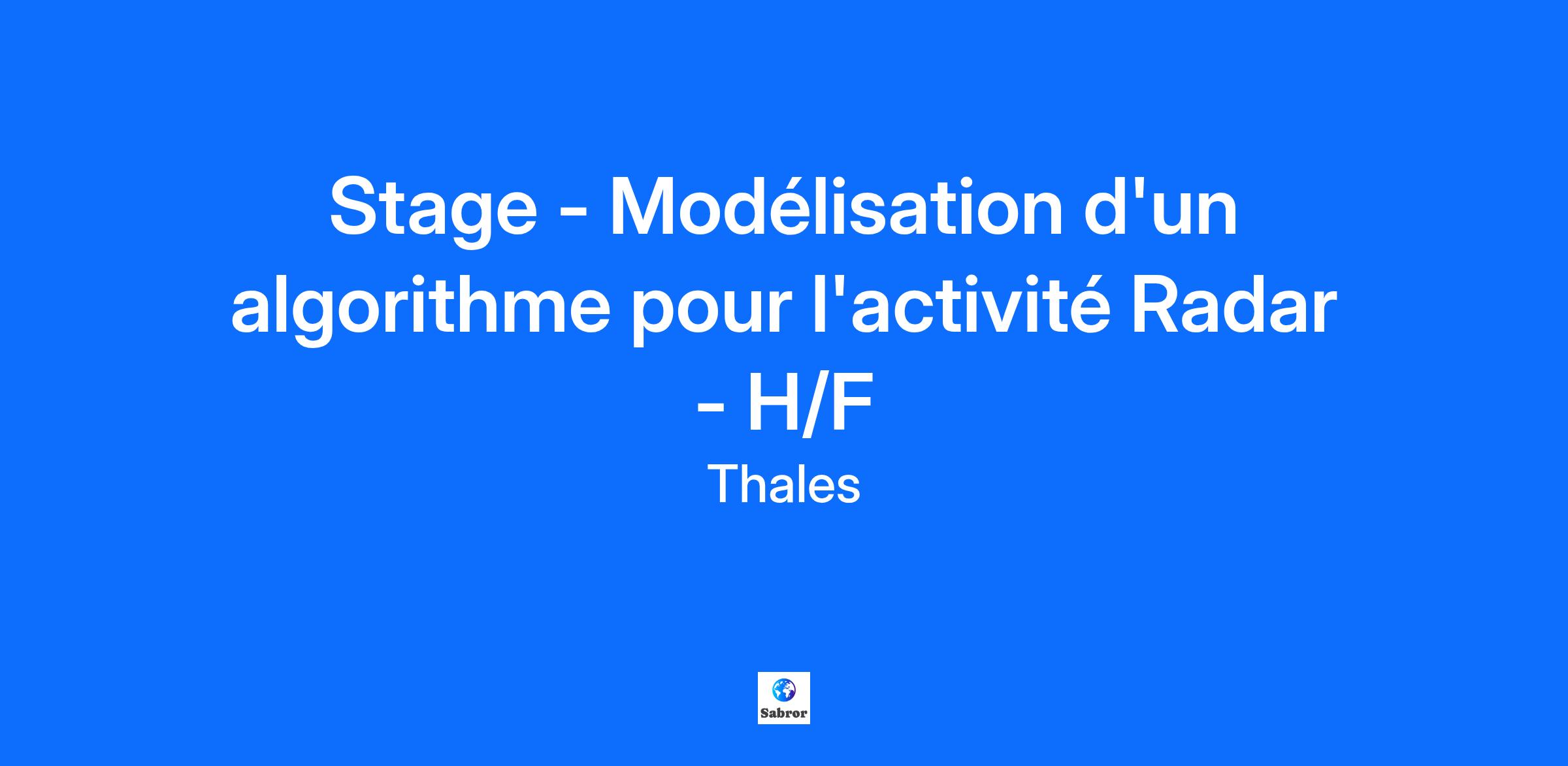 Lieu : Limours, France Construisons ensemble un avenir de confiance Thales est un leader mondial des hautes technologies spécialisé dans trois secteurs d’activité : Défense & Sécurité, Aéronautique & Spatial, et Cyber & Digital. Il développe des produits et solutions qui contribuent à un monde plus sûr, plus respectueux de l’environnement et plus inclusif. Le Groupe investit près de 4 milliards d’euros par an en Recherche & Développement, notamment dans des domaines clés de l’innovation tels que l’IA, la cybersécurité, le quantique, les technologies du cloud et la 6G. Thales compte près de 81 000 collaborateurs dans 68 pays. Nos engagements, vos avantages Notre savoir-faire technologique Notre attention portée à l’équilibre des collaborateurs Un environnement inclusif et bienveillant Un engagement sociétal et environnemental reconnu (Thales Solidarity, indice CAC 40 ESG…) Votre quotidien Situé à 20mn du Pôle technologique de Paris-Saclay, le site est l’un des plus grands centres d’excellence radars de surface. Nous contribuons à développer, concevoir, intégrer et tester des radars de surveillance aériennes dédiés à la détection et l’identification de cibles. Le service d’ingénierie système souhaite modéliser un algorithme en cours de développement de calcul du point d'impact/point de lancement (IP/LP) de cible détectée par un radar. Dans le cadre du développement d'un futur radar, vous serez intégré à l'équipe d'ingénierie système afin de participer à la définition des foncitions du produit : du prototypage d'algorithme à sa spécification. Vous serez au sein d’une équipe dynamique d'ingénieurs spécialisés dans la conception des algorithmes de traitement radar et moteurs dans l'innovation. Vous serez accompagné par nos experts ingénierie système et intégré dans l'équipe responsable du développement du radar exploitant le fruit de votre travail. En nous rejoignant, vous vous verrez confier les missions suivantes: IP/LP : - Proposer un algorithme de calcul d'IP/LP, - Assurer sa modélisation sous forme de blocs fonctionnels CAPELLA - Rédiger le document de description associé, ce document servira in fine à d'autres équipes pour l'implémentation sur calculateur embarqué. Connexion à une base de donnée satellitaire : - Comment mettre à jour la base de données ? À quelle fréquence ? Quelle qualité de base de donnée ? Quelles sont les bases de données existantes… Classification par IA : - En s'inspirant de ce qui a été fait par d'autres équipes au sein de l'ingénierie, proposer une feuille de route permettant d'intégrer l'IA dans la classification du radar. Votre profil Vous êtes en école d’ingénieur dans le domaine de l’informatique et/ou de l’électronique des systèmes embarqués et vous recherchez un stage de fin d'étude (5 mois mini) à partir de février 2026. Vous avez des connaissances en : Ingénierie des systèmes Traitement de données Des connaissances en spécification système Des connaissances en Python et Matlab Vous êtes organisé, rigoureux, autonome et vous aimez travailler en équipe. Vous faites preuve de motivation et de curiosité. Alors ce poste est fait pour vous ! Tous nos stages sont conventionnés et soumis à une gratification dont le montant est déterminé selon votre niveau d’études. Thales, entreprise Handi-Engagée, reconnait tous les talents. La diversité est notre meilleur atout. Postulez et rejoignez nous !
