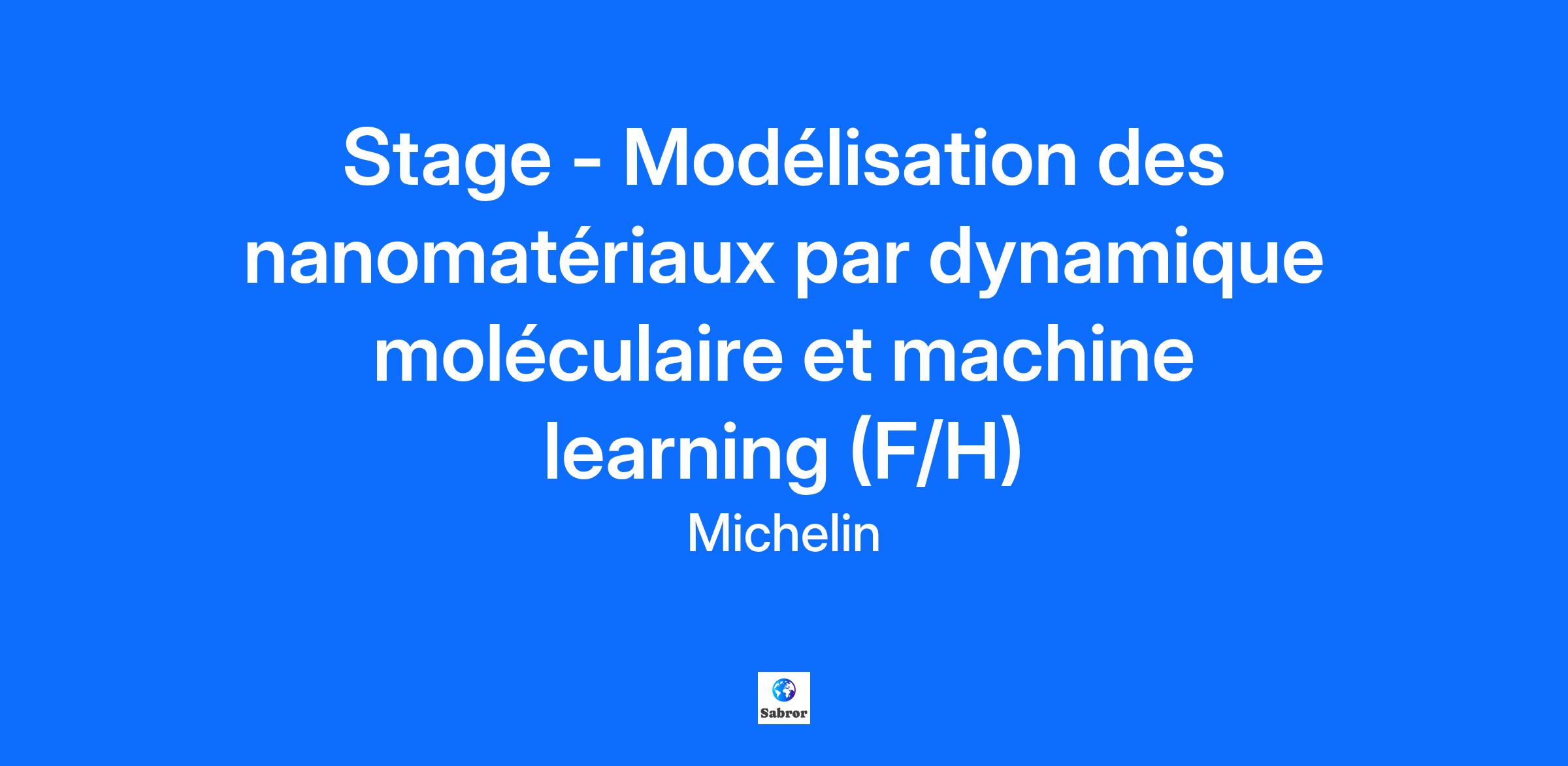Stage - Modélisation des nanomatériaux par dynamique moléculaire et machine learning (F/H) - - - - - - - - - - - - Sujet de stage : Modélisation des interactions complexes entre les nanoparticules par dynamique moléculaire et machine learning Type de contrat : stage conventionné de fin d’études 6 mois maximum Niveau d’études : BAC+4/+5 avec un profil physique/chimie/ingénieur 📅 Date de début : à compter de mars 2026 📍 Lieu de travail : R&D Michelin site de Ladoux Contexte L’Entreprise Michelin, innovateur majeur dans le domaine de la recherche et du développement industriel, s'est engagé depuis longtemps dans la conception de pneus plus durables, plus performants et plus neutres en carbone. La résistance à l'usure, qui détermine la longévité du pneu, et la résistance au roulement réduite, qui limite la consommation de carburant et donc les émissions de CO2, sont souvent les deux performances les plus recherchées dans les produits mis au point. Bien que les simulations de matériaux puissent être utilisées pour orienter le développement de nouveaux matériaux nanocomposites prometteurs (composés d'une matrice élastomère renforcée par des charges nanométriques, telles que la silice ou le noir de carbone) améliorant les deux dernières performances, les méthodes employées sont complexes et nécessitent le transfert d'informations à plusieurs échelles. Dans ce contexte, la compréhension des interactions entre la charge et le polymère et leur impact sur les propriétés d'un matériau nanocomposite constitue un enjeu scientifique et technique important. Mission L'objectif du stage est d'étudier les interactions entre les nanoparticules greffées par des polymères à l'échelle moléculaire, afin de pouvoir les utiliser à plus grande échelle dans des simulations de matériaux réalistes et de leurs propriétés rhéologiques. Les simulations seront réalisées à l'aide de la dynamique moléculaire en utilisant un modèle qui prend en compte explicitement les enchevêtrements entre les polymères. Des approches de machine learning seront ensuite appliquées pour construire des modèles réduits des interactions entre ces nanoparticules à partir d'un espace de données de simulations générées. En changeant la structure du matériau, les études de sensibilité seront effectuées pour répondre aux questions suivantes : Comment la différence de taille des objets affecte-t-elle leur interaction ? Comment l'environnement local autour de deux nanoparticules, en particulier la présence d'une troisième particule à proximité immédiate, affecte-t-il l'interaction entre elles ? Quel est l'impact de la structure des nanoparticules sur l'interaction multi-corps entre plusieurs nanoparticules ? Les résultats de cette étude seront utilisés pour mieux comprendre les interactions complexes qui se produisent entre les nanoparticules intégrées dans une matrice polymère et de construire des modèles robustes et transférables afin d'étudier les propriétés des matériaux à une échelle beaucoup plus grande. Livrables Un rapport d’avancement capitalisant les travaux effectués sera produit Une présentation du travail à l’équipe d’accueil sera effectuée Profil recherché Connaissance de la physique des polymères Prédisposition à la modélisation numérique Connaissances de base en programmation Curiosité scientifique, autonomie au travail Apports pour l'étudiant(e) Découverte de l'environnement de la recherche en industrie Acquisition de connaissances théoriques en physique des polymères et des nanocomposites Acquérir des connaissances en modélisation numérique Connaissance de l’entreprise Processus de recrutement en 2 étapes : Premier entretien en visioconférence (45 min) pour mieux vous connaître et discuter de vos aspirations. Deuxième entretien avec l’équipe (manager et/ou tuteur) pour évaluer vos compétences. En poste, votre tuteur/tutrice vous accompagnera tout au long de votre stage afin de développer votre savoir-faire et savoir-être. Votre tuteur/tutrice vous proposera, si besoin, des formations complémentaires en adéquation avec vos missions. Vous percevrez une gratification de stage mensuelle en fonction de votre niveau d’études. 📢 Vous êtes intéressé(e) par cette opportunité, alors c’est le moment de postuler ! - - - - - - - - - - - - Michelin entreprise engagée dans la mobilité durable et reconnue pour ses actions en faveur de l’expérience employé ! Une note de 99/100 à l’index de l’égalité femmes-hommes Entreprise « Handi accueillante », avec un réseau de référents et ambassadeurs Handicap pour vous accompagner 83,5% de taux d’engagement de nos employés 94,6% des stagiaires et alternants nous recommandent, label "Happy Trainees" depuis 9 années consécutives Classé parmi les groupes du CAC 40 les plus engagés selon les Bac+5 à l’index RSE Universum 2023 Parmi les 100 entreprises les plus attractives pour les étudiants et actifs BAC+2/3 au classement Universum 2023 N°1 des entreprises de plus de 500 stagiaires et alternants qui rémunèrent le mieux au Classement HappyTrainees® Rémunération 2023 Dans le Top 10 des meilleurs employeurs en France au classement Glassdoor 2023 Dans le top 3 des entreprises du secteur « Automobile / Equipementier » en matière d’attractivité employeur à l’édition 2024 du Palmarès @EPOKA @GROUPE IFOP @Occurrence Pour en savoir plus sur le Groupe :https://recrutement.michelin.fr - - - - - - - - - - - - Michelin, the leading tire company, is dedicated to sustainably improving the mobility of goods and people by manufacturing and marketing tires and services for every type of vehicle, including airplanes, automobiles, bicycles/motorcycles, earthmovers, farm equipment and trucks. It also offers digital mobility support services and publishes travel guides, hotel and restaurant guides, maps and road atlases. Headquarter