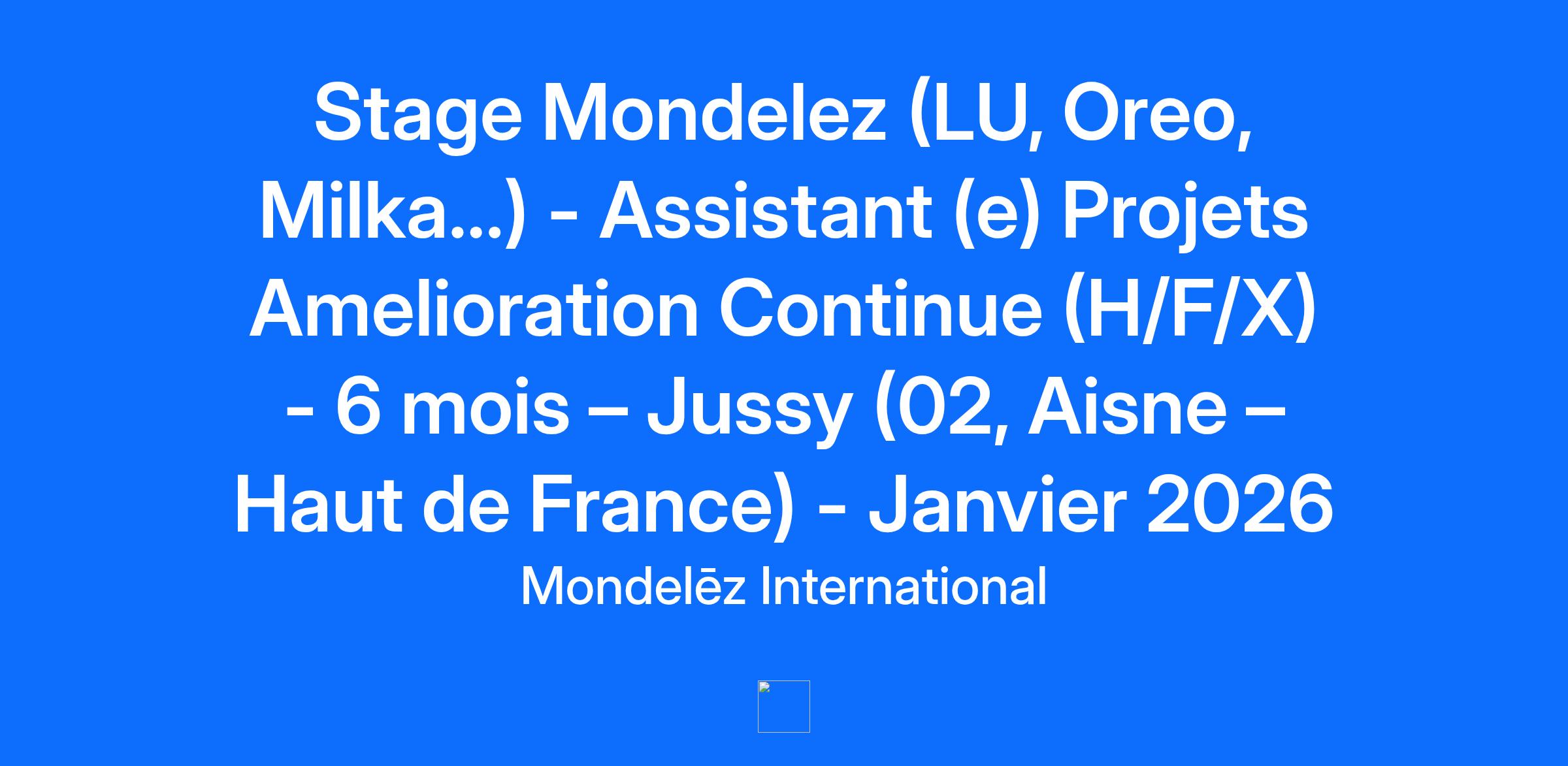 Job Description Are You Ready to Make It Happen at Mondelēz International? Join our Mission to Lead the Future of Snacking. Make It Matter. Qui sommes-nous ? Mondelēz International, un des leaders mondiaux du chocolat et du biscuit. Nous sommes présents dans 165 pays et nous générons des revenus annuels nets de 34 milliards de dollars. Même si vous ne connaissez pas encore très bien notre nom, vous avez certainement entendu parler de nos marques leaders Milka, Prince, Oreo et LU. Nous imaginons et développons les en-cas préférés du monde entier et nous sommes passionnés par la création de délicieux moments de joie pour tous. Pourquoi « Mondelez » ? C’est notre manière de dire un « Monde de dél Qu'est-ce qui fait de Mondelēz International un lieu de travail aussi spécial ? Beaucoup de choses ! Des marques emblématiques, le caractère mondial de l’entreprise, l'esprit d’innovation en continu et des opportunités de croissance sans limite. C’est aussi la chance, chaque jour, de faire sourire les gens ! Nous sommes l’un des leaders mondiaux du chocolat et des biscuits grâce à nos marques à fort capital, comme Côte d’Or, Milka, Toblerone, LU, Oreo. Rejoindre notre équipe sera pour vous, une belle opportunité ! Comme un(e) Assistant(e) Projets Amelioration Continue au Jussy, vous serez amené(e) à travailler sur les missions suivantes : Participation in Factory Road Map construction (Master Plan Usine) continues improvement projects : organizational improvements: Value Streem mapping and proposal of the action plan for the critical production activities ex: shifts changes; tasks allocation on different process .. implementation of the change management for products modifications (ingredients, packaging, new products..) “zero losses” projects in the context of the site preparation to IL6S first phase readiness Vous pourriez être la personne idéale que nous recherchons si... Profil agroalimentaire et administratif Niveau Bac +2 Connaissances en bureautique Organisé, rigoureux et esprit d’équipe Niveau Englais : B 1 minimum Ce que nous avons à vous offrir… Nos offres Early Careers offrent toute une variété d’expériences challengeantes et développantes. Vous pouvez vous attendre à réaliser des projets stimulants, à côtoyer des experts dans leur domaine et à apprendre en pratiquant auprès d’eux, et bien plus encore. C’est également l’opportunité de rejoindre notre vivier de talents Mondelez : la majorité de nos postes junior sont pourvus par nos anciens stagiaires ! Lieu : Jussy Type de contrat : Stage Démarrage : Janvier 2026 Durée : 6 mois Gratification : Selon profil Nous sommes certifiés Happy Trainees d’après les avis de nos stagiaires Western Europe. Tu veux savoir pourquoi ? Postule ! Relocation Support Available? No Relocation support available Business Unit Summary We value our talented employees, and whenever possible strive to help one of our associates grow professionally before recruiting new talent to our open positions. If you think the open position you see is right for you, we encourage you to apply! Our people make all the difference in our succes Mondelēz International is an equal opportunity employer and all qualified applicants will receive consideration for employment without regard to race, color, religion, gender, sexual orientation or preference, gender identity, national origin, disability status, protected veteran status, or any other characteristic protected by law. Excited to grow your career? We value our talented employees, and whenever possible strive to help one of our associates grow professionally before recruiting new talent to our open positions. If you think the open position you see is right for you, we encourage you to apply! IF YOU REQUIRE SUPPORT TO COMPLETE YOUR APPLICATION OR DURING THE INTERVIEW PROCESS, PLEASE CONTACT THE RECRUITER Job Type Intern (Fixed Term) Interns Early Careers At Mondelēz International, our purpose is to empower people to snack right through offering the right snack, for the right moment, made the right way. That means delivering a broader range of delicious, high-quality snacks that nourish life's moments, made with sustainable ingredients and packaging that consumers can feel good about. We have a rich portfolio of strong brands – both global and local. Including many household names such as Oreo, belVita and LU biscuits; Cadbury Dairy Milk, Milka and Toblerone chocolate; Sour Patch Kids candy and Trident gum. We are proud to hold the number 1 position globally in biscuits, chocolate and candy as well as the No. 2 position in gum Our 80,000 Makers and Bakers are located in our operations in more than 80 countries and are working to sell our products in over 150 countries around the world. They are energized for growth and critical to us living our purpose and values. We are a diverse community that can make things happen, and happen fast. Join us and Make It An Opportunity!