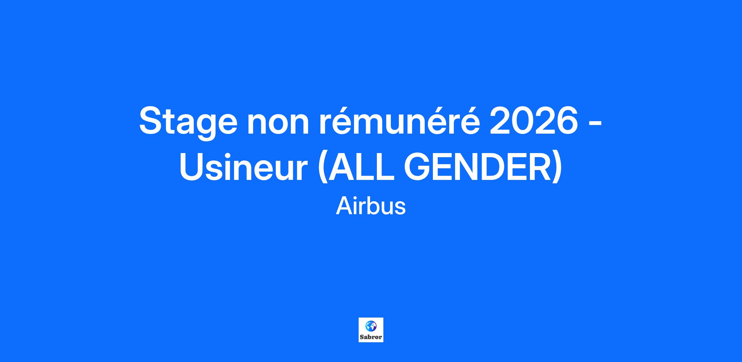 Job Description: En qu ête d’une première expérience qui fait la différence ? Ce stage chez Airbus Atlantic pourrait bien être le début d’un grand voyage. Nous sommes un leader mondial sur le marché des aérostructures, des sièges pilotes et des fauteuils passagers premium. Dans le cadre de votre formation initiale, vous recherchez un stage obligatoire non gratifié d’une durée de 4 à 8 semaines maximum, vous permettant de valider votre année. Une offre de stage intitulée « Stage non rémunéré 2026 - Usineur (ALL GENDER) » vient de s'ouvrir au sein d’Airbus Atlantic sur le site St Nazaire. Retrouvez Airbus Atlantic en vidéo Présentation Airbus Atlantic Présentation du site de Saint-Nazaire Afin de postuler à cette offre de stage, merci de joindre à votre candidature votre CV, votre lettre de motivation ainsi que vos trois derniers bulletins scolaires. Tâches et responsabilités : Vous serez amené à aller dans nos 4 différents ateliers à coté de nos usineurs durant votre stage. Encadré par votre tuteur, vous développerez vos compétences en travaillant sur les activités suivantes : Comprendre le comportement de la matière Apprendre les diverses méthodes d’usinage Utiliser les outils et machines propres à l’usinage du métal Utiliser des outils informatiques et logiciel de gestion Parlons de VOUS ! Vous préparez actuellement un diplôme de niveau Baccalauréat Professionnel (ou équivalent) dans le domaine de l'usinage ou une discipline apparentée. Vous avez les connaissances et compétences suivantes : Rigueur et motivation Un intérêt pour le travail du métal , et connaissance des métaux d’usage Capacité d'intégration dans une équipe et souplesse d'adaptation Curiosité, Esprit d'équipe, Bonne communication, Capacité d'adaptation, Anglais : intermédiaire Français : courant Parlons de NOUS ! Rejoindre Airbus Atlantic en tant que stagiaire, c'est : Participer à des projets ambitieux, à la pointe de la technologie, visant à construire l’avion de demain tout en répondant aux défis environnementaux, Acquérir des compétences dans un environnement dynamique qui encourage la créativité et l'initiative, avec une approche entrepreneurial, Évoluer au sein d'une organisation solidaire, qui valorise la proximité et l'humain. This job requires an awareness of any potential compliance risks and a commitment to act with integrity, as the foundation for the Company’s success, reputation and sustainable growth. Company: Airbus Atlantic Contract Type: Internship ----- Experience Level: Student Job Family: Support to Management By submitting your CV or application you are consenting to Airbus using and storing information about you for monitoring purposes relating to your application or future employment. This information will only be used by Airbus. Airbus is committed to achieving workforce diversity and creating an inclusive working environment. We welcome all applications irrespective of social and cultural background, age, gender, disability, sexual orientation or religious belief. Airbus is, and always has been, committed to equal opportunities for all. As such, we will never ask for any type of monetary exchange in the frame of a recruitment process. Any impersonation of Airbus to do so should be reported to emsom@airbus.com. At Airbus, we support you to work, connect and collaborate more easily and flexibly. Wherever possible, we foster flexible working arrangements to stimulate innovative thinking. Airbus pioneers sustainable aerospace for a safe and united world. The Company constantly innovates to provide efficient and technologically-advanced solutions in aerospace, defence, and connected services. In commercial aircraft, Airbus offers modern and fuel-efficient airliners and associated services. Airbus is also a European leader in defence and security and one of the world's leading space businesses. In helicopters, Airbus provides the most efficient civil and military rotorcraft solutions and services worldwide. From sending your resume to participating in successful interviews, here you can access all important pieces of information to guide you in your candidate journey. 👉 Learn more