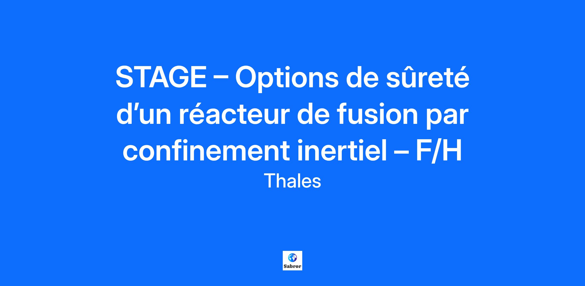 Lieu : Palaiseau, France Construisons ensemble un avenir de confiance Thales est un leader mondial des hautes technologies spécialisé dans trois secteurs d’activité : Défense & Sécurité, Aéronautique & Spatial, et Cyber & Digital. Il développe des produits et solutions qui contribuent à un monde plus sûr, plus respectueux de l’environnement et plus inclusif. Le Groupe investit près de 4 milliards d’euros par an en Recherche & Développement, notamment dans des domaines clés de l’innovation tels que l’IA, la cybersécurité, le quantique, les technologies du cloud et la 6G. Thales compte près de 81 000 collaborateurs dans 68 pays. Nos engagements, vos avantages Notre savoir-faire technologique Notre attention portée à l’équilibre des collaborateurs Un environnement inclusif et bienveillant Un engagement sociétal et environnemental reconnu (Thales Solidarity, indice CAC 40 ESG…) Votre quotidien Thales Research&Technology, notre centre de recherche dans les domaines matériels, et CortAIx Labs, notre centre de recherche en IA et digital ont pour mission de proposer des innovations de ruptures, de maintenir et d’accroitre l’avance technologique et d’en assurer la compétitivité pour le groupe. GenF est une startup créée par Thales en 2024 pour porter le projet de développement d’une solution de génération d‘énergie décarbonée basée sur la fusion nucléaire par confinement inertiel (« FCI ») initiée par laser de très haute puissance. En nous rejoignant, vous vous verrez confier les missions suivantes : - Vous vous appropriez les exigences réglementaires applicables à un réacteur de fusion en France. -Vous menez des analyses de risques et participez à la définition des scénarios d’accidents de référence. -Vous identifiez les principales fonctions de sûreté et les barrières physiques de confinement. -Vous initiez la définition des options de sûreté et contribuez à la rédaction d’une première version de Dossier d’Options de Sûreté (DOS). -Vous mettez à profit vos connaissances techniques pour soutenir la modélisation des phénomènes physiques critiques (thermo-hydraulique, radioprotection, etc.). -Vous collaborez étroitement avec les équipes GenF en charge de l’architecture et de conception du réacteur (matériaux, neutronique, thermo-hydraulique, procédés) pour alimenter vos analyses de sûreté expliciter les exigences de sûreté à intégrer à la conception. Vous pourrez être amené à solliciter des experts en sûreté nucléaire (chez nos partenaires académiques et industriels) pour guider et faire valider vos travaux. Votre profil Vous suivez un cursus niveau BAC+5 en spécialisation nucléaire et vous recherchez un stage pour une durée de 6 mois ? Vous avez idéalement une première expérience en sûreté nucléaire appliquée à des systèmes complexes, dans un environnement dynamique et innovant ? Vous faites preuve de créativité et de rigueur ? Vous appréciez travailler dans un cadre dynamique, tourné vers des technologies de pointe ? Tous nos stages sont conventionnés et soumis à une gratification dont le montant est déterminé selon votre niveau d’études. Thales, entreprise Handi-Engagée, reconnait tous les talents. La diversité est notre meilleur atout. Postulez et rejoignez nous ! Interested in finding out more about Thales and why you should join us? Say HI* to new career opportunities.