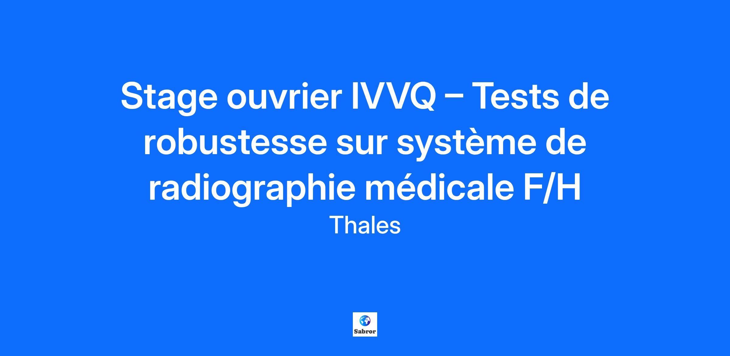 Lieu : Moirans, France Construisons ensemble un avenir de confiance Thales est un leader mondial des hautes technologies spécialisé dans trois secteurs d’activité : Défense & Sécurité, Aéronautique & Spatial, et Cyber & Digital. Il développe des produits et solutions qui contribuent à un monde plus sûr, plus respectueux de l’environnement et plus inclusif. Le Groupe investit près de 4 milliards d’euros par an en Recherche & Développement, notamment dans des domaines clés de l’innovation tels que l’IA, la cybersécurité, le quantique, les technologies du cloud et la 6G. Thales compte près de 81 000 collaborateurs dans 68 pays. Nos engagements, vos avantages Notre savoir-faire technologique Notre attention portée à l’équilibre des collaborateurs Un environnement inclusif et bienveillant Un engagement sociétal et environnemental reconnu (Thales Solidarity, indice CAC 40 ESG…) Votre quotidien Venez découvrir le site de Moirans, Un site à taille humaine avec un très bel environnement. Venir travailler à Moirans c'est : une ambiance conviviale et chaleureuse, des projets intéressants en ingénierie, les montagnes à proximité. Au sein de l’équipe IVVQ (Intégration, Validation, Vérification, Qualification) de Thales, vous participerez aux tests de robustesse d’un système de radiologie portatif. L’objectif de ce stage ouvrier est de contribuer à la fiabilisation du produit en réalisant des tests rigoureux de résistance, afin d’assurer sa durabilité et sa sécurité avant sa mise sur le marché. Vous participerez ainsi concrètement à la sécurisation d’une solution de radiologie portable destinée au secteur médical. Dans le cadre de ce stage, vous serez amené(e) à : Mettre à l’épreuve le système par des manipulations répétées (montage, démontage, déplacement, prise de radiographie, etc.) afin de simuler son usage sur le long terme. Répéter plusieurs fois par jour les opérations que le produit subira chez les clients. Rédiger avec rigueur et clarté les rapports de tests réalisés et signaler tout dysfonctionnement ou bug détecté. Participer activement à la vie de l’équipe IVVQ et découvrir le fonctionnement d’une équipe dédiée aux tests système. Mon profil Vous préparez un diplôme de niveau Bac+2 ou Bac+3 (IUT, BTS, Licence, etc.) et recherchez un stage ouvrier de 5 semaines. Vous faites preuve de rigueur et de sérieux dans votre travail. Vous êtes curieux(se) et aimez travailler en équipe. Vous êtes motivé(e) et prêt(e) à relever un challenge industriel concret. Le mot de l’équipe Profitez de ce stage ouvrier pour découvrir le cœur des activités de test système chez Thales sur un produit médical innovant. Rejoignez une équipe passionnée qui vous guidera dans l’appropriation des processus de validation et vous offrira une expérience riche et formatrice. Tous nos stages sont conventionnés et soumis à une gratification dont le montant est déterminé selon votre niveau d’études. Thales, entreprise Handi-Engagée, reconnait tous les talents. La diversité est notre meilleur atout. Postulez et rejoignez nous ! Interested in a CAREER IN THE RAIL transportation sector? To see our jobs in the railway market, please visit our dedicated site here