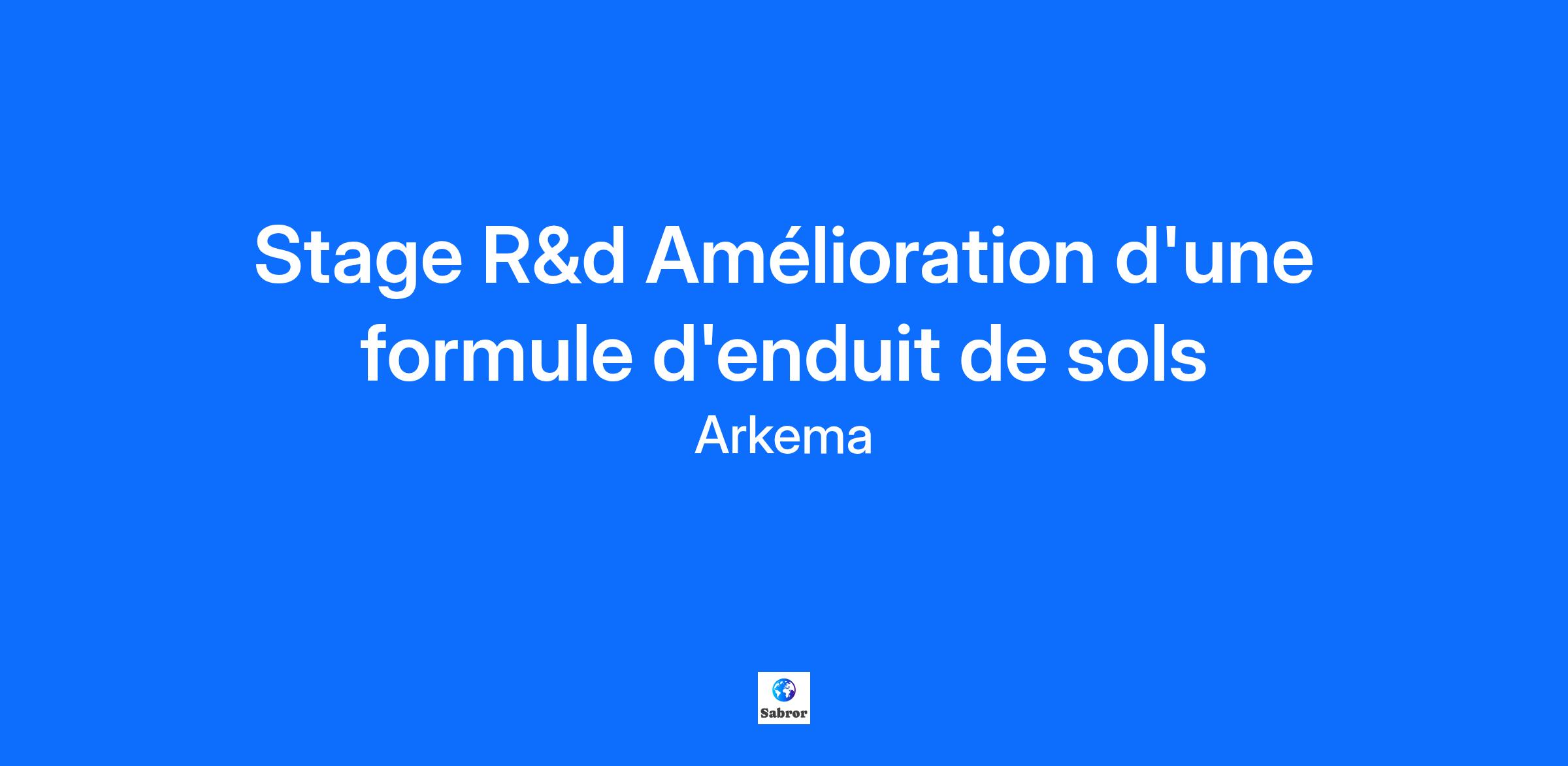 Détails de la Mission Contexte & environnement : Au sein de la Business Unit « Consumer and Constructions », dans le département de Recherche et Développement « Polymer Modified Binder », vous travaillerez pour le marché de la préparation des sols, plus particulièrement pour le domaine des enduits de sols.Stage de 6 mois Face aux enjeux majeurs en matière environnementale pour ce marché en forte croissance, vous contribuerez au développement de la gamme en participant à la formulation et à la caractérisation de ces produits. Missions principales : Réaliser les formulations au laboratoire et les essais au laboratoire Mettre en forme, analyser et présenter les résultats expérimentaux Participer à la vie du laboratoireProfil Recherché Master 2 chimie des matériaux ou formulation, 3ème année de cycle ingénieur chimie Compétences techniques : Connaissance en formulation Connaissance chimie des matériaux et techniques de caractérisation Bonnes notions informatique (pack Office) Notions anglais (lu/écrit) Qualités personnelles : Vous avez un fort intérêt pour la formulation et la caractérisation des matériaux de la construction Vous démontrez une bonne capacité d’interprétation des résultats Vous êtes rigoureux et organisé Vous aimez le travail d’équipe tout en étant autonome Vous avez un niveau d’anglais vous permettant de lire des documents techniques.