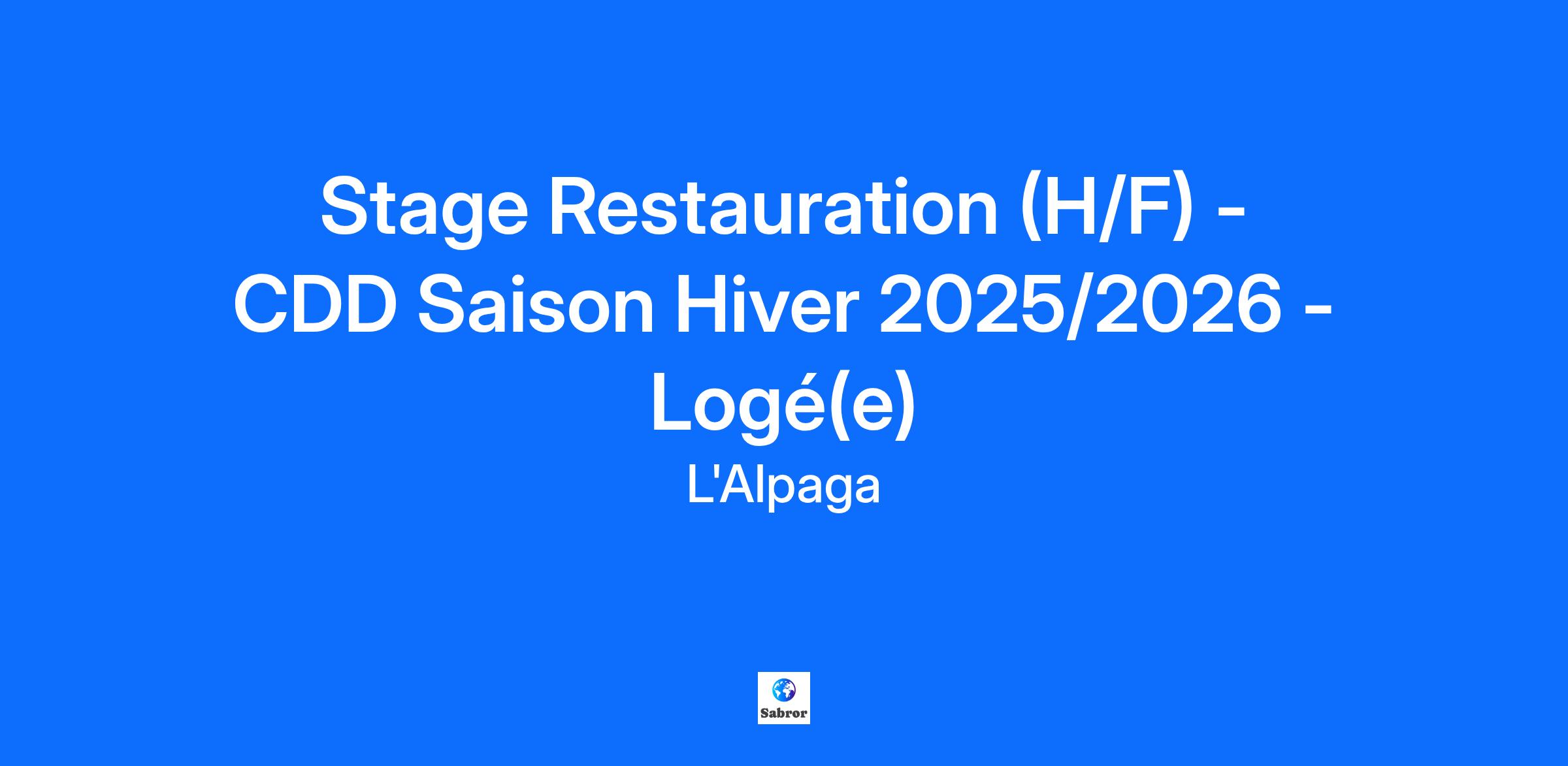 🕒 Contrat : CDD Saison logé