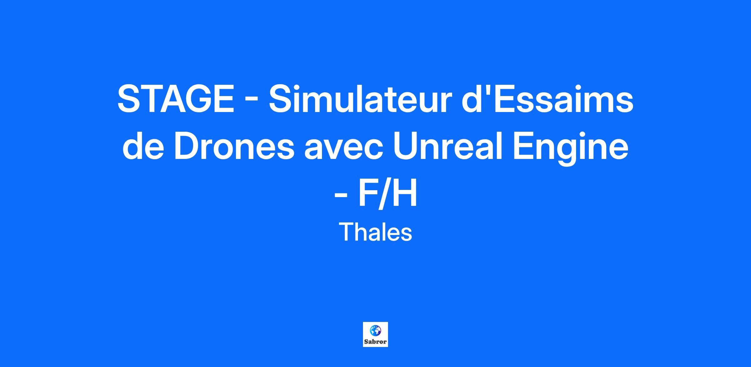 Lieu : Elancourt, France Construisons ensemble un avenir de confiance Thales est un leader mondial des hautes technologies spécialisé dans trois secteurs d’activité : Défense & Sécurité, Aéronautique & Spatial, et Cyber & Digital. Il développe des produits et solutions qui contribuent à un monde plus sûr, plus respectueux de l’environnement et plus inclusif. Le Groupe investit près de 4 milliards d’euros par an en Recherche & Développement, notamment dans des domaines clés de l’innovation tels que l’IA, la cybersécurité, le quantique, les technologies du cloud et la 6G. Thales compte près de 81 000 collaborateurs dans 68 pays. Nos engagements, vos avantages Notre savoir-faire technologique Notre attention portée à l’équilibre des collaborateurs Un environnement inclusif et bienveillant Un engagement sociétal et environnemental reconnu (Thales Solidarity, indice CAC 40 ESG…) Votre quotidien Au coeur de Saint Quentin en Yvelines, le site d'Elancourt est un des centres d’excellence technologique Thales les plus importants. La diversité et la technicité des systèmes et équipements mobilisent des savoir-faire dans plus de 80 métiers dans les solutions de défense, de sécurité de haute technologie et de services numériques. Au sein du Secteur Système de Drone de la Business Line Optronique et Electronique de Missile, vous intégrez le Département Ingénierie en tant que stagiaire dans l'équipe de développement logiciel. Le secteur conçoit des systèmes de drones de surveillance et d'attaque. Ce stage vise à développer et intégrer des objets scénarisés dans un simulateur d'essaims de drones utilisant le moteur 3D Unreal Engine. Les objets scénarisés peuvent inclure des obstacles, des cibles, ou d'autres éléments dynamiques qui influencent le comportement des drones. Le but est de créer un environnement de simulation réaliste pour tester et optimiser la navigation des essaims de drones : Analyser les différents scénarios d'interaction entre les drones et les objets scénarisés (obstacles, cibles, etc.) Intégrer les objets scénarisés dans le simulateur existant Tester le simulateur avec différents scénarios d'objets scénarisés Analyser les résultats des tests pour identifier les points d'amélioration Optimiser le simulateur pour améliorer la précision et la robustesse des interactions Proposer des solutions pour surmonter les défis spécifiques rencontrés (interférences, obstacles, conditions météorologiques) Votre profil Vous êtes en dernière année d'école d'ingénieurs en majeure développement logiciel ? Vous avez de solides connaissances en développement logiciel C++ et sur le moteur 3D Unreal engine ? Vous avez de bonnes capacités relationnelles et vous aimez le travail en équipe ? Vous souhaitez progresser et affiner votre expertise, avec des technologies innovantes dans un environnement industriel ? Alors ce stage est fait pour vous ! Tous nos stages sont conventionnés et soumis à une gratification dont le montant est déterminé selon votre niveau d’études. Thales, entreprise Handi-Engagée, reconnait tous les talents. La diversité est notre meilleur atout. Postulez et rejoignez nous ! Interested in a CAREER IN THE RAIL transportation sector? To see our jobs in the railway market, please visit our dedicated site here