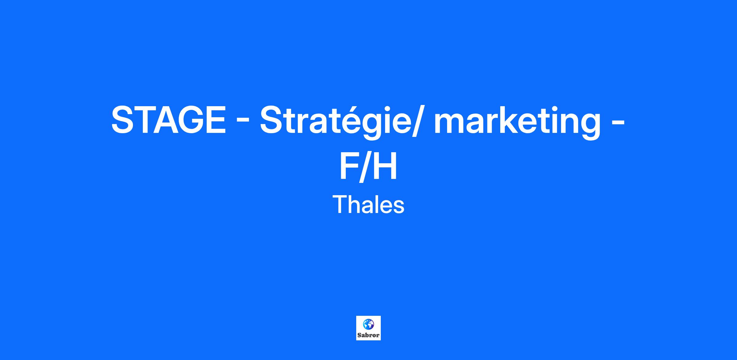 Lieu : Toulouse, France Construisons ensemble un avenir de confiance Thales est un leader mondial des hautes technologies spécialisé dans trois secteurs d’activité : Défense & Sécurité, Aéronautique & Spatial, et Cyber & Digital. Il développe des produits et solutions qui contribuent à un monde plus sûr, plus respectueux de l’environnement et plus inclusif. Le Groupe investit près de 4 milliards d’euros par an en Recherche & Développement, notamment dans des domaines clés de l’innovation tels que l’IA, la cybersécurité, le quantique, les technologies du cloud et la 6G. Thales compte près de 81 000 collaborateurs dans 68 pays. Nos engagements, vos avantages Notre savoir-faire technologique Notre attention portée à l’équilibre des collaborateurs Un environnement inclusif et bienveillant Un engagement sociétal et environnemental reconnu (Thales Solidarity, indice CAC 40 ESG…) Votre quotidien Votre destination pour une maîtrise totale du ciel ! De la conception à l'installation, nous créons des systèmes de contrôle aérien de pointe ! Nous rendons l'accès à l'espace aérien fluide, équitable et durable. La Business Line AGS (Aviation Global Services) assure le support et la maintenance des équipements Thales principalement dans le secteur de l’aéronautique civile, avec pour clients principaux les compagnies aériennes. Au sein de cette Business Line, la Direction de la Stratégie élabore un plan stratégique sur 5 à 10 ans. Vous apportez votre soutien au Directeur de la Stratégie pour contribuer à la construction de ce plan, en vous concentrant notamment sur le développement du Marketing Stratégique. Basé à Toulouse, vous travaillez en collaboration avec les équipes AGS des États-Unis, de Singapour, de Chine et de Dubaï. Vous participez à l’élaboration du plan stratégique de la Business Line. Vous prenez également en charge le développement du Marketing Stratégique. Vos missions principales sont : Affiner les besoins des différentes équipes Structurer, sourcer et collecter les informations Publier les résultats Votre profil Vous êtes en formation bac +4/5 en Stratégie, Marketing ou Veille économique et vous recherchez un stage d’une durée de 6 mois ? Vous avez de l'expérience dans: le domaine aéronautique les outils informatique Curiosité, capacité d'analyse et de synthèse, communication fluide sont des atouts que l'on vous reconnaît? Alors ce stage est fait pour vous ! Tous nos stages sont conventionnés et soumis à une gratification dont le montant est déterminé selon votre niveau d’études. Thales, entreprise Handi-Engagée, reconnait tous les talents. La diversité est notre meilleur atout. Postulez et rejoignez nous ! Interested in a CAREER IN THE RAIL transportation sector? To see our jobs in the railway market, please visit our dedicated site here