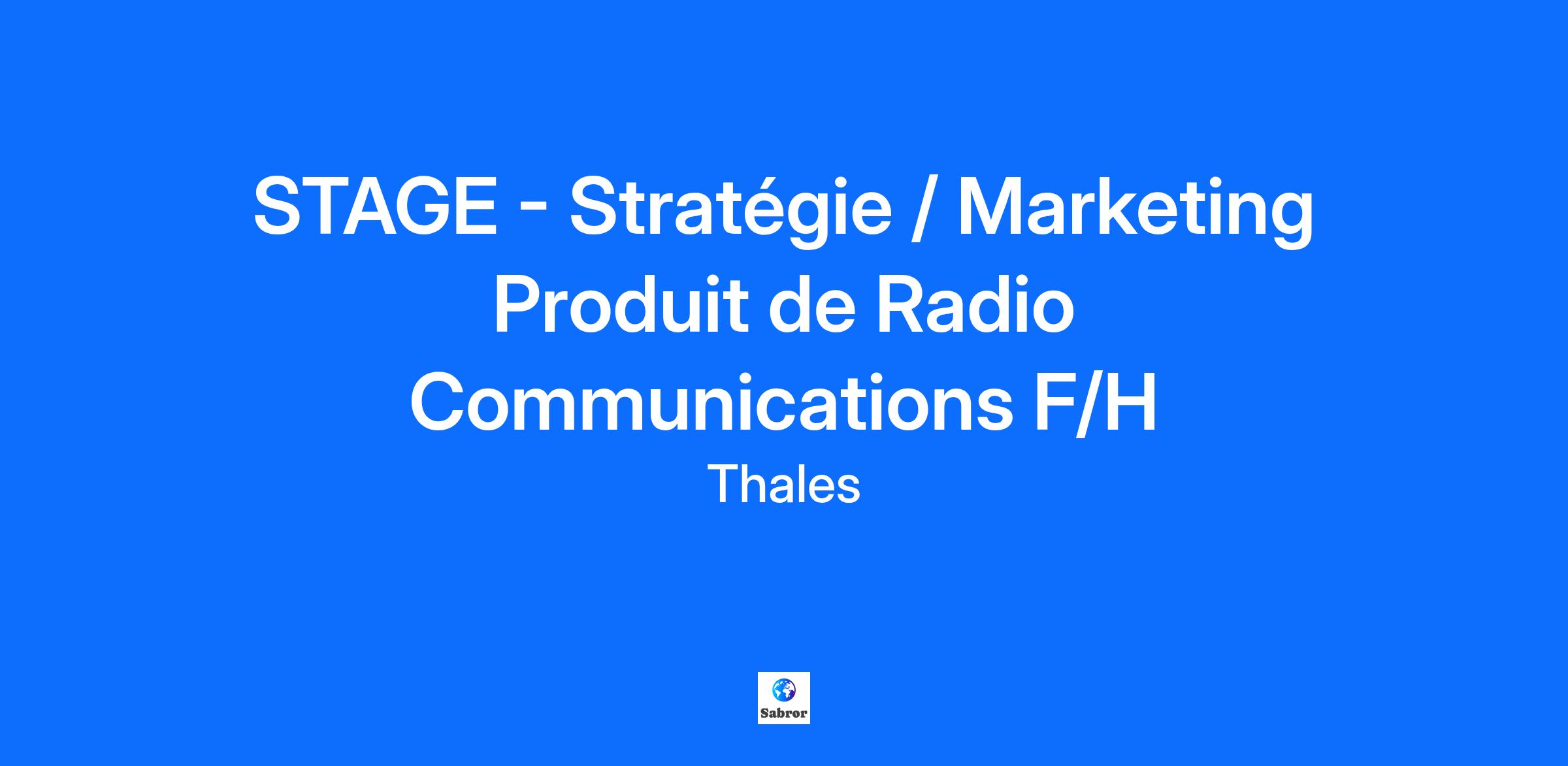 Lieu : Gennevilliers, France Construisons ensemble un avenir de confiance Thales est un leader mondial des hautes technologies spécialisé dans trois secteurs d’activité : Défense & Sécurité, Aéronautique & Spatial, et Cyber & Digital. Il développe des produits et solutions qui contribuent à un monde plus sûr, plus respectueux de l’environnement et plus inclusif. Le Groupe investit près de 4 milliards d’euros par an en Recherche & Développement, notamment dans des domaines clés de l’innovation tels que l’IA, la cybersécurité, le quantique, les technologies du cloud et la 6G. Thales compte près de 81 000 collaborateurs dans 68 pays. Nos engagements, vos avantages Notre savoir-faire technologique Notre attention portée à l’équilibre des collaborateurs Un environnement inclusif et bienveillant Un engagement sociétal et environnemental reconnu (Thales Solidarity, indice CAC 40 ESG…) Votre quotidien Le Campus de Gennevilliers est le cœur des activités de conception, de développement et de soutien des grands systèmes de défense : radiocommunications, réseaux et systèmes d’infrastructure résilients, communications par satellite, combat collaboratif et cybersécurité. Situé au nord de Paris, il est rapidement accessible en transports en commun. Au sein du service Stratégie et Marketing de l’entité Produit de Radio Communications, vous aurez pour mission principale d’accompagner la stratégie et le marketing pour les produits de radio communications sécurisés aéronautiques, navals, et satellite de THALES SIX GTS France. Dans ce cadre vous serez amené(e) à : Prendre connaissance et mettre à jour les bases des clients / produits / prospects. Etablir des supports (présentations, brochures, films, …) pour accompagner la promotion de nos produits. Contribuer au marketing plan et à la politique produit. Contribuer à la mise en œuvre de démonstrations clients. Recueillir le feedback des prospects. Durant votre stage chez nous, vos missions vous permettront de : Travailler dans un secteur à fort potentiel de développement (France, Export) sur des produits à la pointe de la technologie Contribuer à la stratégie pour la connectivité aero et navale Développer vos compétences en stratégie et marketing Découvrir le métier marketing en lien avec les équipes offre, commerciales, finance et techniques Votre profil Vous êtes issu.e d’une formation scientifique (école d’ingénieur ou master en sciences) et souhaitez orienter votre dernière année vers une spécialisation en marketing stratégique ? Vous souhaitez développer vos compétences en marketing stratégiques : analyse de marché, segmentation, 4P, pricing, business case, etc. Vous avez un anglais courant, à l’aise à l’écrit comme à l’oral, y compris en réunion. Vous faites preuve d’autonomie, de rigueur et d’une solide capacité d’analyse. Votre aisance relationnelle vous permet de collaborer efficacement avec des équipes variées. Une connaissance du secteur de la défense, de l’aéronautique ou du naval serait un atout. Le mot de l'équipe Vous souhaitez mettre votre profil scientifique au service de la stratégie et découvrir comment se construisent les offres à fort enjeu technologique ? Au sein de l’équipe Marketing Stratégique de Thales, vous contribuerez à analyser les marchés, définir les besoins clients et soutenir les décisions clés pour les solutions du futur. Tous nos stages sont conventionnés et soumis à une gratification dont le montant est déterminé selon votre niveau d’études. Thales, entreprise Handi-Engagée, reconnait tous les talents. La diversité est notre meilleur atout. Postulez et rejoignez nous ! Interested in a CAREER IN THE RAIL transportation sector? To see our jobs in the railway market, please visit our dedicated site here