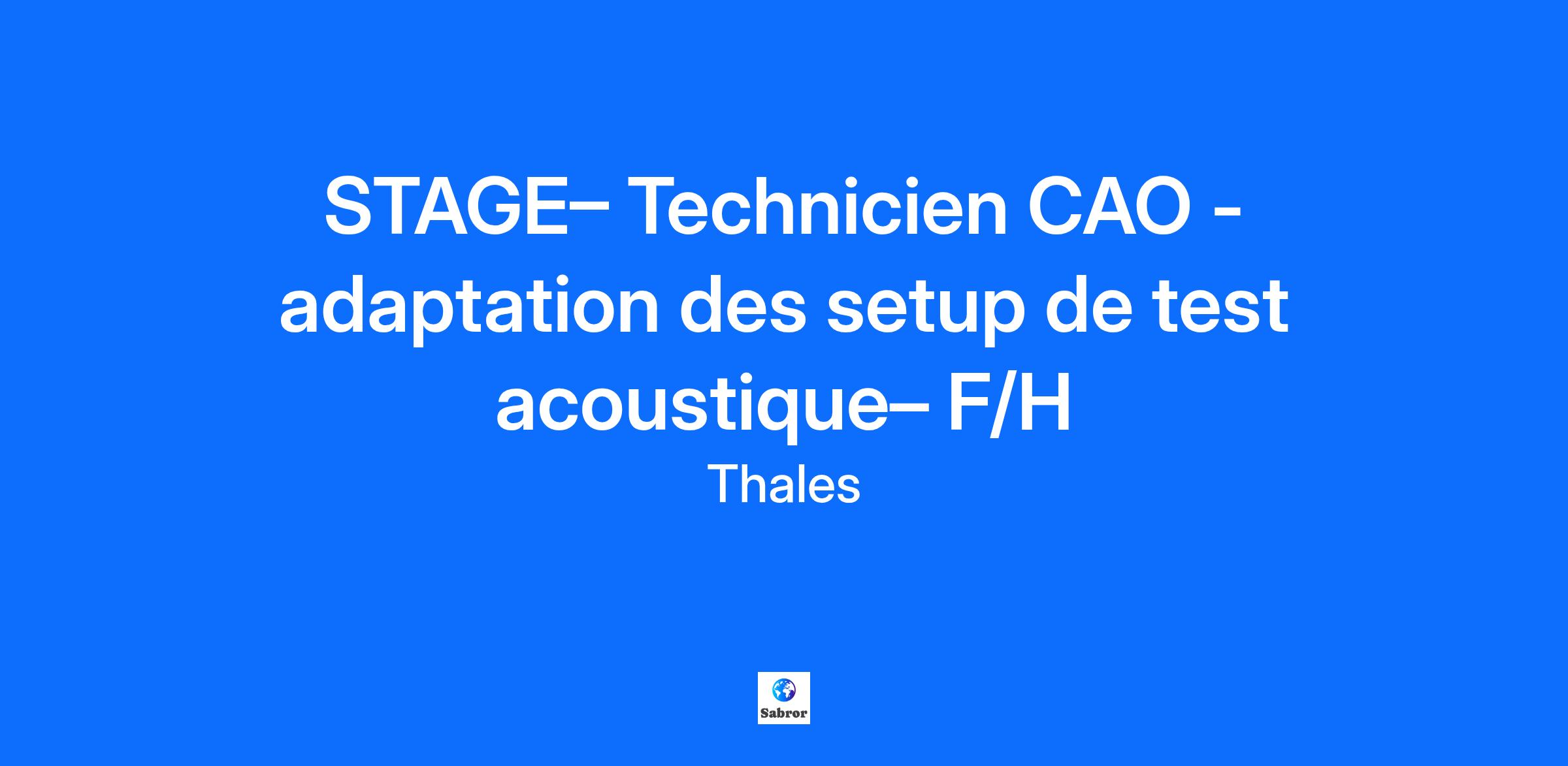 Lieu : Toulouse, France Construisons ensemble un avenir de confiance Thales est un leader mondial des hautes technologies spécialisé dans trois secteurs d’activité : Défense & Sécurité, Aéronautique & Spatial, et Cyber & Digital. Il développe des produits et solutions qui contribuent à un monde plus sûr, plus respectueux de l’environnement et plus inclusif. Le Groupe investit près de 4 milliards d’euros par an en Recherche & Développement, notamment dans des domaines clés de l’innovation tels que l’IA, la cybersécurité, le quantique, les technologies du cloud et la 6G. Thales compte près de 81 000 collaborateurs dans 68 pays. Nos engagements, vos avantages Notre savoir-faire technologique Notre attention portée à l’équilibre des collaborateurs Un environnement inclusif et bienveillant Un engagement sociétal et environnemental reconnu (Thales Solidarity, indice CAC 40 ESG…) Votre quotidien Le site de Toulouse est en charge de l’ingénierie de systèmes satellites, de la conception et réalisation de charges utiles ainsi que du développement et la qualification de segments sol, il intègre un centre de recherche et un accélérateur industriel de start-up et ventures. Thales Alenia Space s’appuie sur des expertises variées, de la conception à la fabrication et aux opérations des satellites et équipements associés. Vous intégrez le service Essais d’Environnement, composé d’une vingtaine de techniciens qui préparent et réalisent des essais thermiques, mécaniques et électromagnétiques sur équipements électroniques, antennes et satellites, au sein de trois laboratoires spécialisés. Pour qualifier les équipements face aux ondes de choc causées par le lanceur, vous étudiez les réglages d’une machine à choc pendulaire métal/métal afin de fiabiliser les résultats. Vos missions sont : Réaliser une étude en CAO pour améliorer nos configurations de test en électroacoustique : Créer les maquettes numériques, Proposer des améliorations des configurations de test Rédiger les cahier des charges d’approvisionnement des matériels Mettre à jour nos procédures internes avec ces améliorations Votre profil Vous êtes en dernière année de BUT à dominante mécanique et vous recherchez un stage de 4 mois ? Vous avez des connaissances en : CAO sous CATIA Conception outillages Rigueur, analyse et relationnel sont des atouts que l'on vous reconnaît ? Alors ce poste est fait pour vous ! Tous nos stages sont conventionnés et soumis à une gratification dont le montant est déterminé selon votre niveau d’études. Thales, entreprise Handi-Engagée, reconnait tous les talents. La diversité est notre meilleur atout. Postulez et rejoignez nous !