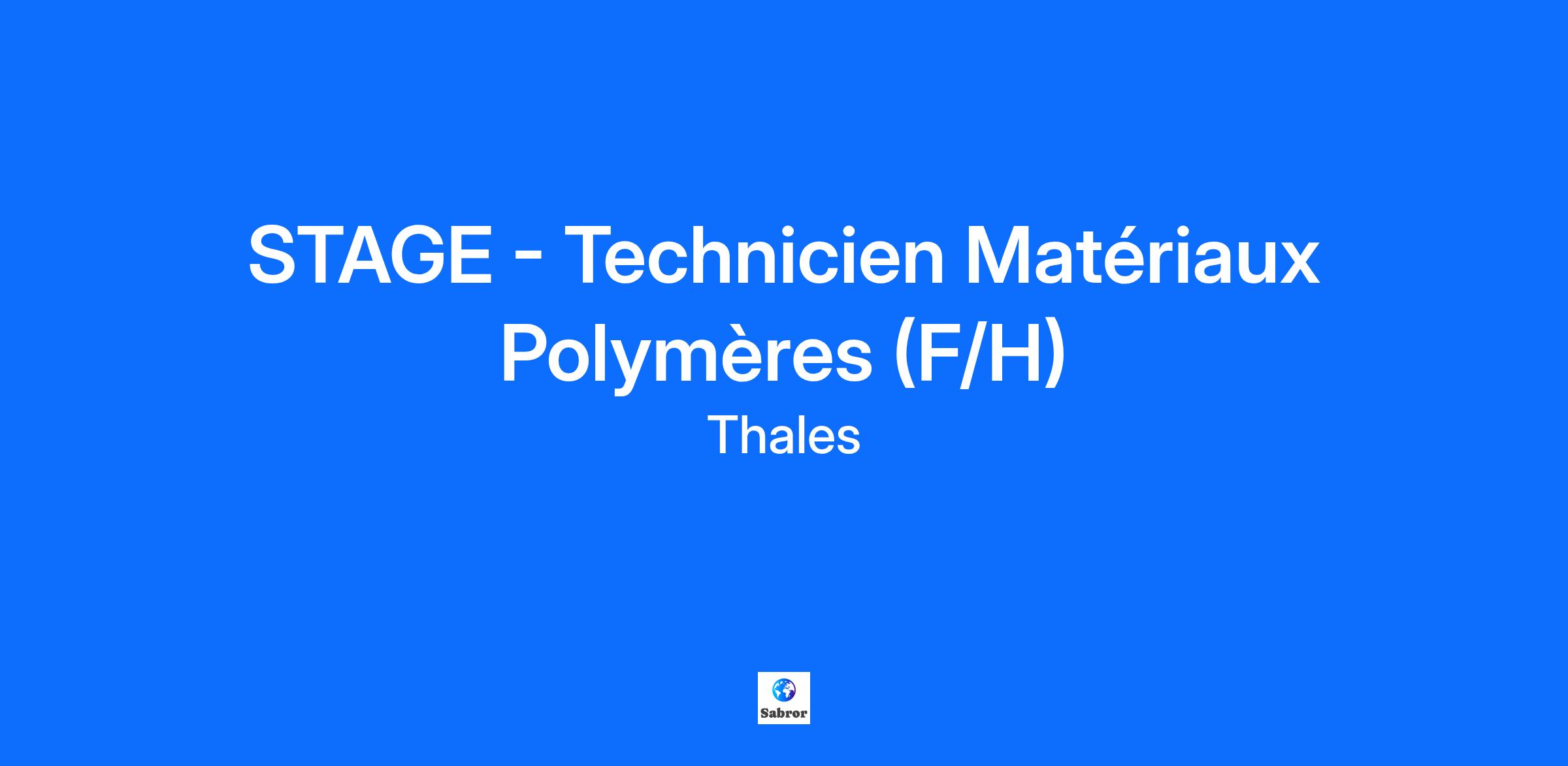 Lieu : Bordeaux, France Construisons ensemble un avenir de confiance Thales est un leader mondial des hautes technologies spécialisé dans trois secteurs d’activité : Défense & Sécurité, Aéronautique & Spatial, et Cyber & Digital. Il développe des produits et solutions qui contribuent à un monde plus sûr, plus respectueux de l’environnement et plus inclusif. Le Groupe investit près de 4 milliards d’euros par an en Recherche & Développement, notamment dans des domaines clés de l’innovation tels que l’IA, la cybersécurité, le quantique, les technologies du cloud et la 6G. Thales compte près de 81 000 collaborateurs dans 68 pays. Nos engagements, vos avantages Notre savoir-faire technologique Notre attention portée à l’équilibre des collaborateurs Un environnement inclusif et bienveillant Un engagement sociétal et environnemental reconnu (Thales Solidarity, indice CAC 40 ESG…) Votre quotidien Sur un Campus Bordelais à la pointe de la technologie, entre océan et vignes, nous concevons et développons des systèmes, des équipements et services pour garantir le succès des missions aéroportées de nos clients. Au sein du service Matériaux et Procédés, vous intégrerez une équipe d'une dizaine d'ingénieurs pluridisciplinaires engagés dans le développement et l'optimisation de matériaux innovants pour des applications industrielles de pointe. L’équipe couvre un large champ d’expertises liées aux matériaux de la R&T jusqu'à l'obsolescence. Ce stage s’inscrit dans la continuité des travaux réalisés sur la mise en œuvre et la qualification des matériaux polymères. Il offre une immersion complète dans les problématiques de choix matière, choix des procédés et performances fonctionnelles des matériaux. Vos missions : • Construire et documenter une bibliothèque des polymères préférentiels et de leurs finitions associées, intégrant les critères techniques et économiques • Réaliser des essais de caractérisation de polymères et de peintures appliquées sur polymères, en collaboration avec les experts matériaux du laboratoire. • Participer à l’analyse des résultats et formuler des recommandations en lien avec les équipes R&D et industrialisation • Évaluer l'impact coût de plusieurs procédés de mise en œuvre des matériaux polymères (RC/NRC) Votre profil : Vous préparez une formation de niveau BAC+3 du type BUT SGM ou licence pro Chimie Physique ? Vous recherchez un stage de 2-3 mois ? Vous avez des compétences en : Physico-chimie des polymères et procédés de mise en œuvre Analyse des données expérimentales et rédaction des rapports techniques Outils numériques de traitement et présentation de données (Microsoft Excel ou équivalent) Anglais B1 Votre autonomie, votre dynamisme, votre curiosité, votre esprit d’analyse et votre esprit d’équipe sont des qualités qui vous caractérisent ? Mot de l’équipe : Notre équipe réunit des spécialistes passionnés par le développement de matériaux et procédés innovants pour l’aéronautique, alliant performance technique et responsabilité environnementale. Tous nos stages sont conventionnés et soumis à une gratification dont le montant est déterminé selon votre niveau d’études. Thales, entreprise Handi-Engagée, reconnait tous les talents. La diversité est notre meilleur atout. Postulez et rejoignez nous !