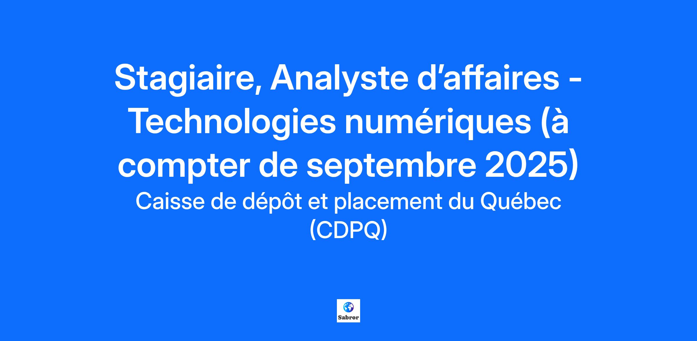 Become invested in the community! Join the CDPQ team and take pride in contributing to the financial future of millions of Quebecers by creating a more sustainable world. At CDPQ: We value your unique contribution to a world-class team. We give you work that allows you to flourish and excel. We offer opportunities to learn from experts who generously share their knowledge. We are fully invested so that you can fulfil our mission every day. Job Description Stage d’une durée de quatre (4) mois - septembre à décembre 2025 Notre équipe des solutions numériques assure l’alignement des solutions d’affaires aux modèles d’affaires novateurs de nos Filiales Espace CDPQ (la plus importante communauté dédiée au capital de risque au Canada) et CDPQ Infra (maître d’œuvre de grands projets d’infrastructures publiques). Elle appuie également la présence et la croissance de la CDPQ à l’international. Ce que vous ferez Notre équipe est actuellement à la recherche d’un.e stagiaire en analyste d’affaires. L’analyste d’affaires identifie, définit, analyse et documente les besoins et les opportunités des filiales. Vous traduirez les exigences d’affaires en objectifs et en spécifications fonctionnelles pour les initiatives et les évolutions. Vous serez également responsable de tester les solutions et accompagner les clients dans la gestion des changements induits par les livraisons. Finalement, vous coordonnerez des activités de mise en place technologique. Accompagner les filiales dans l’identification, la définition et l’analyse de ses besoins d’affaires et proposer des solutions ; Analyser les demandes de changement, évaluer l’impact sur les applications existantes et réaliser les modifications appropriées ; Réaliser l’analyse fonctionnelle, les stratégies et les cas de test ; Assurer la qualité de la solution de concert avec les concepteurs, les architectes et les développeurs ; Coordonner un ensemble d’activités opérationnelles avec des équipes multidisciplinaires ; Promouvoir le respect des normes et standards établis par l’organisation ; Accompagner les utilisateurs lors des changements. Ce que vous êtes Vous vous distinguez par votre : Ambition ; Imputabilité ; Ouverture ; Collaboration ; Esprit entrepreneurial qui focalise sur la recherche de solutions pour ses collaborateurs d’affaires ; Écoute active et curiosité intellectuelle ; Grande capacité d’analyse et d’esprit de synthèse ; Excellentes aptitudes pour les relations interpersonnelles ; Sens de l’écoute et travail d’équipe ; Habiletés de communication verbale et écrit ; Capacité à établir les priorités et à accomplir des tâches dans un environnement changeant et rapide. Ce que vous apportez Études universitaires de premier cycle (2e année ou plus) ou deuxième cycle en technologies de l’information ; Expérience en technologies de l’information, un atout ; Connaissance de la suite Office ; Expérience dans un environnement Agile (Scrum), un atout ; Excellente connaissance du français et de l’anglais*, tant à l’oral qu’à l’écrit. * Interactions fréquentes en anglais à l’oral et à l’écrit avec des partenaires externes basés à l’extérieur du Québec tels que des fournisseurs de services, des cabinets avocats, des pairs, des banquiers, firmes de courtage, firmes d’analyse de crédit et agences de crédit, etc. #LI-DNI Feeling that my role is important. Having fun every day. Growing in step with my ambitions. Earning compensation that reflects my contribution. That’s the professional experience CDPQ offers! We carefully review each application and directly contact those selected for an interview. CDPQ offers equal employment opportunities to everyone. Women, visible/ethnic minorities, Indigenous people and individuals with disabilities are all encouraged to apply. If you’re interested in this job and even if your application does not meet all the criteria, do not hesitate to apply or contact us! CDPQ is also committed to promoting equity, diversity and inclusion as key values and sees them as a source of enrichment and pride for all its employees. Please let us know if you require adopted measures for the recruiting process. CDPQ represents la Caisse de dépôt et placement du Québec and its subsidiaries. We are a leading global institutional asset manager. We invest in major financial markets and the principal asset classes. To carry out our mission, we have teams of experts recruited from among the best in Quebec and around the world.