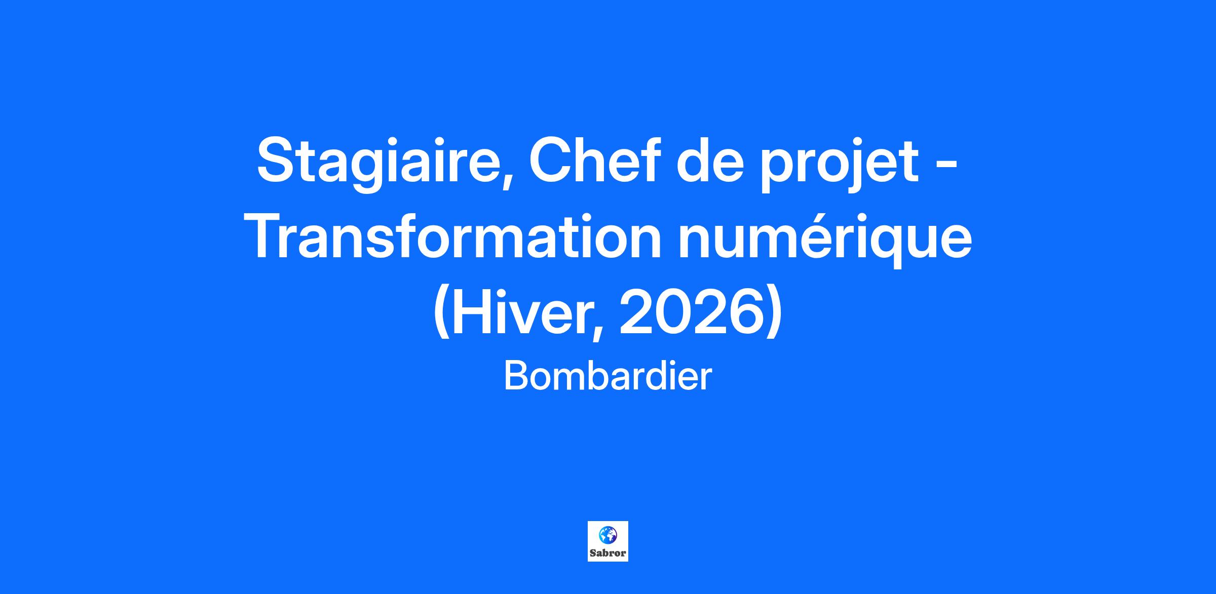 L’innovation est dans notre ADN… est-elle dans le vôtre?Bombardier est un leader mondial de l’industrie de l’aviation en créant des avions novateurs qui changent la donne sur leur marché. Ses produits et services fournissent des expériences de calibre international établissant de nouvelles normes en matière de confort-passager, d’efficacité écoénergétique, de fiabilité et de sécurité. Nous sommes une organisation mondiale axée sur la collaboration et l'esprit d'équipe. Votre billet d’embarquement comprendra… Plusieurs conférences : Rencontrez un.e exécutif.ve Envolée au féminin Apprendre davantage sur Bombardier : Conférence sur Les produits Bombardier Visites des sites Bombardier L’Académie d'apprentissage Bombardier De nombreuses opportunités de réseautage et d'échanges sociaux : Du bénévolat Réseauter pour réussir 5 à 7, repas entre stagiaires, et bien plus encore! Vos contributions à l'équipe Aider les chefs de projet à coordonner les initiatives de transformation numérique dans les opérations. Soutenir la planification de projet : planification, suivi des tâches, allocation des ressources et rapports. Suivre l’avancement des projets et mettre à jour les tableaux de bord, les indicateurs clés de performance (ICP) et la documentation de gouvernance. Participer à des ateliers, des séances de collecte des besoins et des réunions avec les parties prenantes. Préparer des communications, des présentations et des rapports d’état pour la direction. Contribuer à l’identification des risques, au suivi des problèmes et à la planification des mesures d’atténuation. Faire des recherches sur les meilleures pratiques et les technologies émergentes dans la numérisation de l’aérospatiale. Comment vous épanouir dans ce rôle Inscrit(e) actuellement à un programme de baccalauréat ou de maîtrise en ingénierie, administration des affaires, systèmes d’information ou domaine connexe.Fort intérêt pour la gestion de projet et la transformation numérique.Excellentes compétences organisationnelles et en résolution de problèmes.Excellente communication écrite et verbale (anglais et français).Maîtrise de la suite MS Office (Excel, PowerPoint, Project/Planner); la connaissance des outils de collaboration (Teams, Loop, etc.) est un atout.Capacité à travailler de manière autonome et en équipe dans un environnement dynamique et rapide. Information d’embarquement: Site: Centre de finition Durée: 8 mois Travail flexible-Hybride Il est important de noter que nos opportunités de stage sont ouvertes aux étudiants et non aux nouveaux gradués. Tous nos stagiaires peuvent être appelés à voyager occasionnellement à l'extérieur du Canada pour des raisons de formation ou de travail.