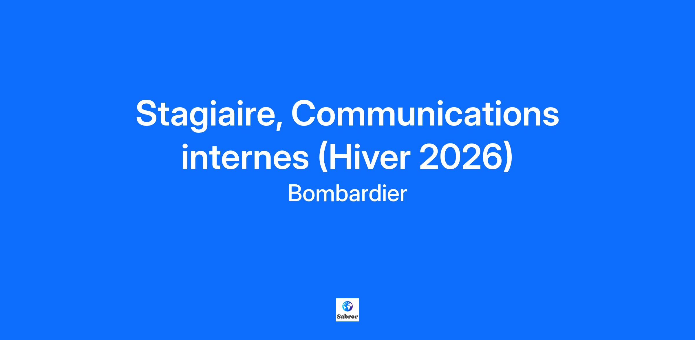 L’innovation est dans notre ADN… est-elle dans le vôtre?Bombardier est un leader mondial de l’industrie de l’aviation en créant des avions novateurs qui changent la donne sur leur marché. Ses produits et services fournissent des expériences de calibre international établissant de nouvelles normes en matière de confort-passager, d’efficacité écoénergétique, de fiabilité et de sécurité. Nous sommes une organisation mondiale axée sur la collaboration et l'esprit d'équipe. Votre billet d’embarquement comprendra… Plusieurs conférences : Rencontrez un.e exécutif.ve Envolée au féminin Apprendre davantage sur Bombardier : Conférence sur Les produits Bombardier Visites des sites Bombardier L’Académie d'apprentissage Bombardier De nombreuses opportunités de réseautage et d'échanges sociaux : Du bénévolat Réseauter pour réussir 5 à 7, repas entre stagiaires, et bien plus encore! Quelles sont vos contributions envers l’équipe? Travailler en étroite collaboration avec les équipes de communication pour définir et mettre en œuvre des plans et des stratégies de communication ; Réaliser des projets tels que le développement de l’intranet, la création de bulletins d’information, de contenu pour les téléviseurs sur site et la rédaction de courriels ; Produire des rapports d’analyse pour les courriels, les bulletins d’information et l’intranet ; Créer des courriels, des notes de discours, des questions-réponses, des pages intranet et des présentations pour atteindre et mobiliser nos parties prenantes ; Rédiger des histoires et des annonces captivantes, y compris des articles pour notre magazine interne ; Mener différents projets de recherche pour la direction et analyser les données ; Contribuer à la coordination et à la promotion des événements d’engagement des employés ; Réviser des textes, aider à des projets spéciaux et coordonner les traductions. Ce que nous recherchons: Vous êtes inscrit(e) à un programme de baccalauréat avec une spécialisation en communication, relations publiques, journalisme, science politique ou dans un domaine d’études équivalent ; Vous avez d’excellentes compétences en communication en français et en anglais, tant à l’oral qu’à l’écrit ; Vous avez une forte envie d’apprendre et une attitude positive ; Vous êtes très organisé(e), attentif(ve) aux détails et autonome ; Vous êtes capable de suivre des directives et d’assimiler rapidement de l’information ; Vous maîtrisez la suite Microsoft Office et la suite Adobe Creative. Des connaissances en HTML ou une expérience en conception web sont un atout. Information d’embarquement: Site: Centre Administratif (CA) Durée: 12 mois Travail flexible-Hybride Il est important de noter que nos opportunités de stage sont ouvertes aux étudiants et non aux nouveaux gradués. Tous nos stagiaires peuvent être appelés à voyager occasionnellement à l'extérieur du Canada pour des raisons de formation ou de travail.