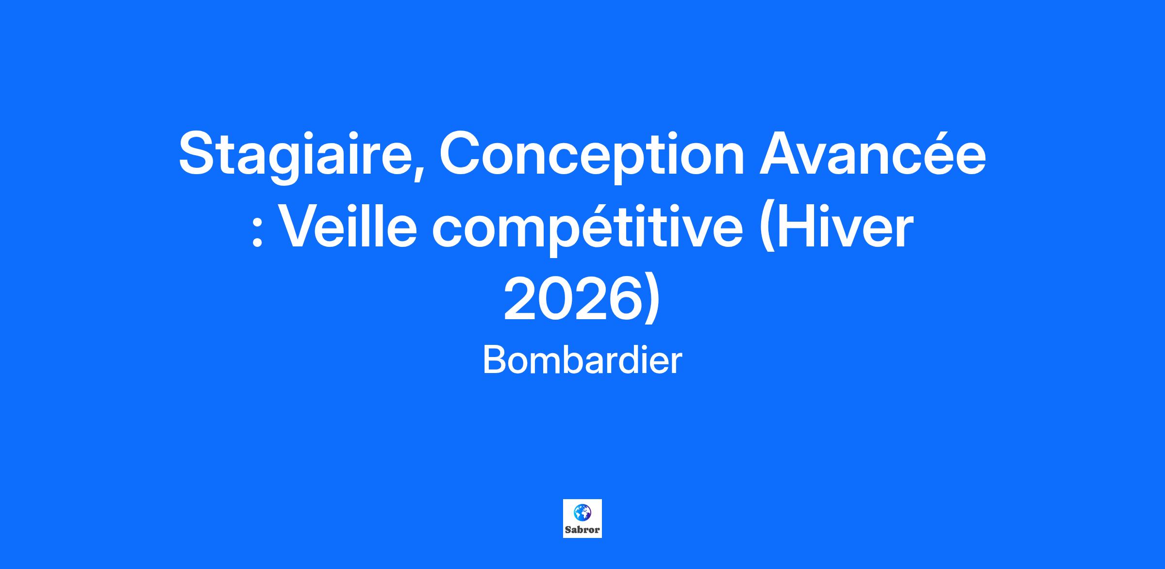 L’innovation est dans notre ADN… est-elle dans le vôtre?Bombardier est un leader mondial de l’industrie de l’aviation en créant des avions novateurs qui changent la donne sur leur marché. Ses produits et services fournissent des expériences de calibre international établissant de nouvelles normes en matière de confort-passager, d’efficacité écoénergétique, de fiabilité et de sécurité. Nous sommes une organisation mondiale axée sur la collaboration et l'esprit d'équipe. Votre billet d’embarquement comprendra… Plusieurs conférences : Rencontrez un.e exécutif.ve Envolée au féminin Apprendre davantage sur Bombardier : Conférence sur Les produits Bombardier Visites des sites Bombardier L’Académie d'apprentissage Bombardier De nombreuses opportunités de réseautage et d'échanges sociaux : Du bénévolat Réseauter pour réussir 5 à 7, repas entre stagiaires, et bien plus encore! Notre équipe… Le groupe de conception avancée est responsable des études conceptuelles et du design préliminaire de tous les futurs produits de Bombardier. L’équipe est aussi impliquée dans les activités de recherche couvrant plusieurs technologies qui seront au cœur de l’avenir de l’aéronautique. Dans le cadre de votre stage, vous contribuerez à:• Participer à la préparation d’études comparatives entre des produits Bombardier et leurs différents compétiteurs• Développer divers modèles (performances, géométrie, etc.) d’avions compétiteurs existants ou pressentis• Contribuer à des analyses techniques précises de produits Bombardier en comparaison avec divers compétiteurs• Développer des outils facilitant la modélisation d’avions compétiteurs ainsi que le design conceptuel de produits Bombardier Pendant votre stage, vous apprendrez :• À connaître en détails les produits Bombardier et comment ils se comparent à leurs compétiteurs• À connaître les caractéristiques clés des avions d’affaire et les dynamiques du marché de l’aviation d’affaire • À utiliser divers langages de programmation, outils de modélisation d’avions et d’environnements de développement• À participer dans des activités de veille compétitive et dans le processus de design conceptuel d’avions d’affaire• À travailler en équipe avec des experts techniques de diverses disciplines Ce que nous recherchons: • Vous démontrez un intérêt marqué pour l'aéronautique • Vous êtes présentement inscrit à un programme d'études universitaires en génie aéronautique• Vous avez complété au moins deux ans du programme• Vous avez suivi au moins un cours sur les performances ou la mécanique du vol• Vous êtes hautement motivé, curieux et indépendant• Vous êtes familier et confortable avec Microsoft Office• Vous êtes familier avec différents langages de programmation (préférence pour Python) Information d’embarquement: Site: Centre Administratif (CA) Durée: 8 mois Travail flexible-Hybride Il est important de noter que nos opportunités de stage sont ouvertes aux étudiants et non aux nouveaux gradués. Tous nos stagiaires peuvent être appelés à voyager occasionnellement à l'extérieur du Canada pour des raisons de formation ou de travail.
