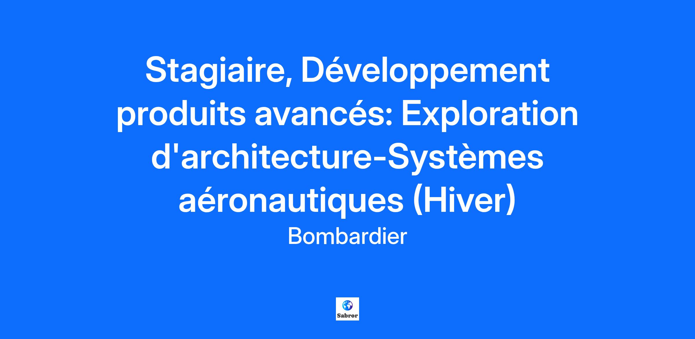 Stagiaire, Développement produits avancés: Exploration d'architecture-Systèmes aéronautiques (Hiver)