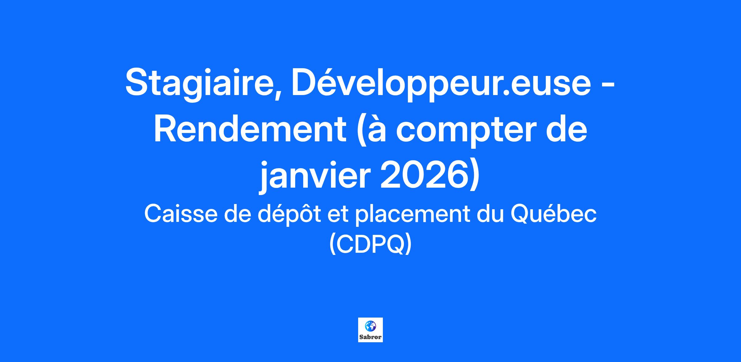 Become invested in the community! Join a global investment group and take pride in helping build a sustainable future. At La Caisse: We value your unique contribution to a world-class team. We give you work that allows you to flourish and excel. We offer opportunities to learn from experts who generously share their knowledge. We are fully invested so that you can fulfil our mission every day. Over the years, we have built a strong culture based on four pillars: ambition to push ourselves further, accountability to bring our convictions to life, openness to grow through creative ideas, and collaboration to drive us toward the best outcomes. Job Description Stage d’une durée de quatre (4) mois – Janvier à avril 2026 Vous joindrez l’équipe expérimentée et motivée des Solutions Numériques – Rendement, de La Caisse. Les applications de rendement sont des modèles qui servent d’inspiration à plusieurs autres équipes. Elles calculent diverses métriques de rendement et d’analyse servant à orienter les décisions des gestionnaires et à publier les rendements officiels de La Caisse. Ce que vous ferez Participer activement au cycle de développement complet de logiciels maison ; Développer et faire évoluer des fonctionnalités principalement back-end avec les plus récentes technologies ; Participer à l’ensemble des cérémonies Agile Scrum ; Assurer la performance optimale de logiciels qui effectuent un haut volume de calculs ; Bénéficier d’un lien direct avec nos clients afin de valider l’atteinte des objectifs des récits ; Travailler sur des tâches variées et d’une complexité croissante, au rythme de votre apprentissage. Ce qui vous distingue Rigueur; Sens de l’initiative; Curiosité naturelle. Ce que vous apportez Études universitaires de premier ou deuxième cycle en technologies de l’information ou tout autre domaine connexe ; Connaissances et intérêt pour le développement .NET (C#, Entity Framework), Web (Angular, TypeScript, Bootstrap) et/ou DevSecOps (SQL, AWS, Git, Azure DevOps) (un atout) ; Intérêt pour le domaine de la finance (un atout) ; Une bonne maîtrise du français oral et écrit. #LI-DNI Feeling that my role is important. Having fun every day. Growing in step with my ambitions. Earning compensation that reflects my contribution. That’s the professional experience La Caisse offers! We carefully review each application and directly contact those selected for an interview. La Caisse offers equal employment opportunities to everyone. Women, visible/ethnic minorities, Indigenous people and individuals with disabilities are all encouraged to apply. If you’re interested in this job but you don’t meet all the criteria, apply anyway! La Caisse is also committed to promoting equity, diversity and inclusion as key values and sees them as a source of enrichment and pride for all its employees. Please let us know if you require adopted measures for the recruiting process. La Caisse represents the Caisse de dépôt et placement du Québec and its subsidiaries. We are a leading global institutional asset manager. We invest in major financial markets and the principal asset classes. To carry out our mission, we have teams of experts recruited from among the best in Quebec and around the world.